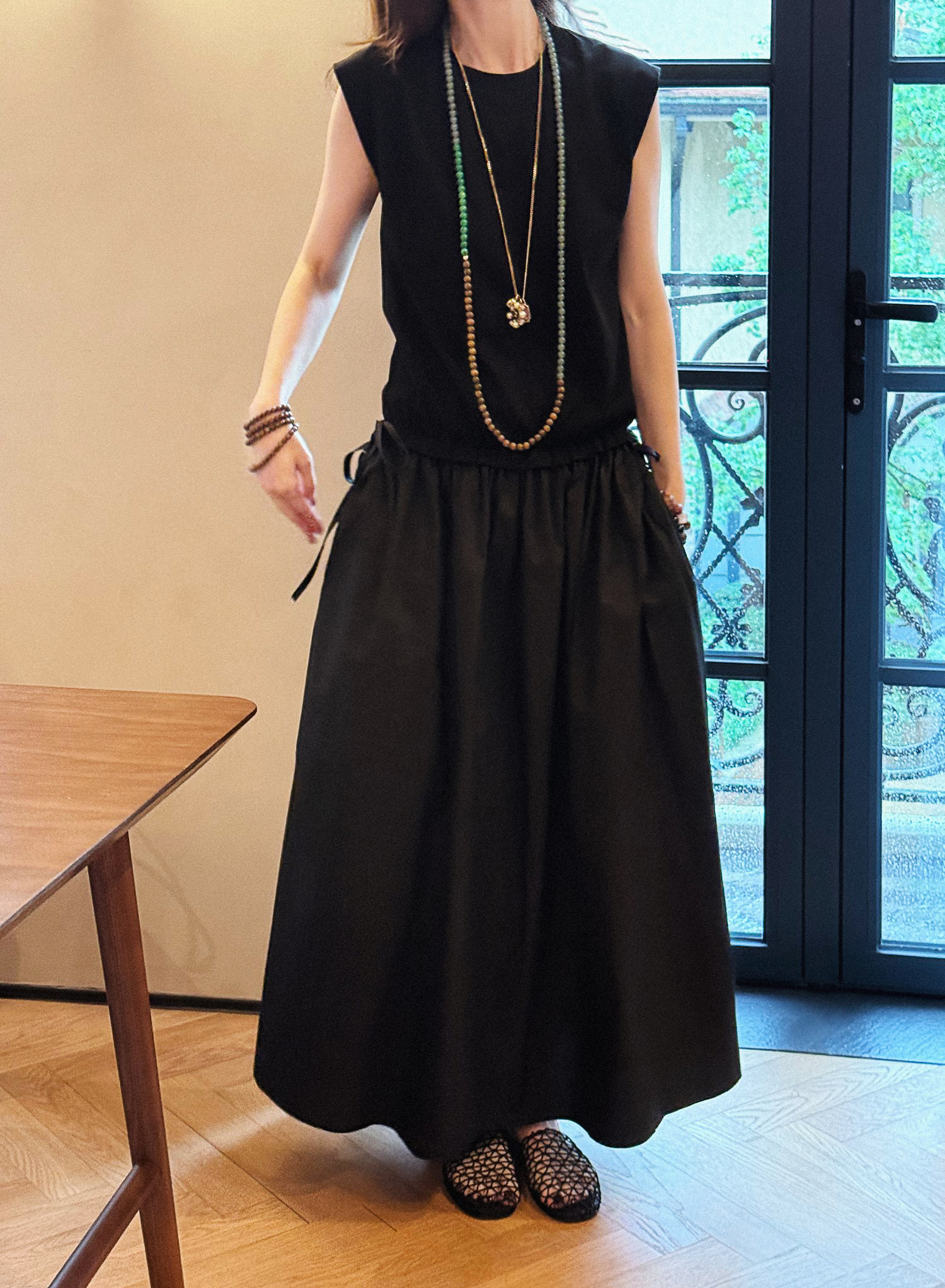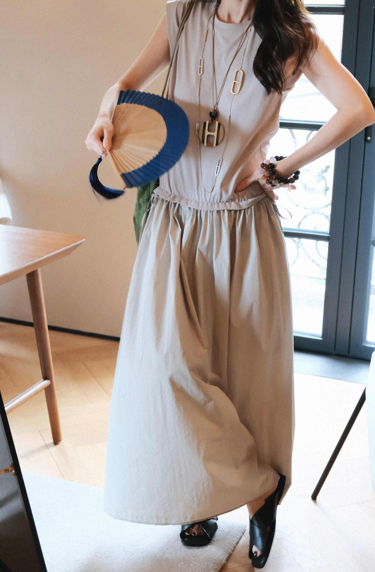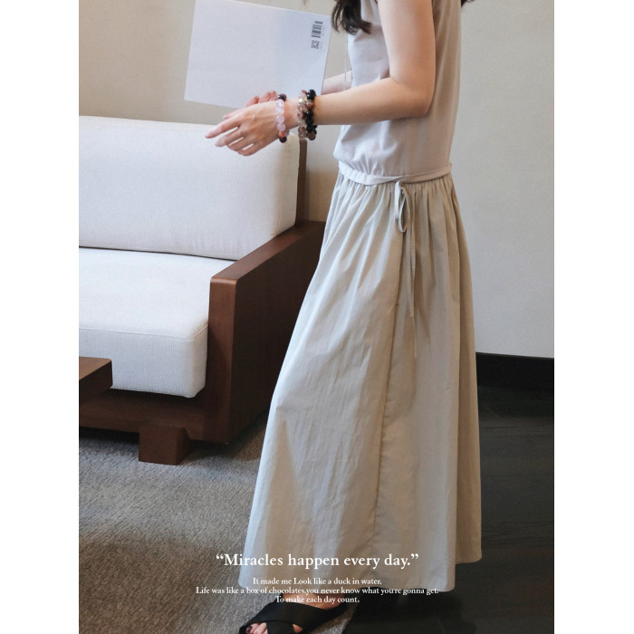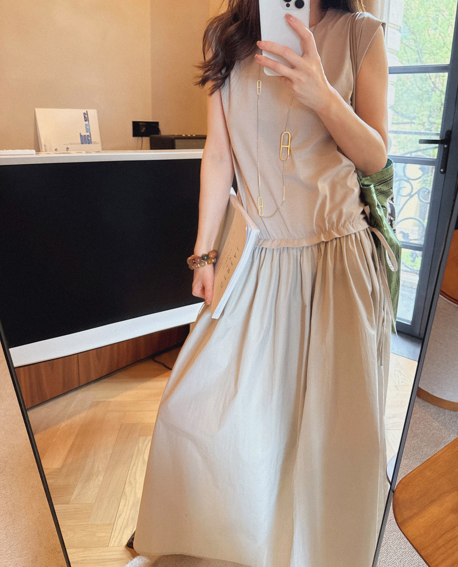 PKH.HK特 夏上新 私服日常涼爽小飛袖設計感遮肉肉橡筋收腰連衣裙