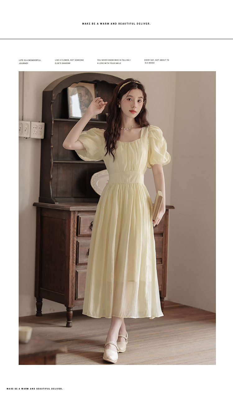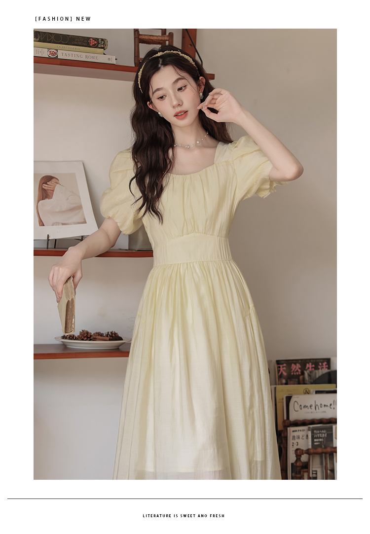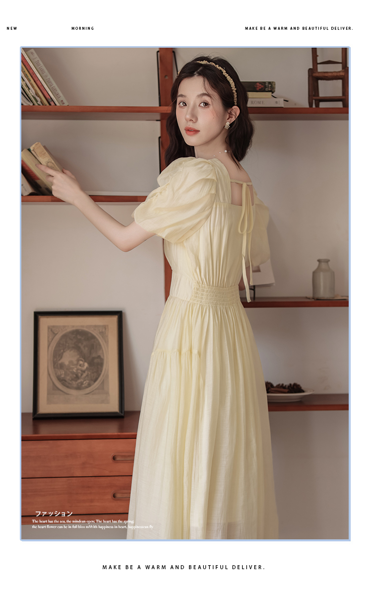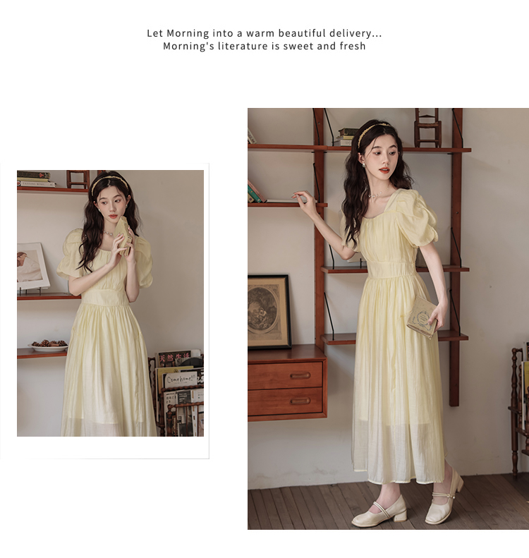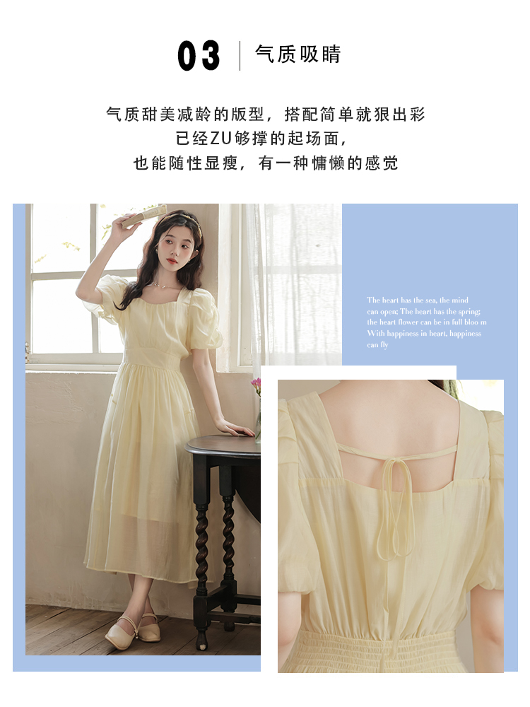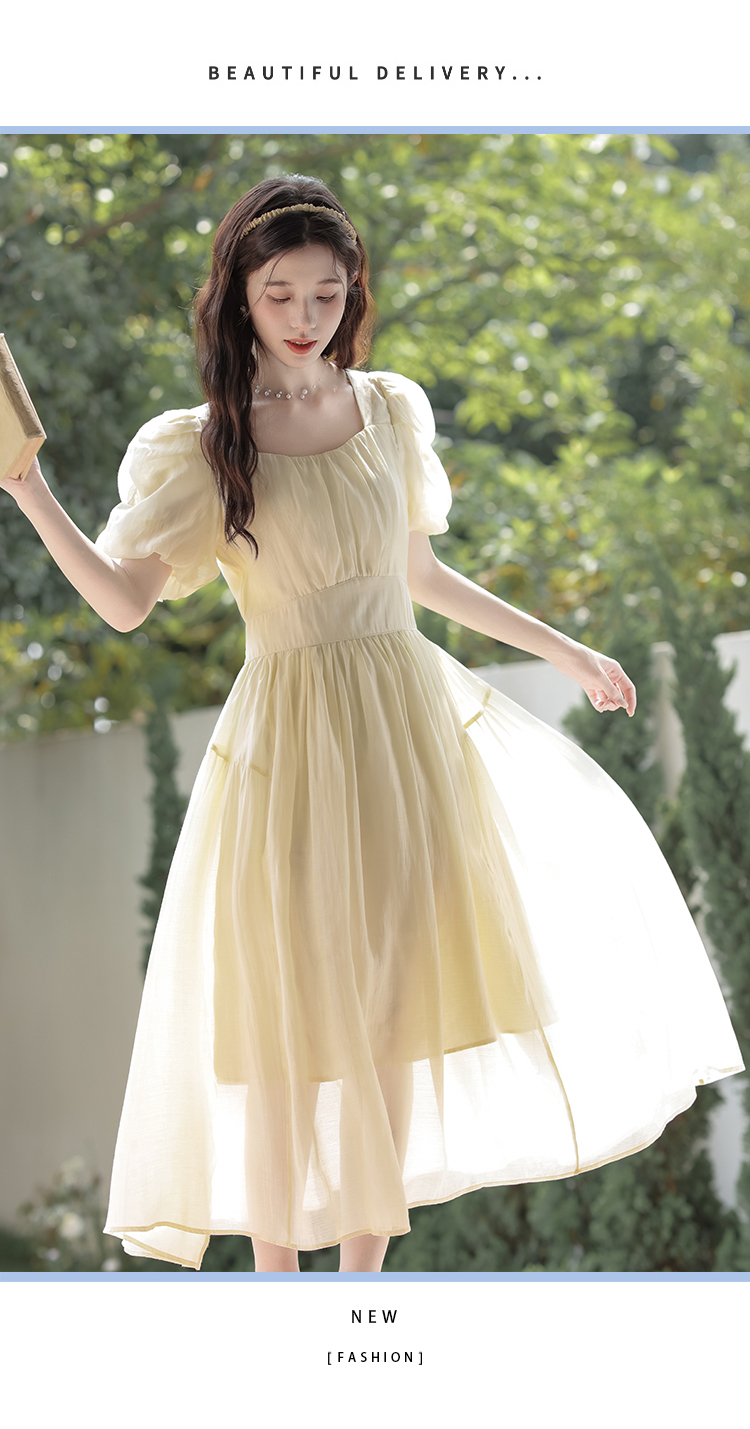拉夏貝爾官方法式茶歇連衣裙女2025夏季新款甜美顯瘦氣質黃色長裙