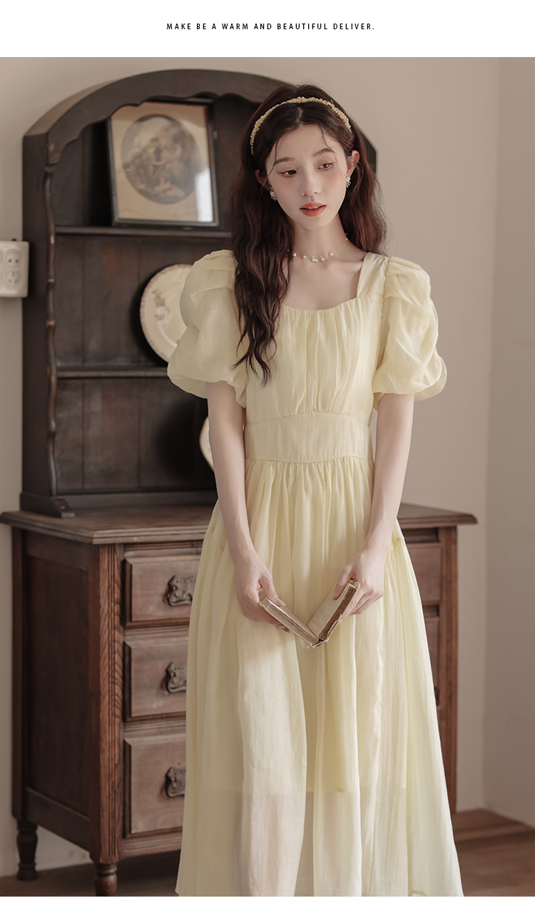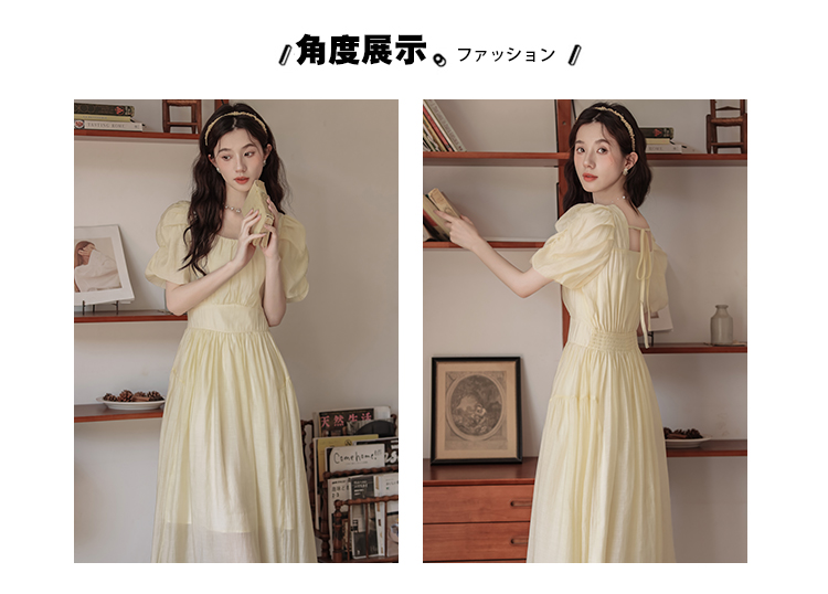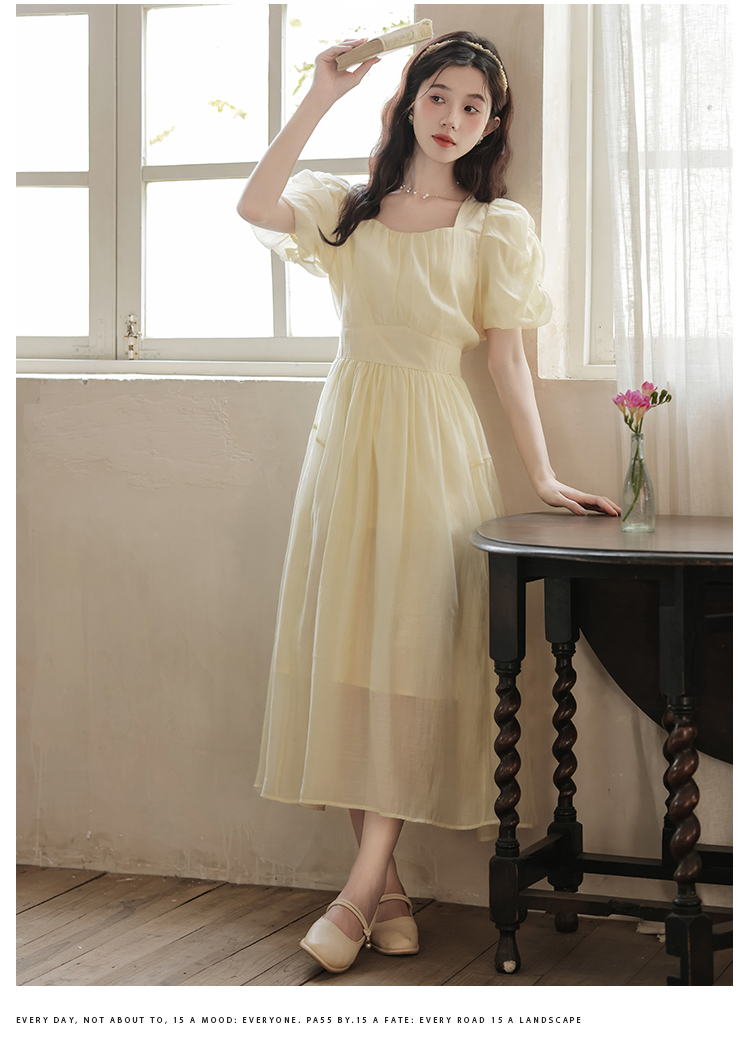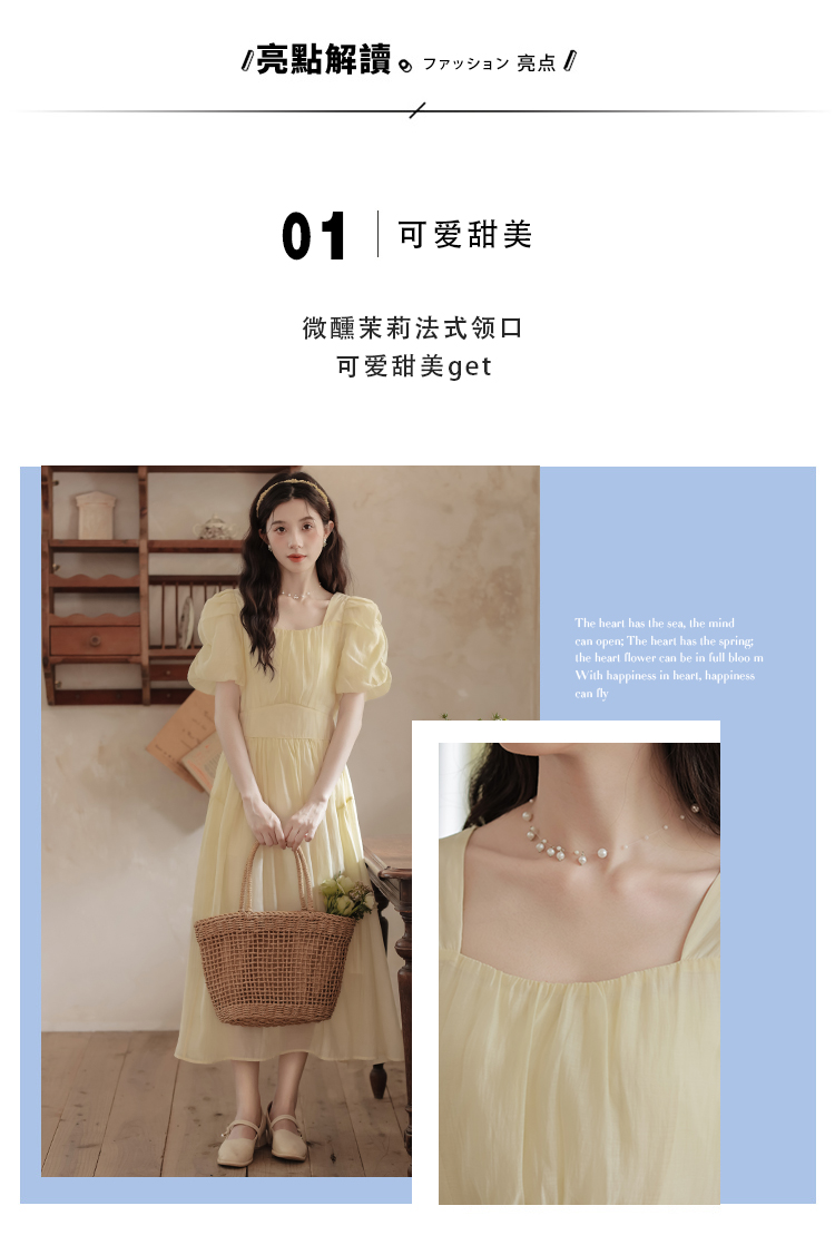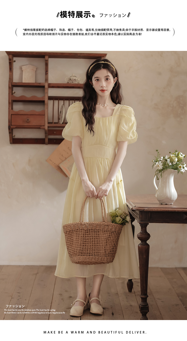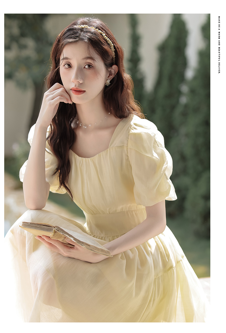 拉夏貝爾官方法式茶歇連衣裙女2025夏季新款甜美顯瘦氣質黃色長裙