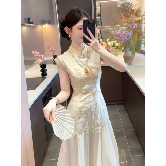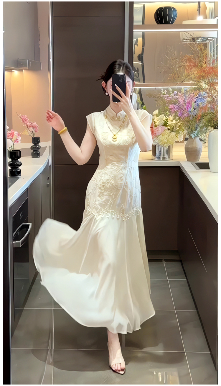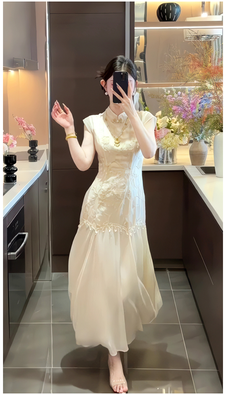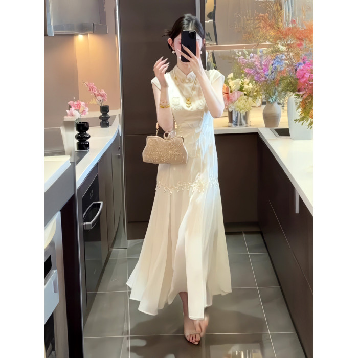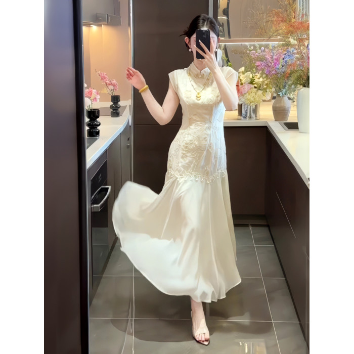 新中式國風刺綉提花改良旗袍連衣裙女夏2025新款名媛風情萬種裙子