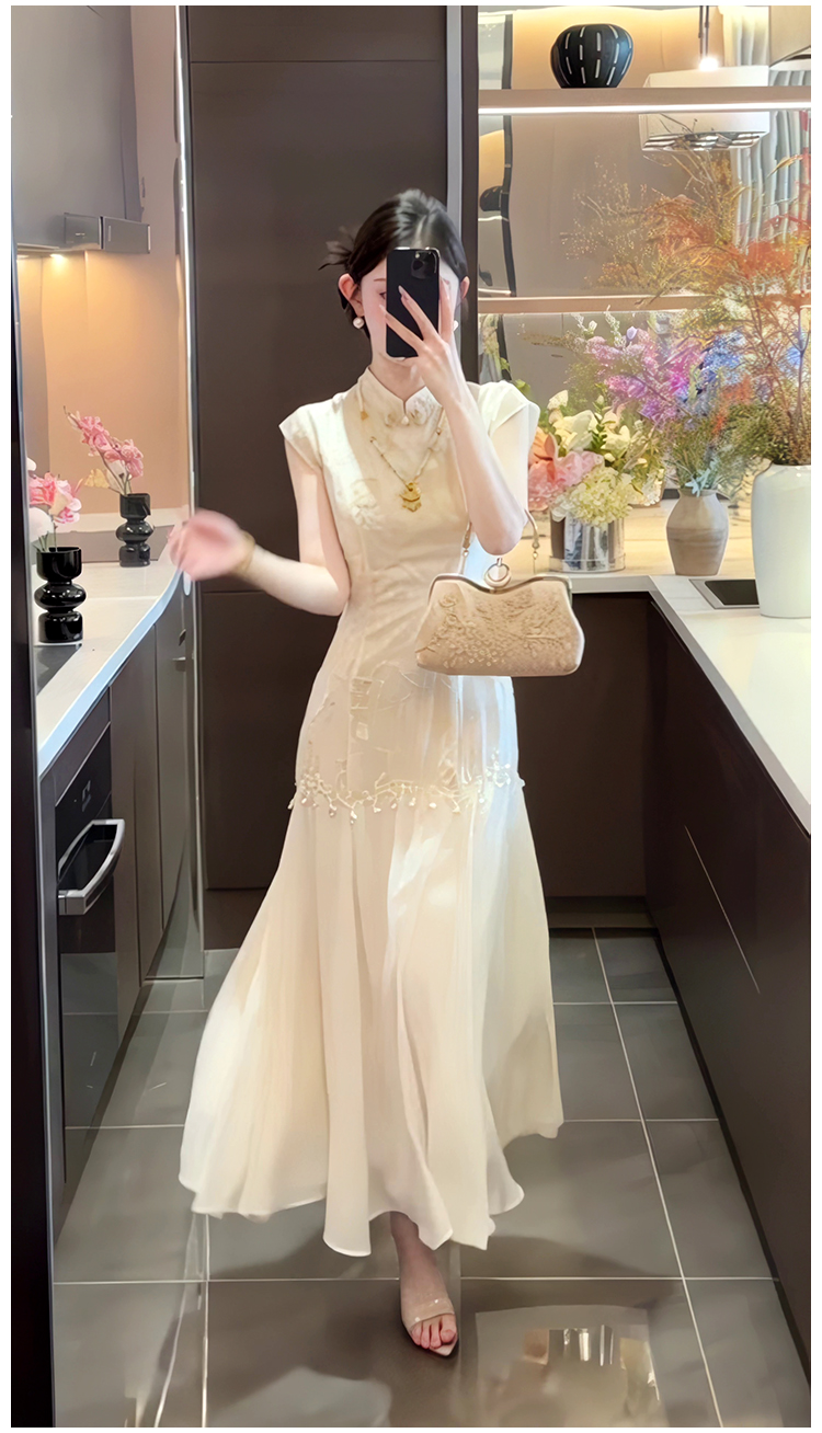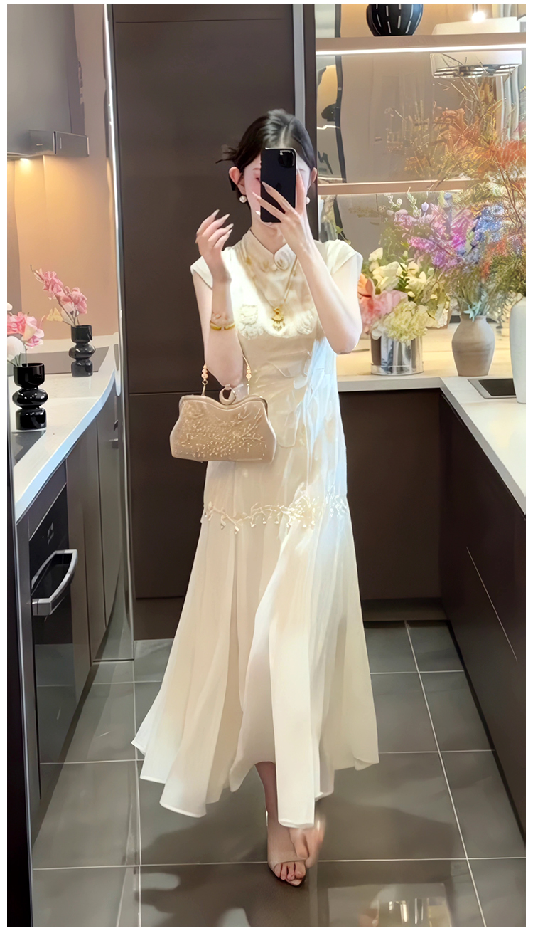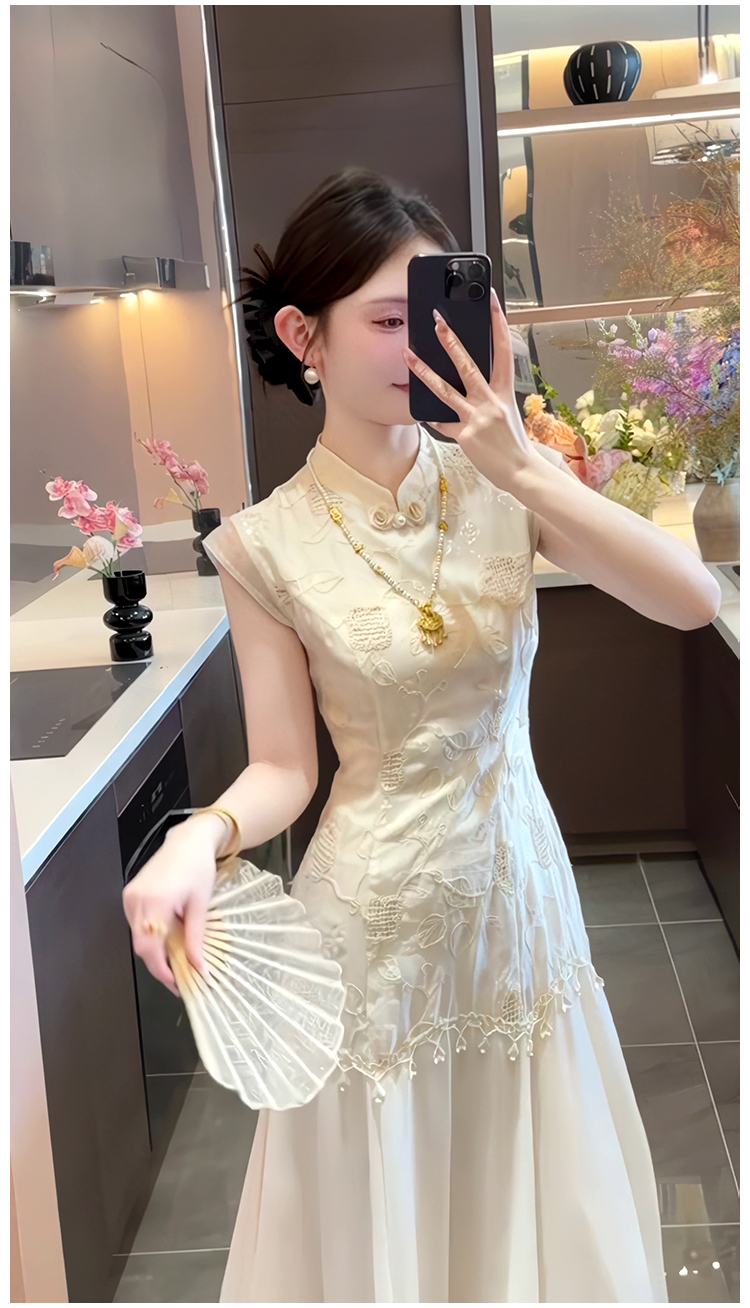 新中式國風刺綉提花改良旗袍連衣裙女夏2025新款名媛風情萬種裙子