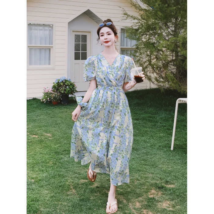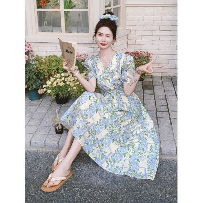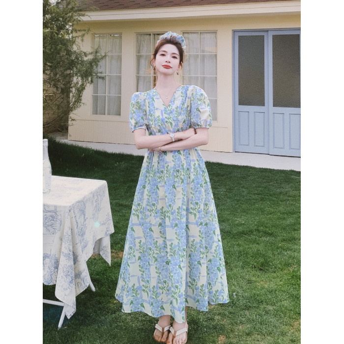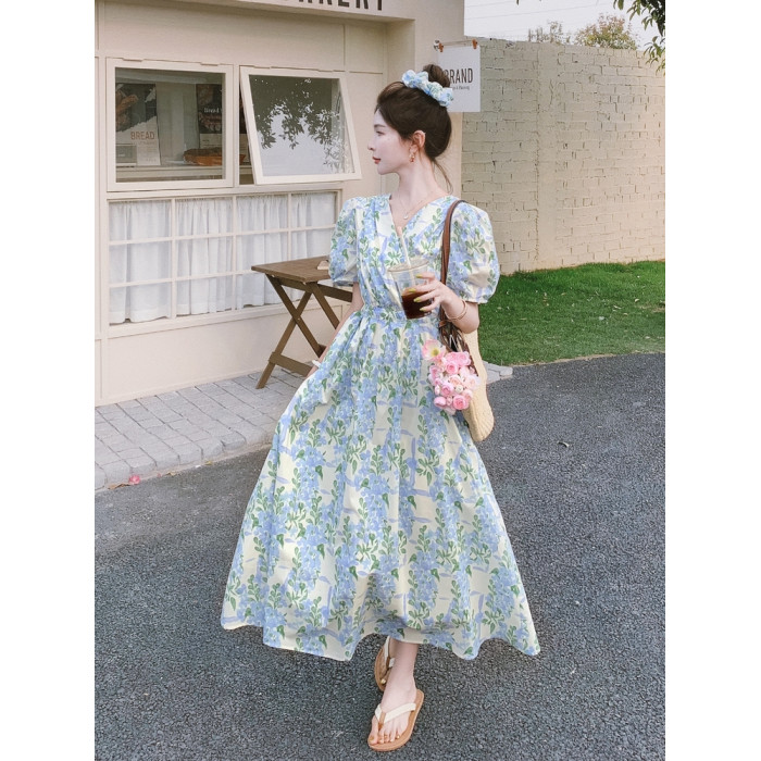 2025夏季新款碎花連衣裙女法式復古甜美氣質設計感小衆顯瘦長裙子