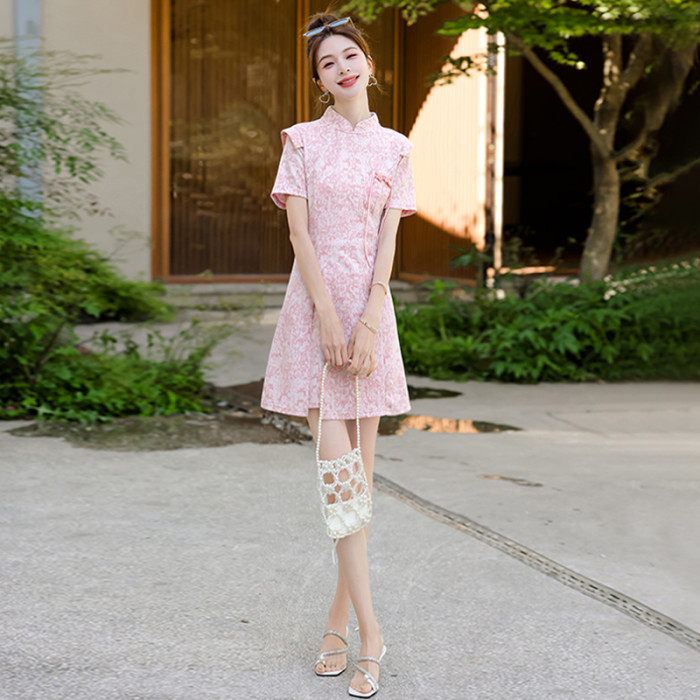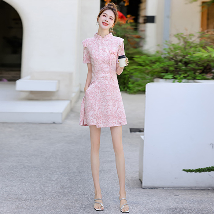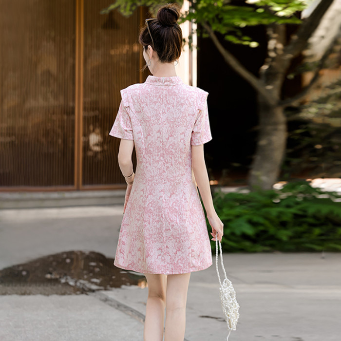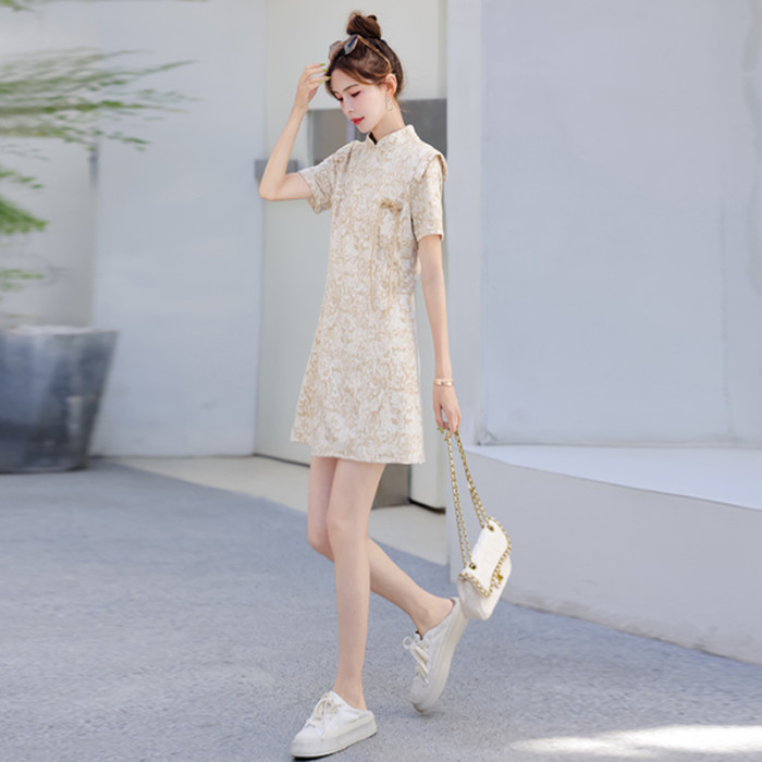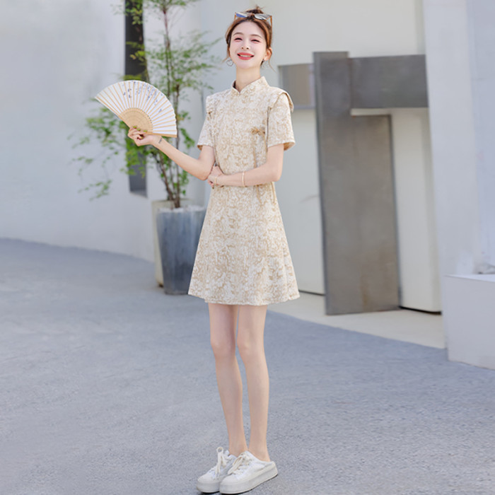 時尚新中式國風改良旗袍套裝女夏季氣質盤釦立領連衣裙短褲兩件套