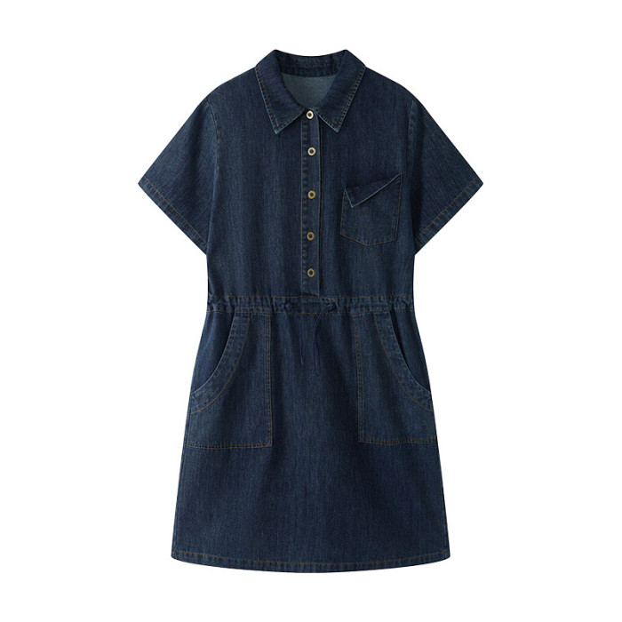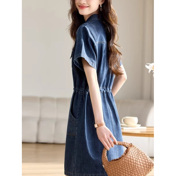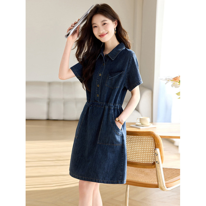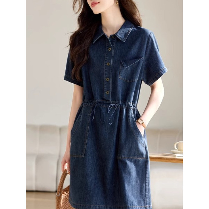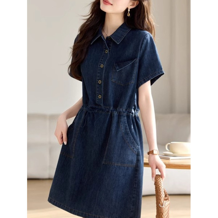 天絲棉牛仔連衣裙女薄夏季2025新款洋氣寬松收腰遮肚大碼媽媽裙子