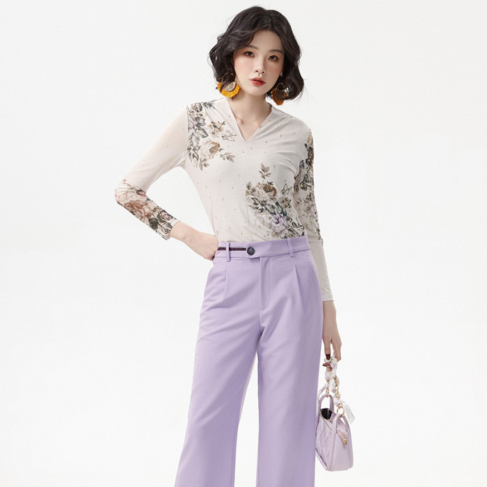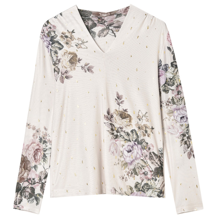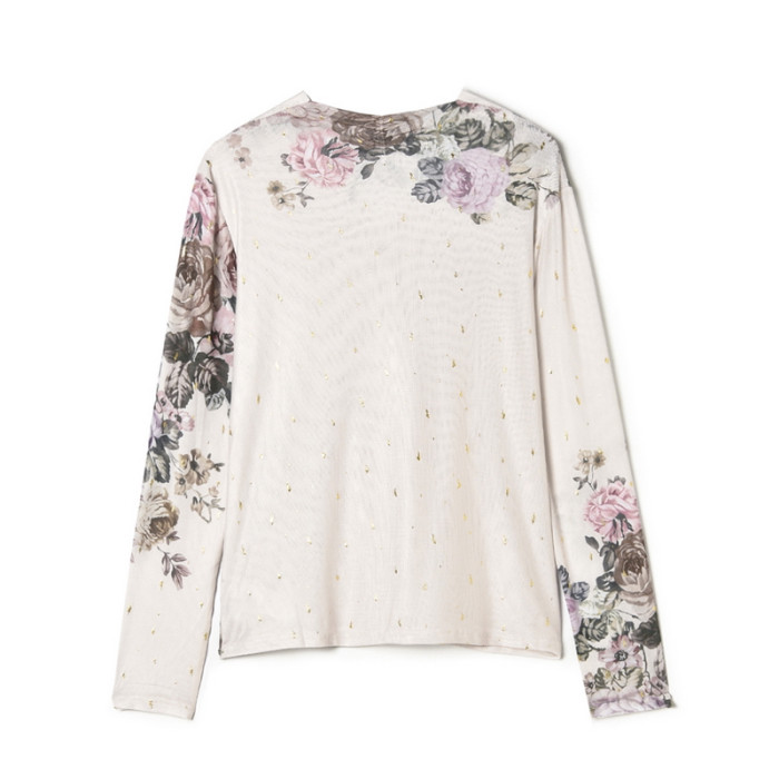 奧萊品牌折釦 JR春裝2025新款 甜美氣質長袖高彈印花針織打底衫女