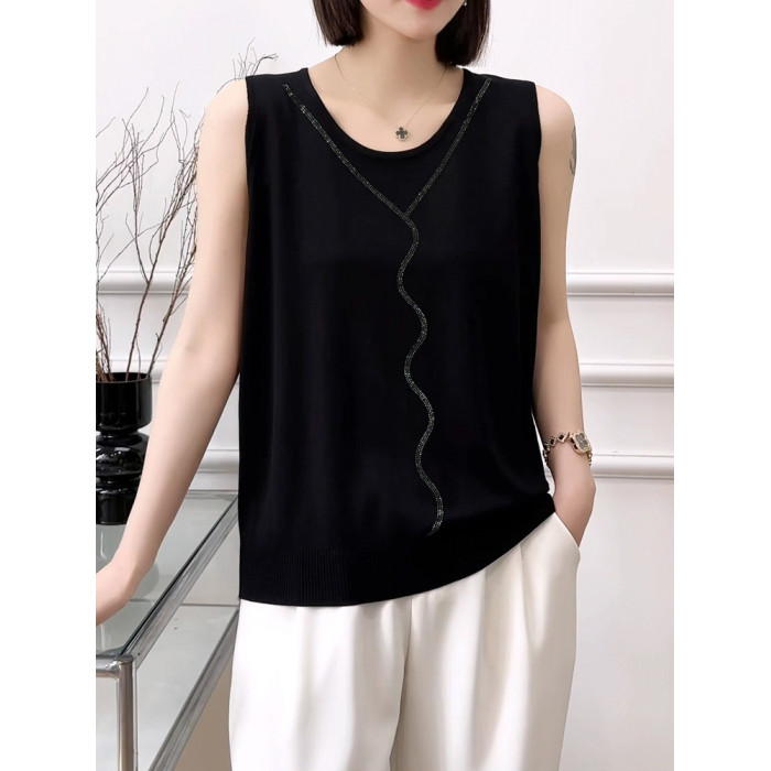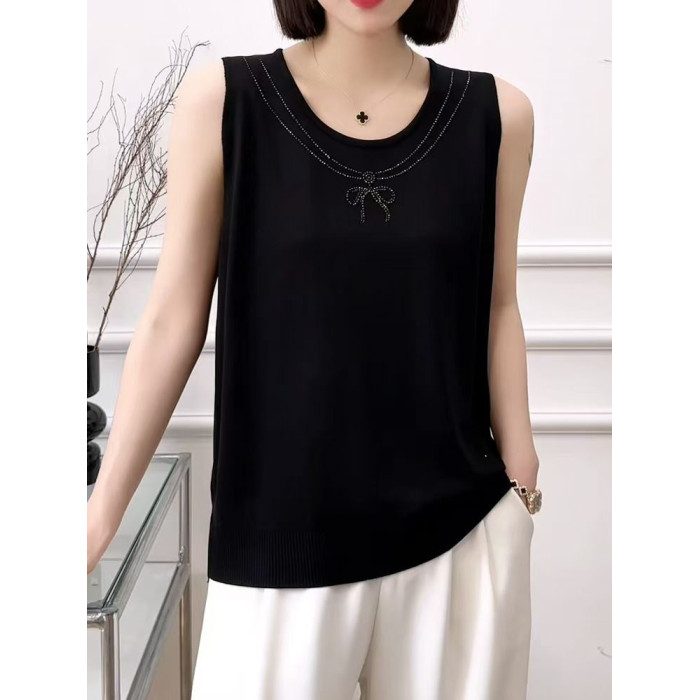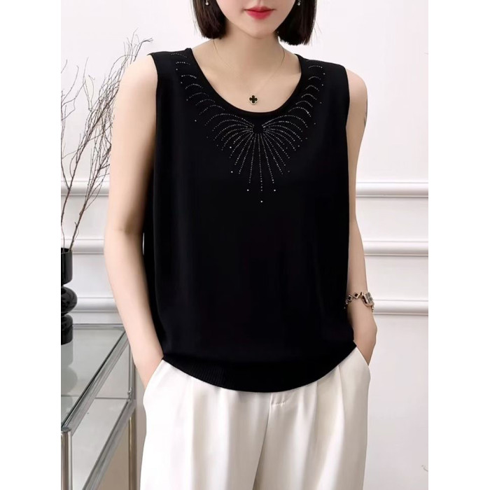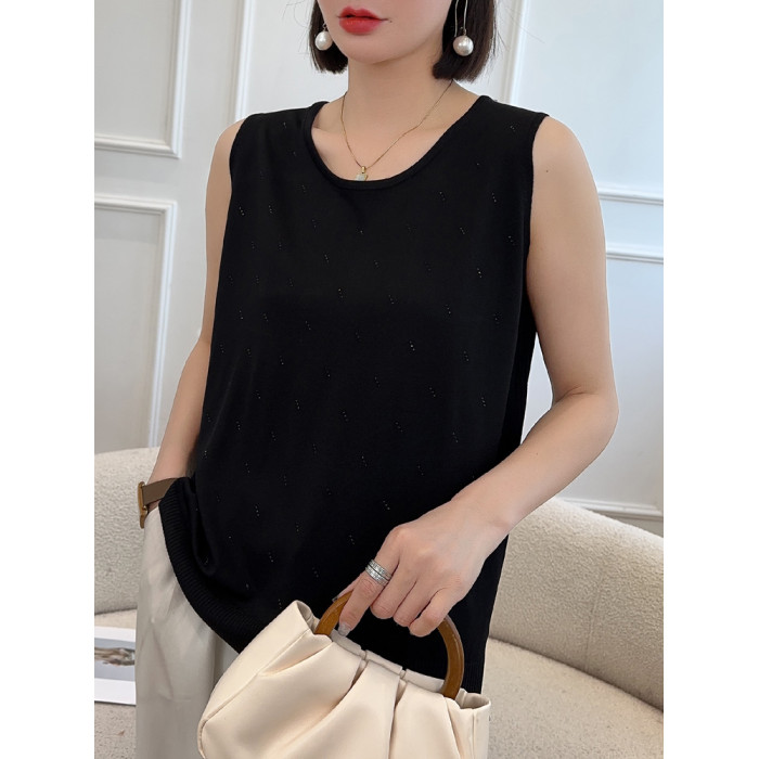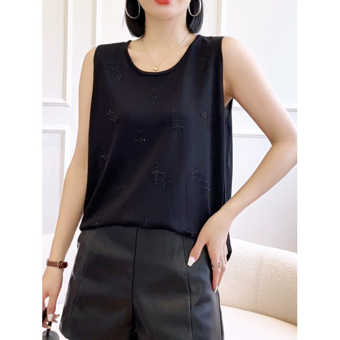 冰絲打底背心女夏季薄款內搭遮肚子顯瘦寬松燙鑽針織吊帶可外穿