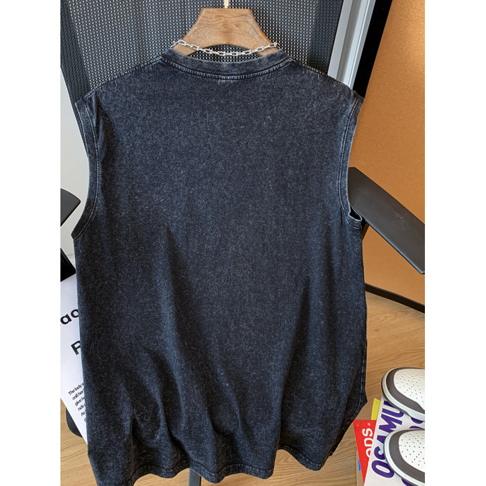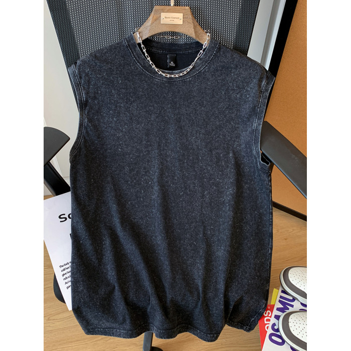 JIAF男生水洗做舊無袖背心T恤痞帥美式潮牌寬松純棉涼感純色上衣