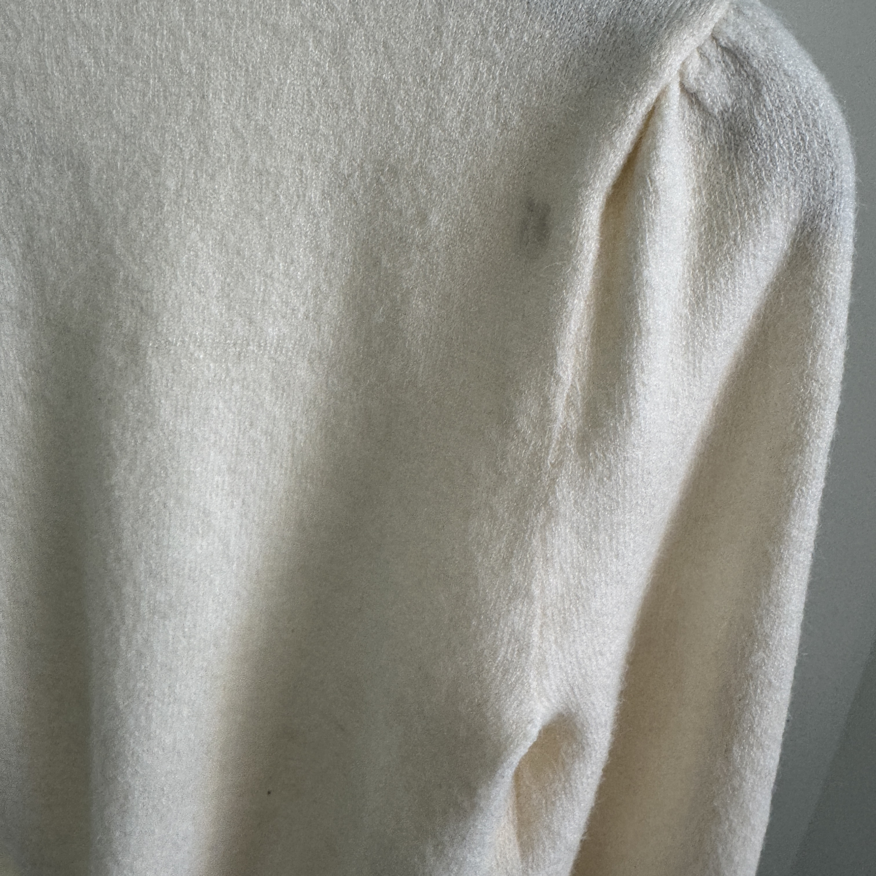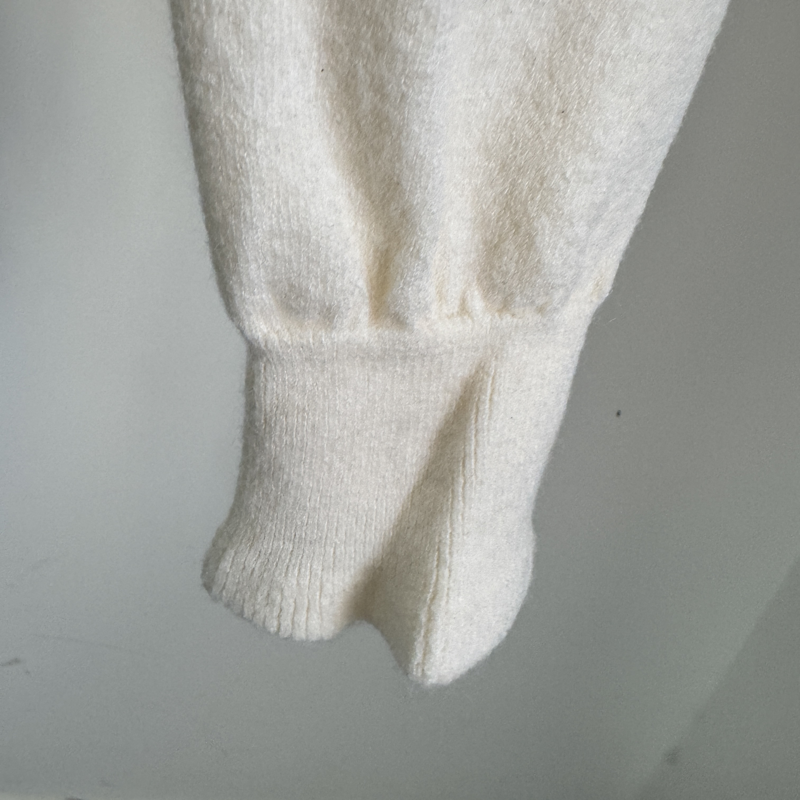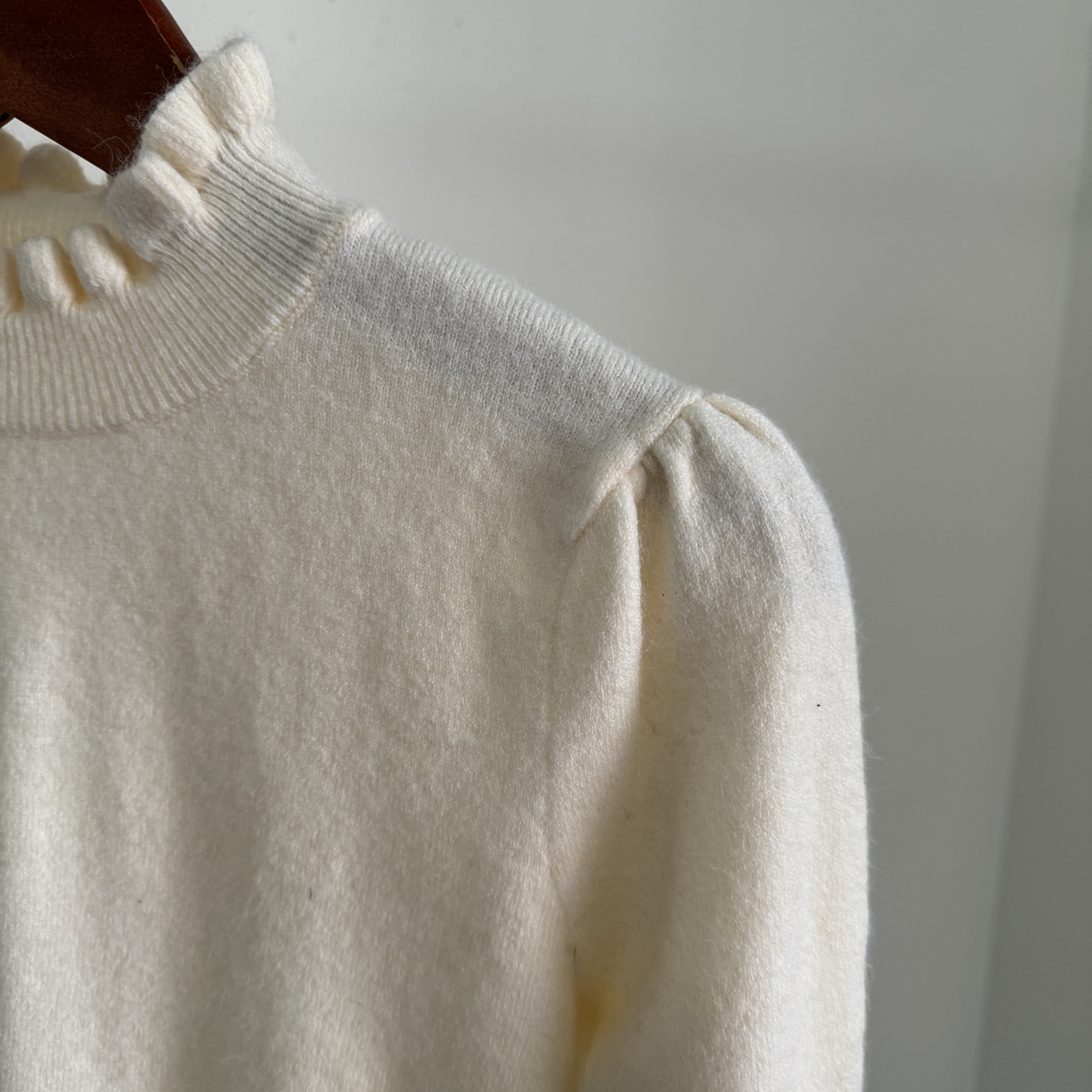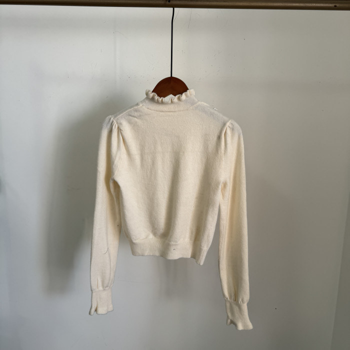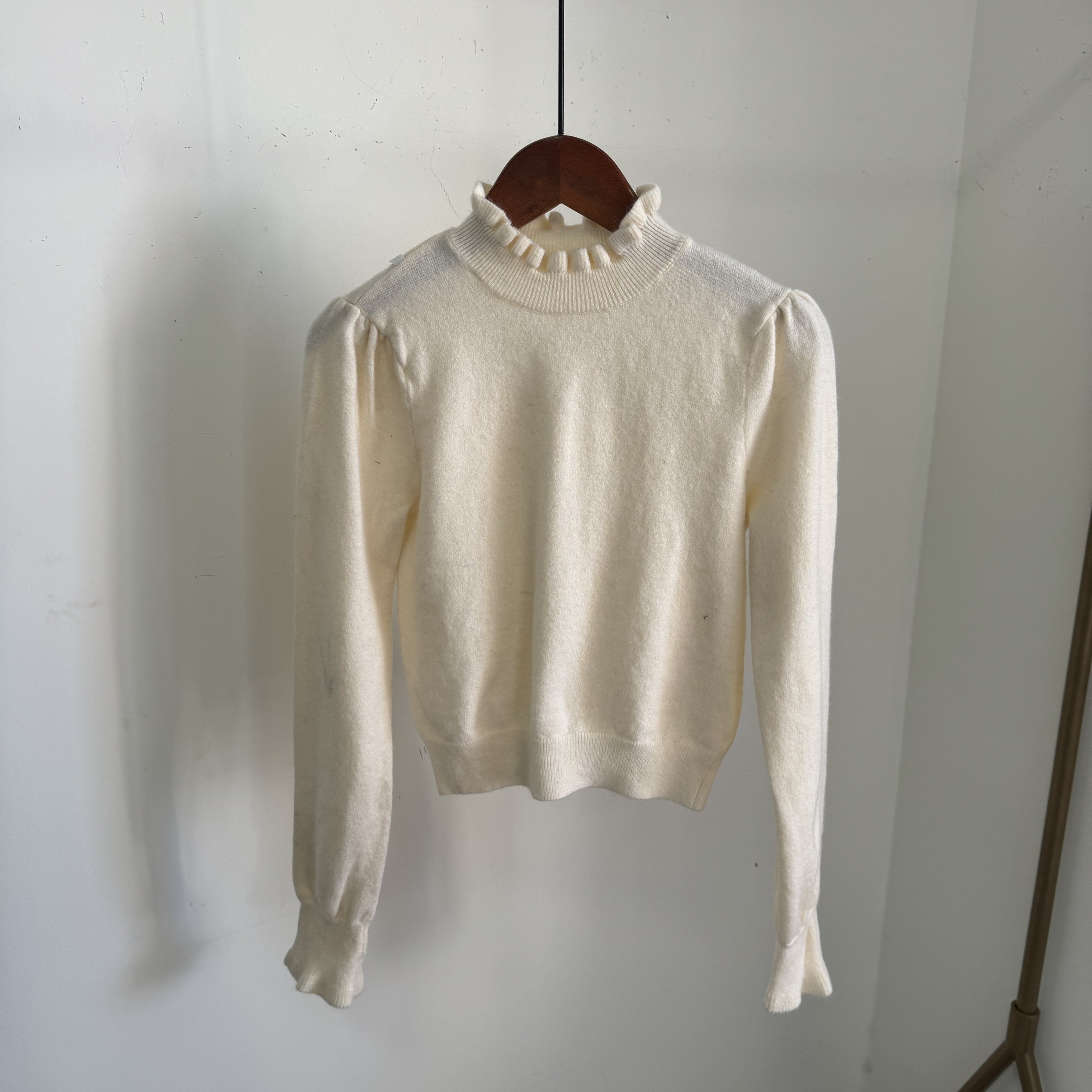 菀系列剪標微瑕白色花邊半高領打底衫復古燈籠袖針織毛衣女W147