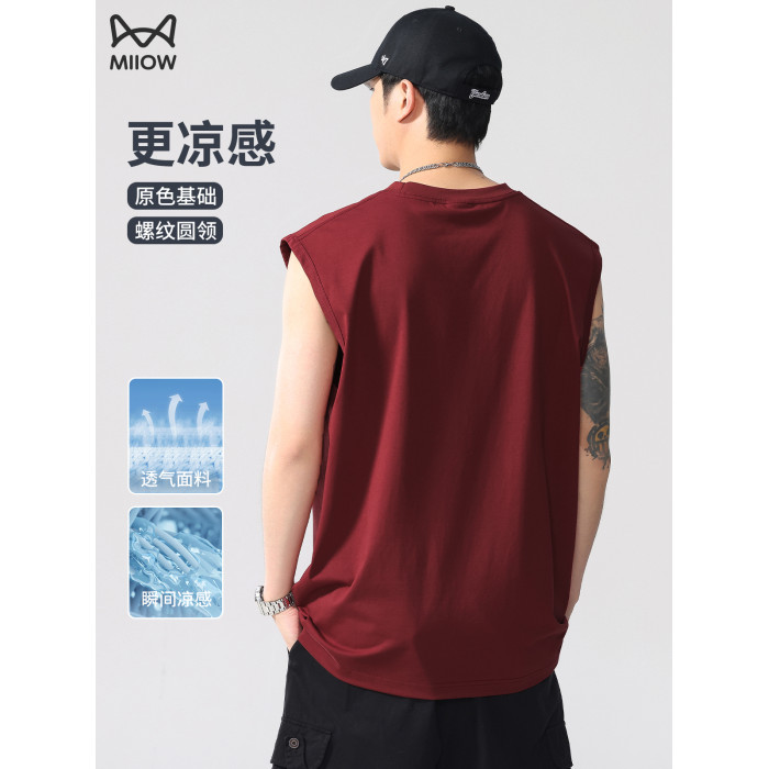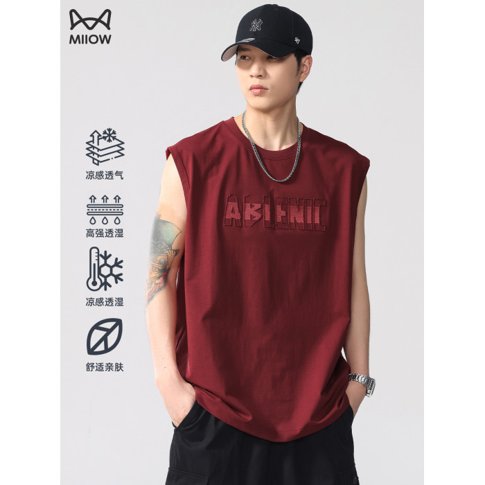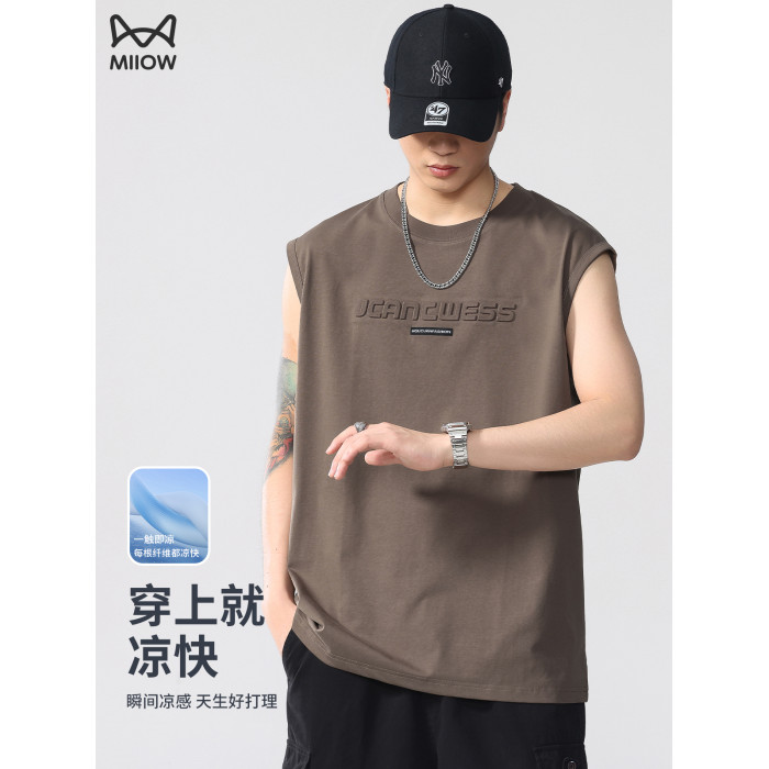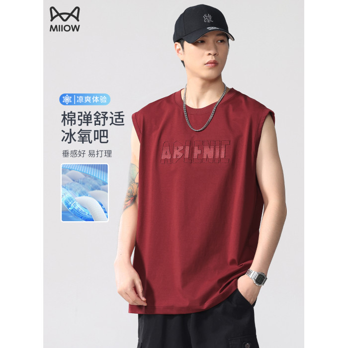 貓人美式背心男士夏季薄款潮流寬松無袖冰絲透氣運動休閒坎肩T恤