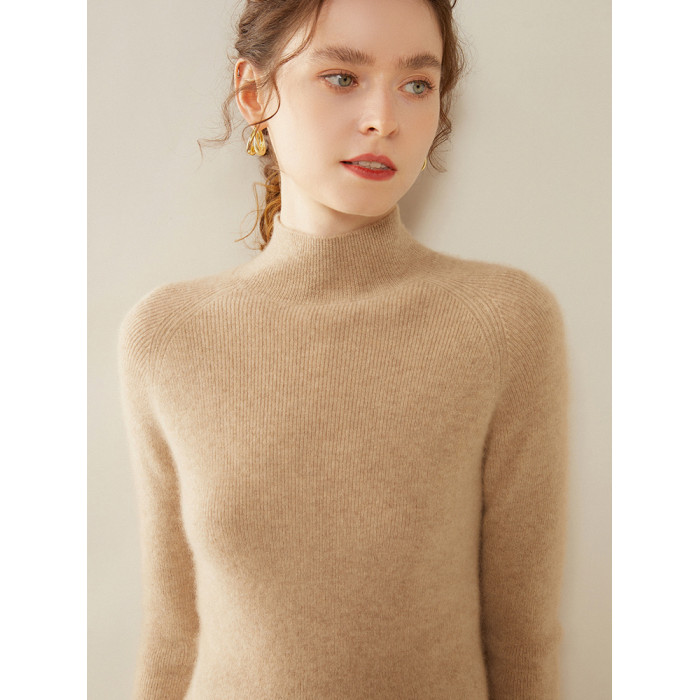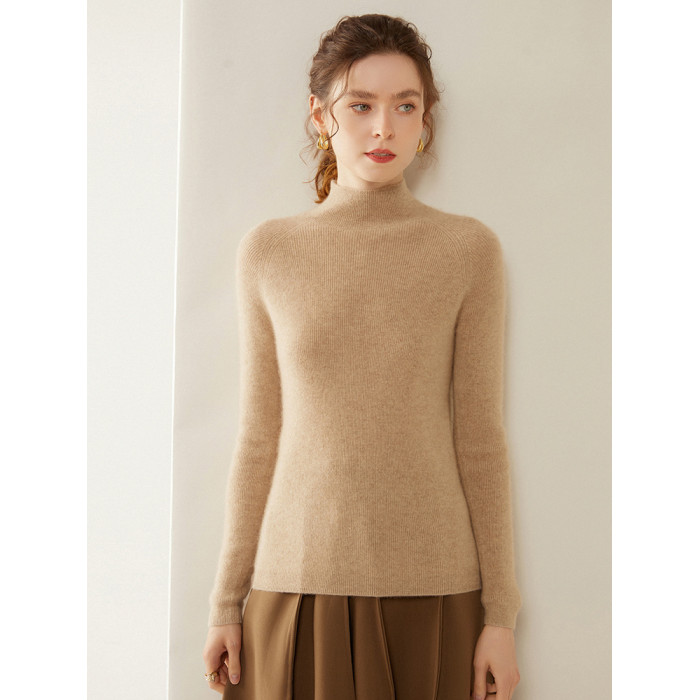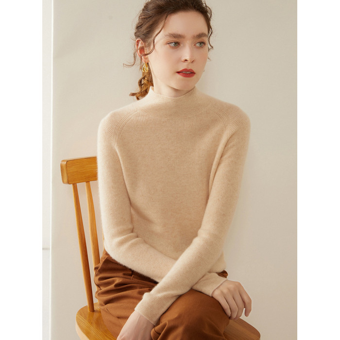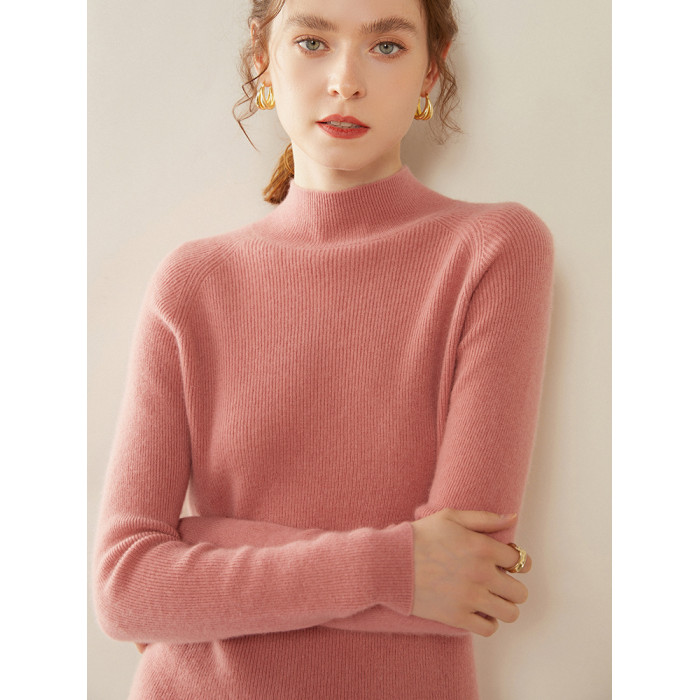 2024秋冬半高領100%純山羊絨女修身顯瘦套頭毛衣抽條緊身打底衫