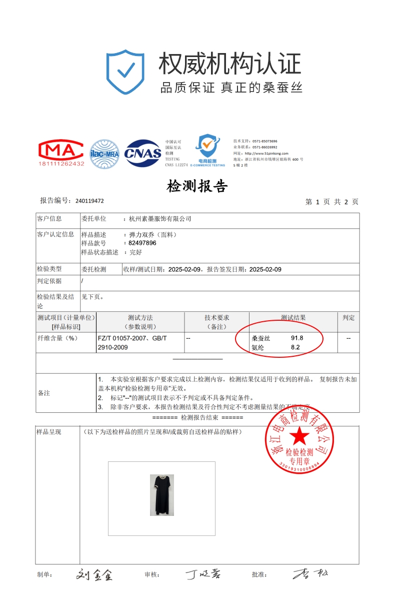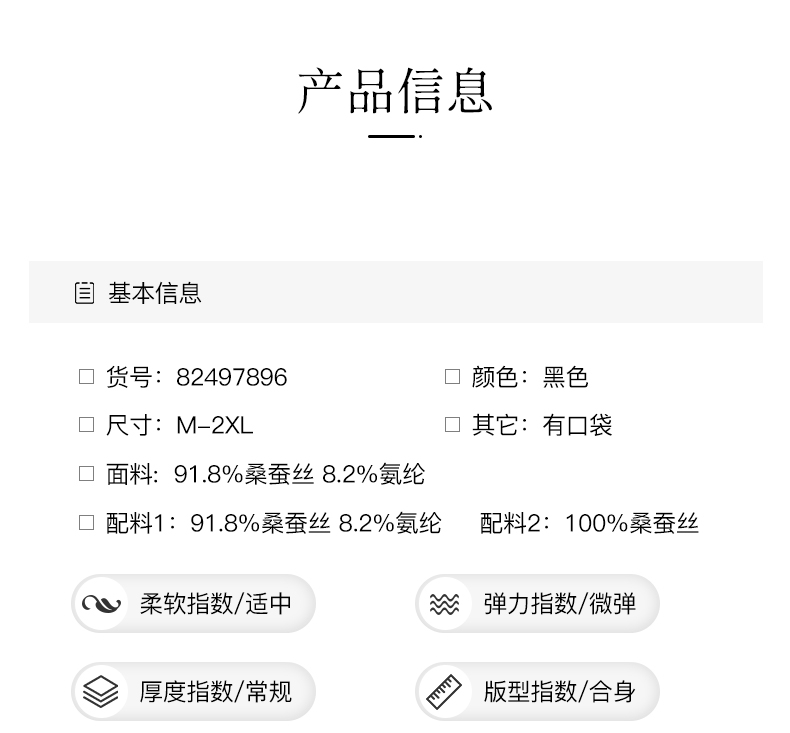 材質成分 | 桑蠶絲91.8% 聚氨酯彈性纖維(氨綸)8.2% |