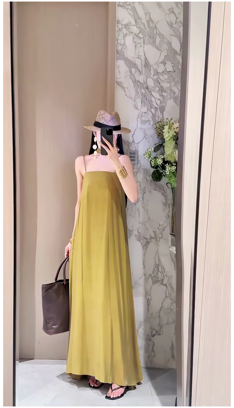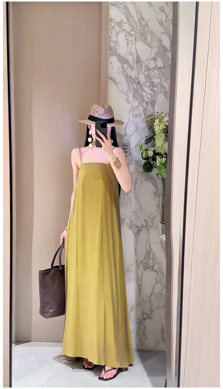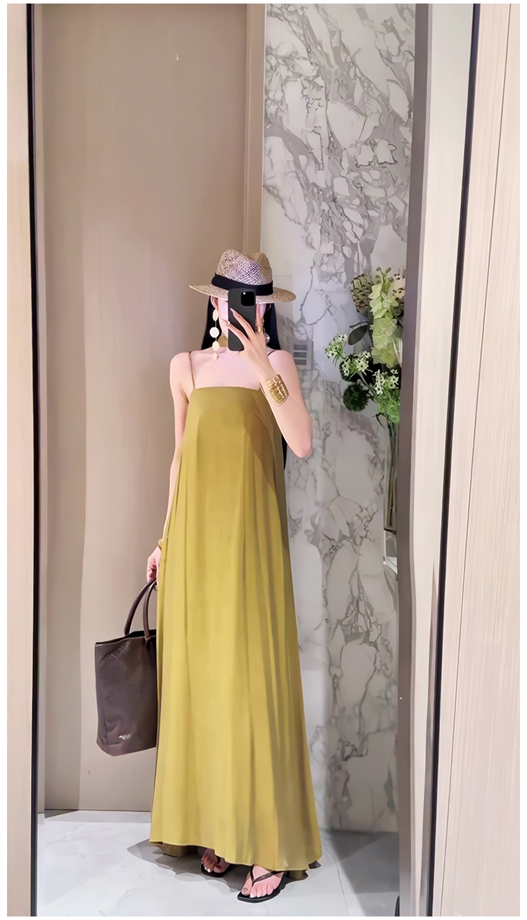 法式高級感氣質老錢風吊帶連衣裙女2025夏季新款時尚顯瘦寬松長裙