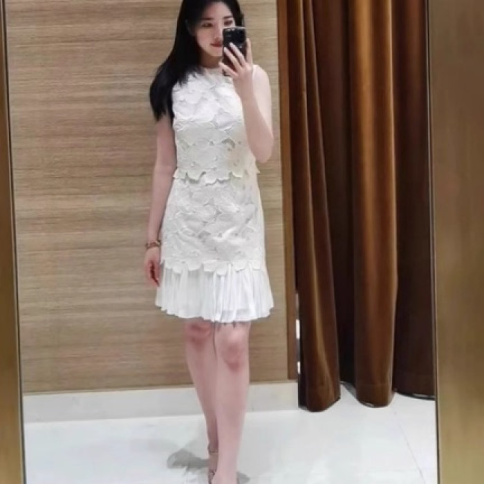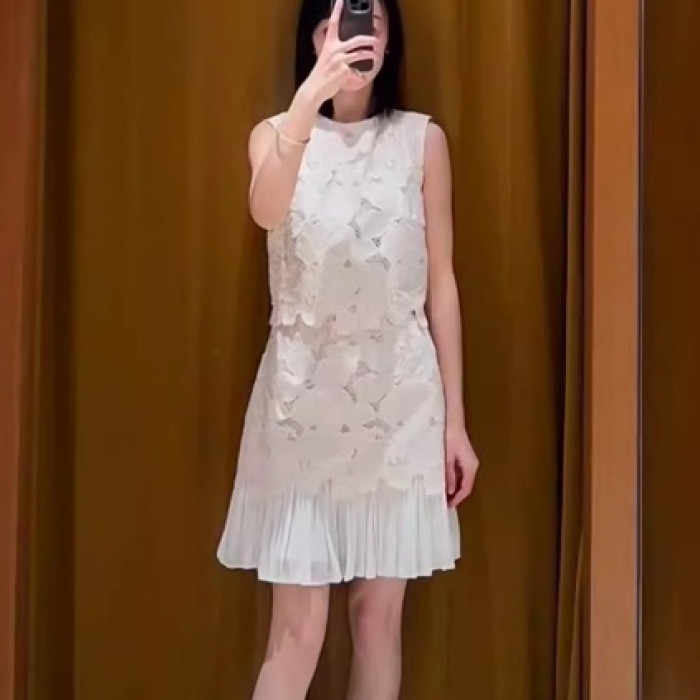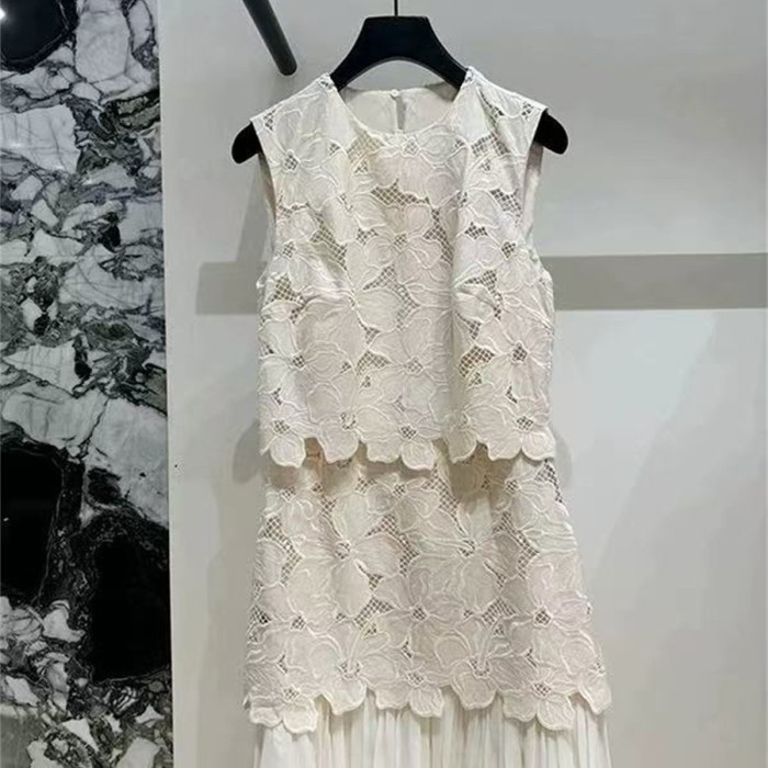 2025夏季新款時尚女裝法式鏤空花卉露背百褶連衣裙SFPRO04298
