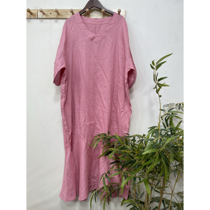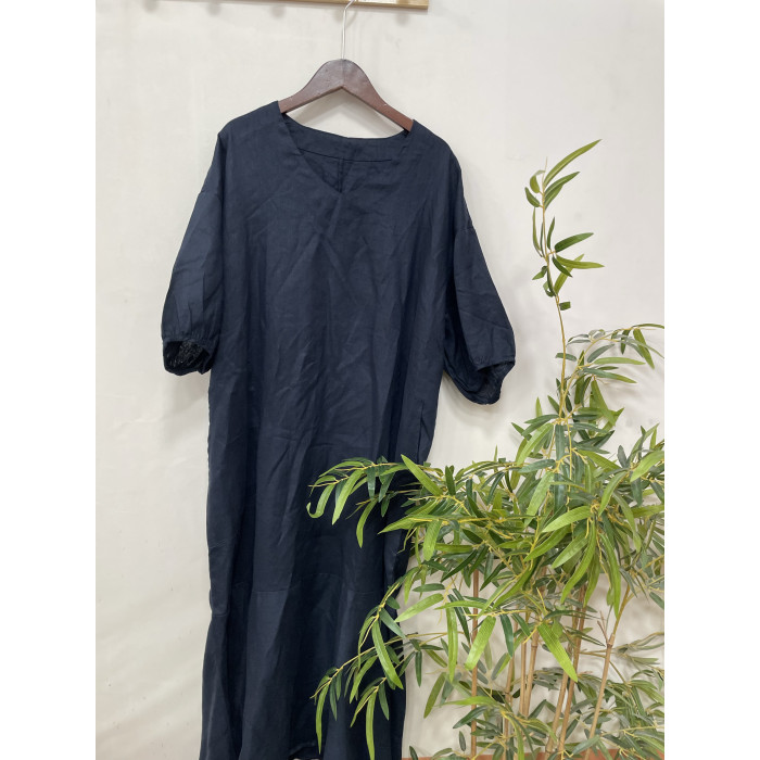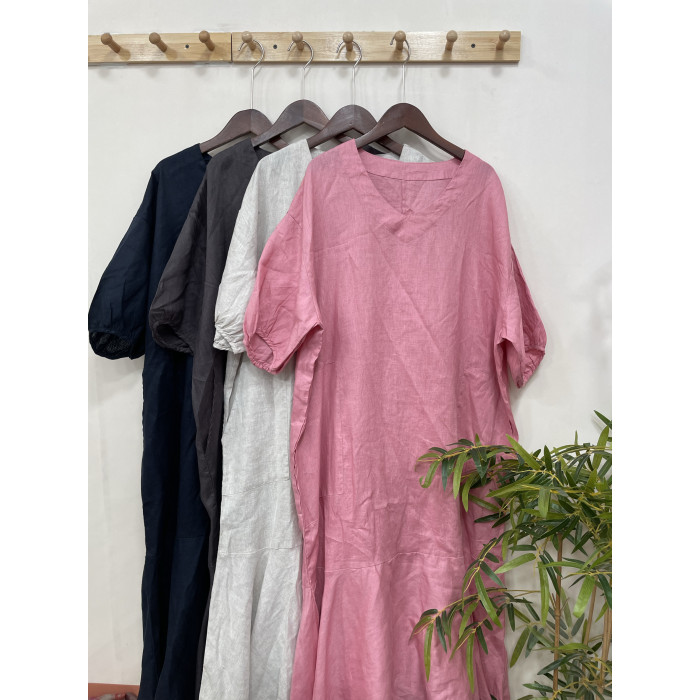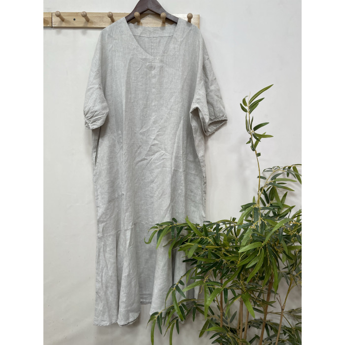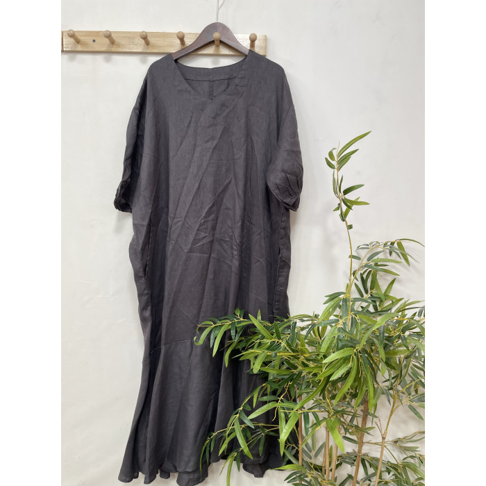 56007亞麻高品圓領五分袖下擺魚尾連衣裙胸圍134衣長125