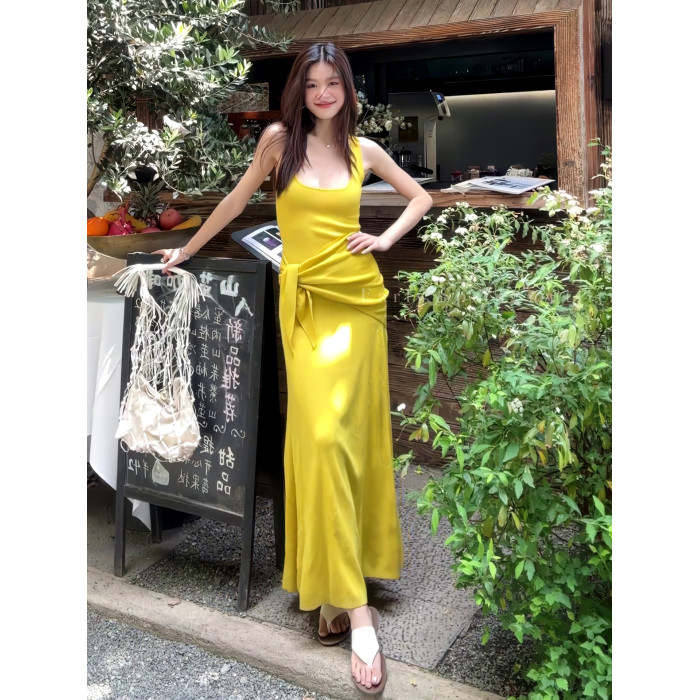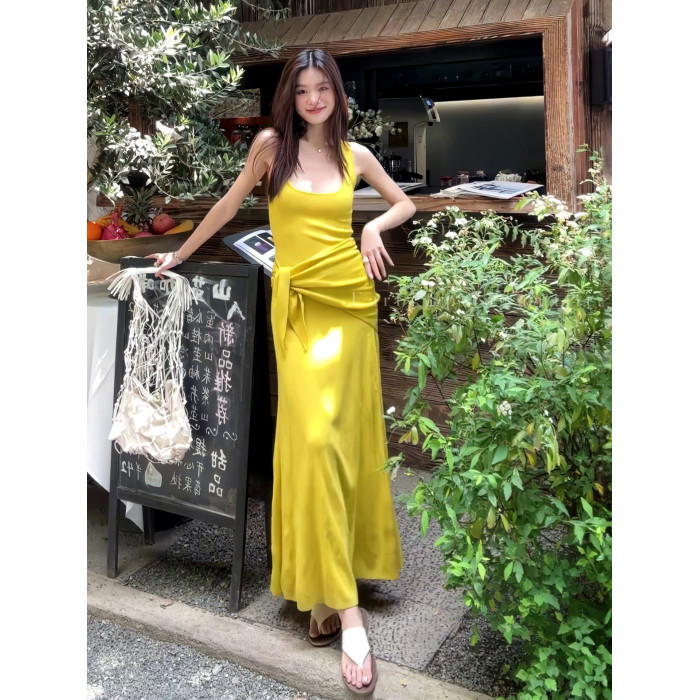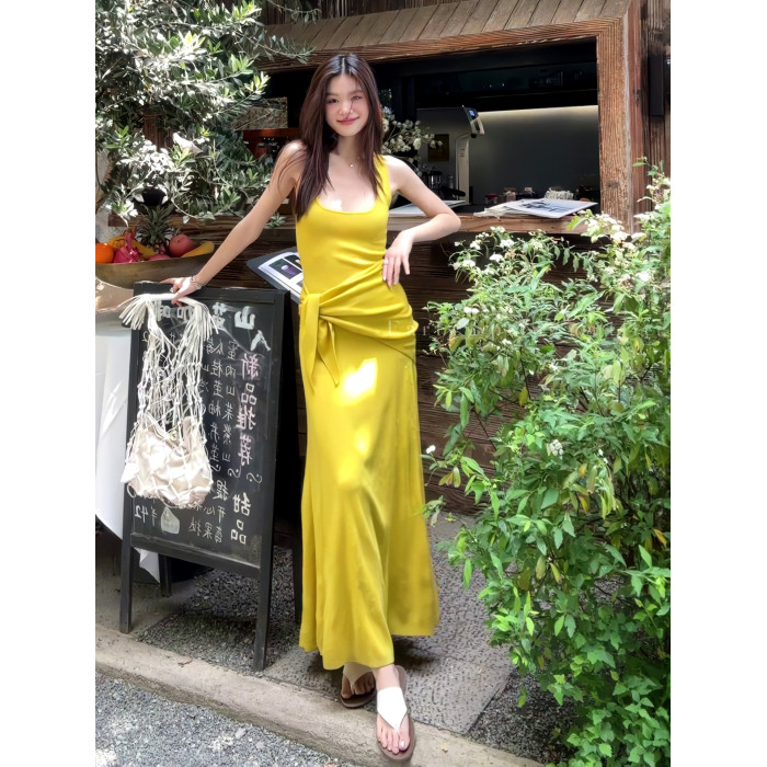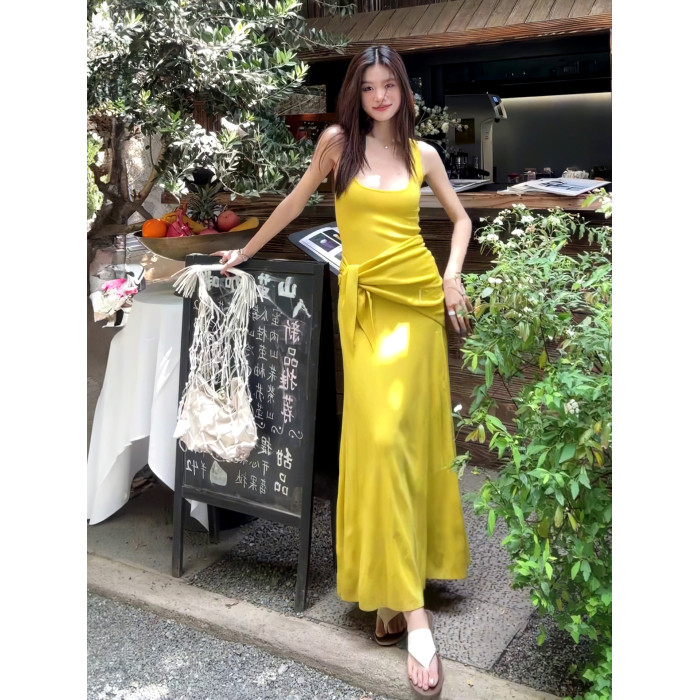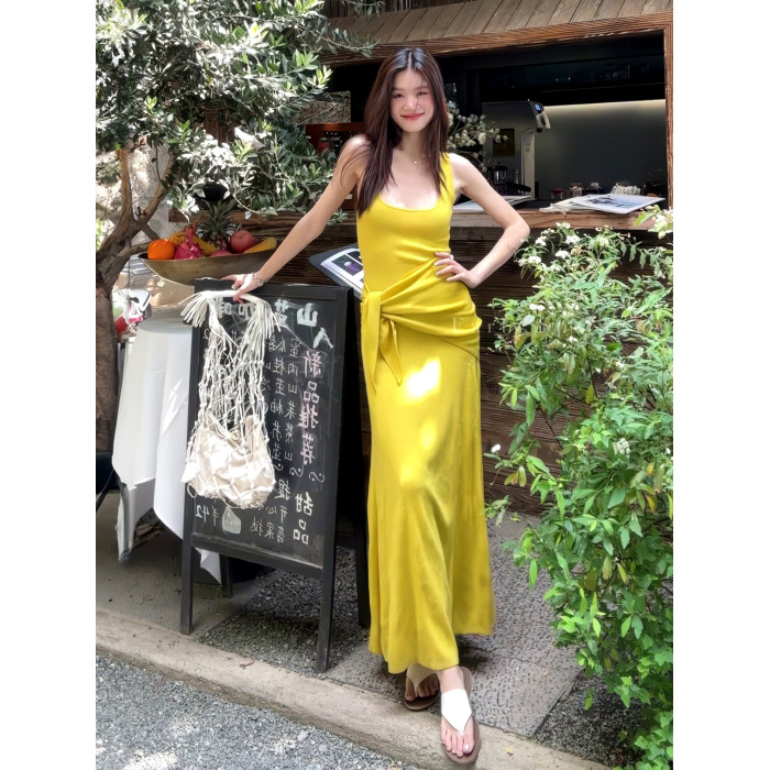 2025新款「紙片人」夏季顯瘦針織掛脖A字背心裙收腰U領無袖連衣裙