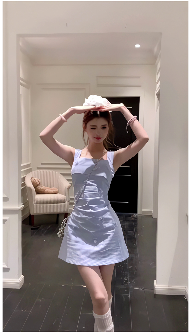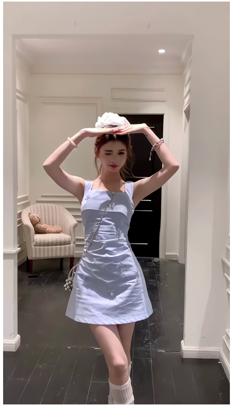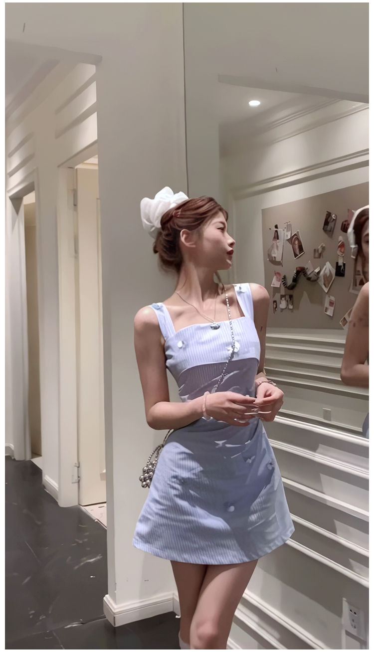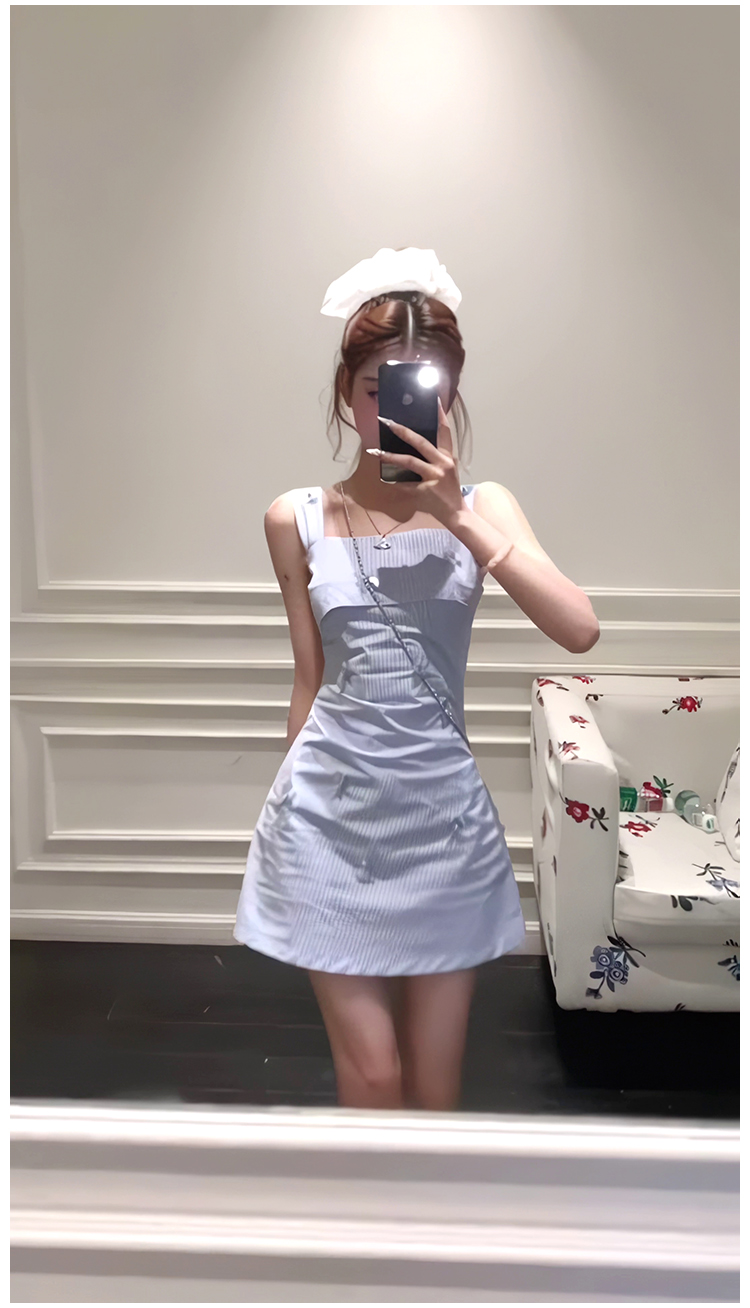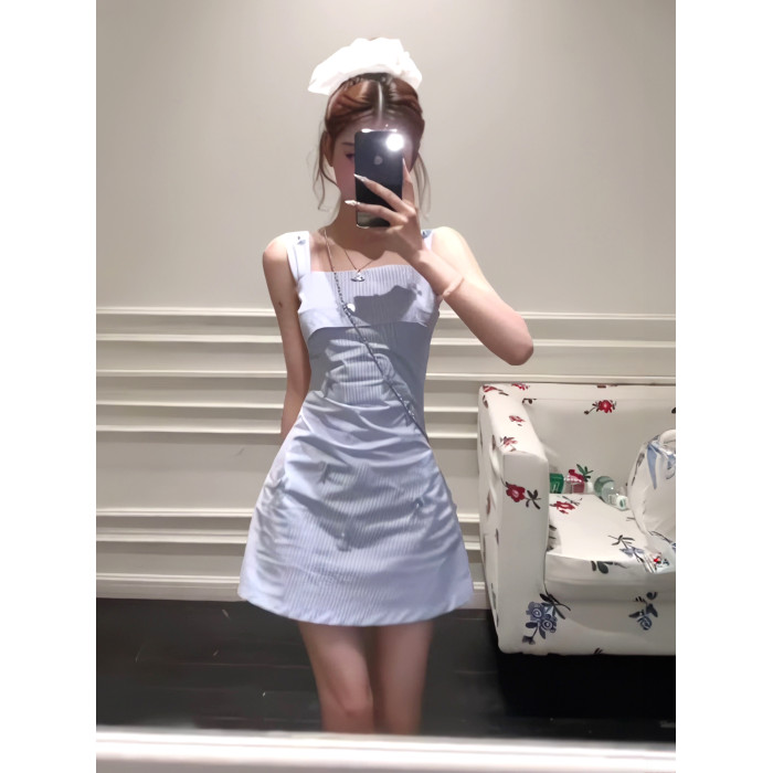 法式千金小香風藍色背心連衣裙女夏2025新款小個子收腰無袖短裙子