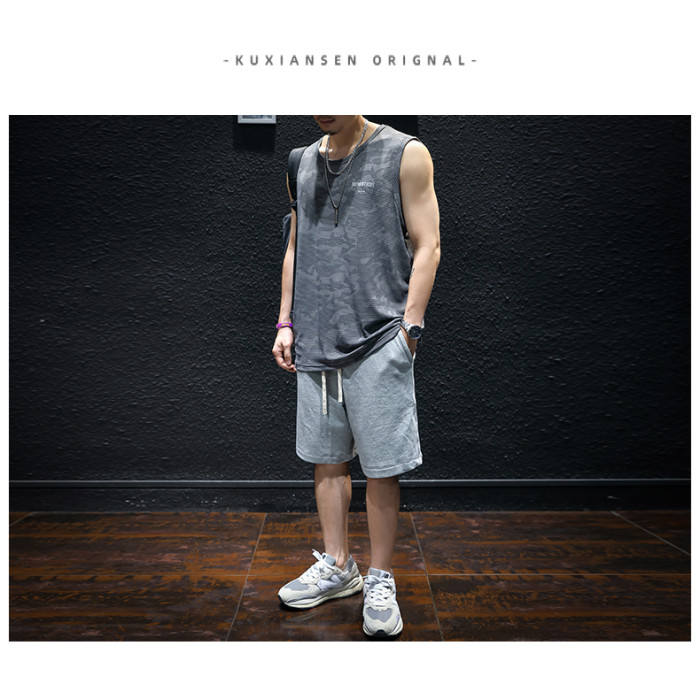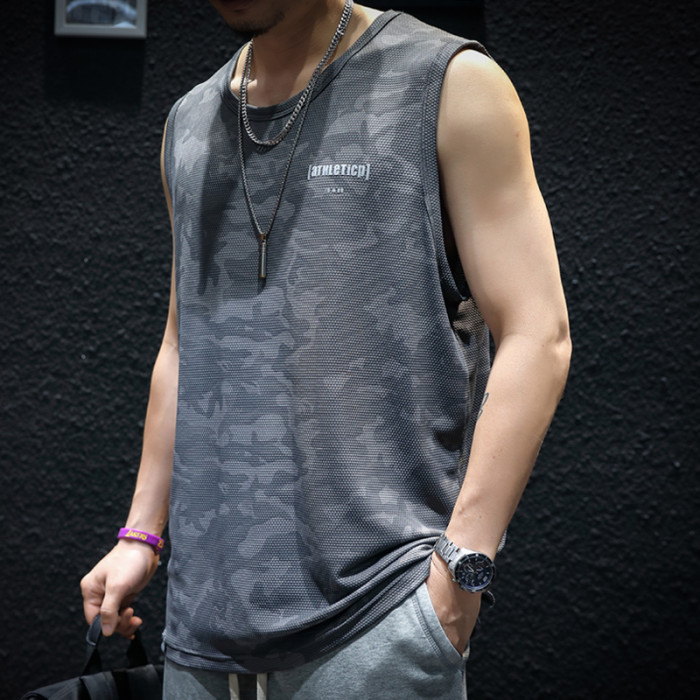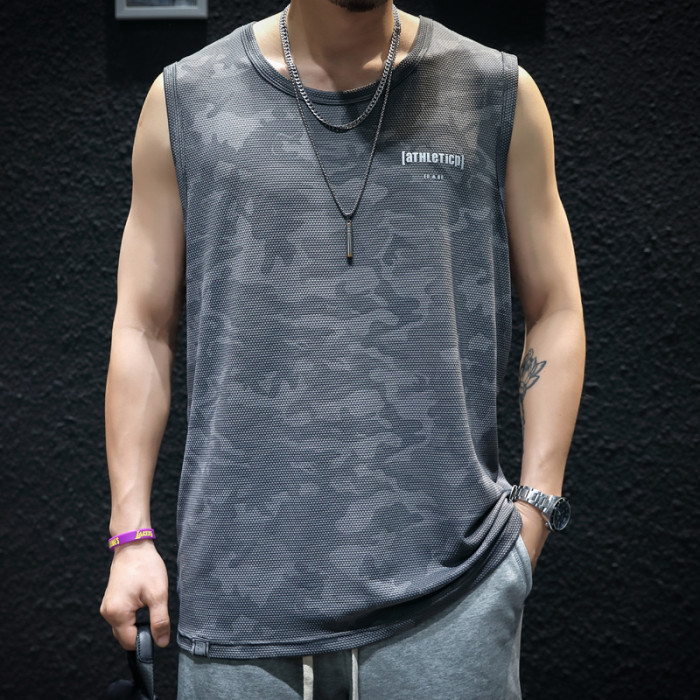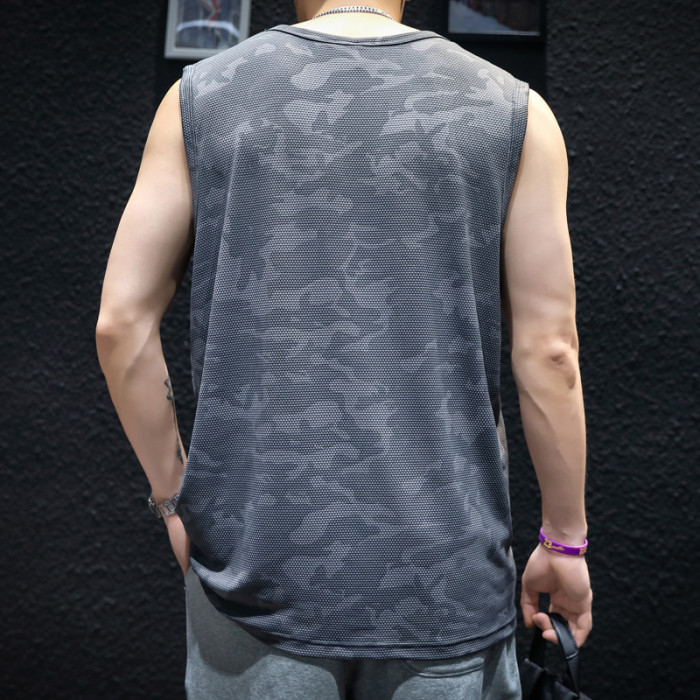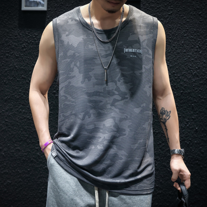 夏季速乾冰絲無袖背心男寬松坎肩運動健身寬肩舒適透氣t恤潮薄款