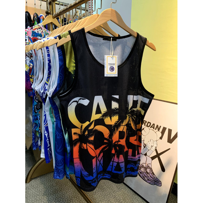 夏季薄款冰絲汗背心男士女休閒印花字母運動健身坎肩旅遊度假無袖