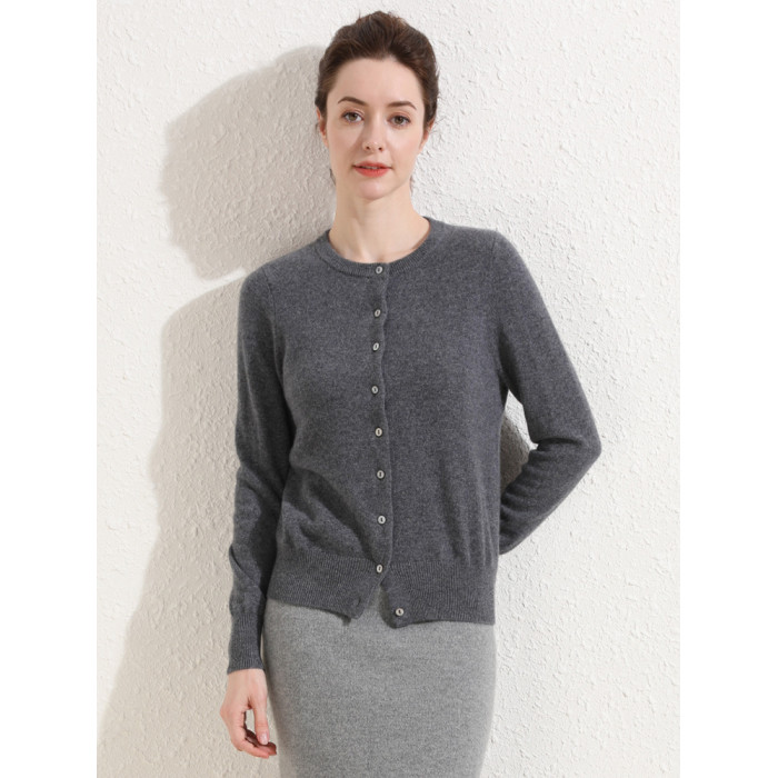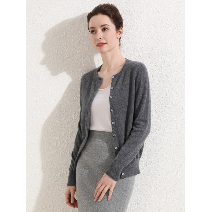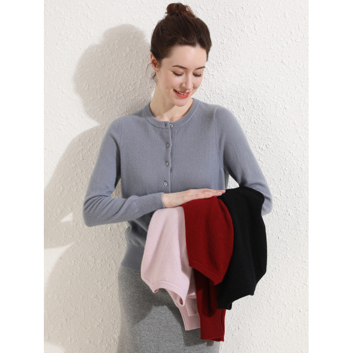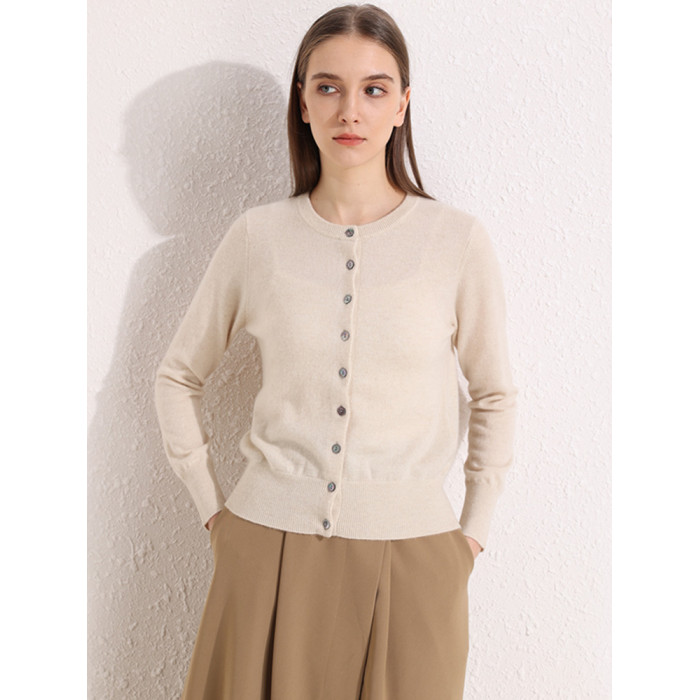 絨典羊絨針織開衫外套女春秋款圓領100純羊絨打底衫寬松軟糯毛衣
