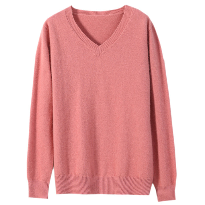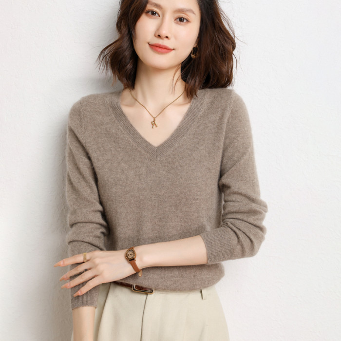 秋冬V領羊絨衫女100%純山羊絨修身套頭毛衣雞心領純色針織打底衫