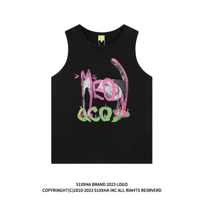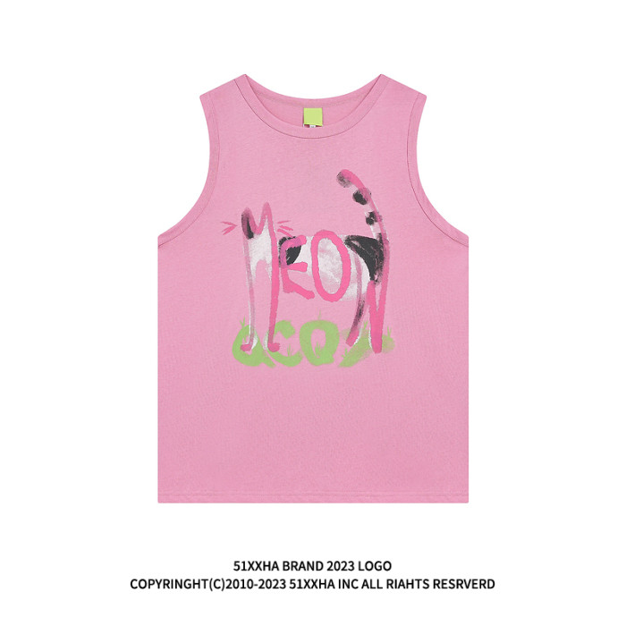 51嘻哈多巴胺甜辣趣味印花情侶坎肩背心男女夏季潮牌運動無袖T恤