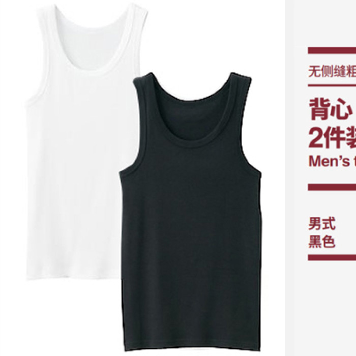 2件裝 日式無印品質男士純棉汗背心細羅紋無側縫運動背心無袖打底