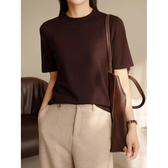 福利款 無補 女士全羊毛針織衫 圓領五分袖打底衫 中袖 春秋款
