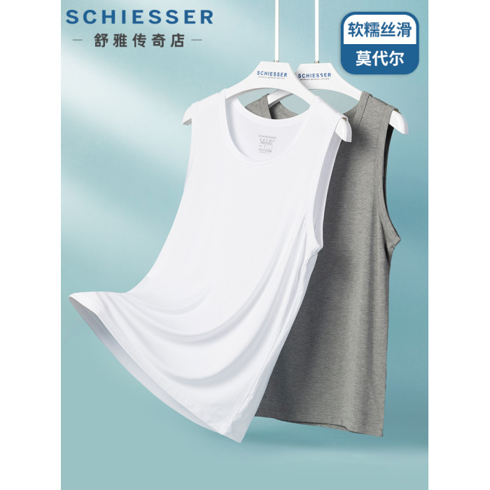舒雅男士背心天絲莫代爾新款圓領打底上衣純色修身運動汗衫