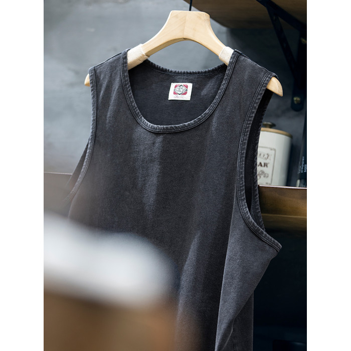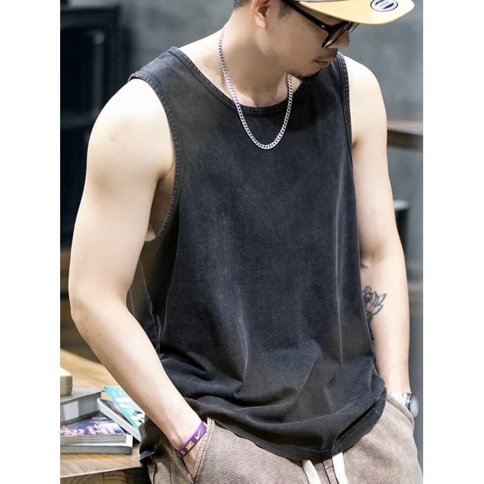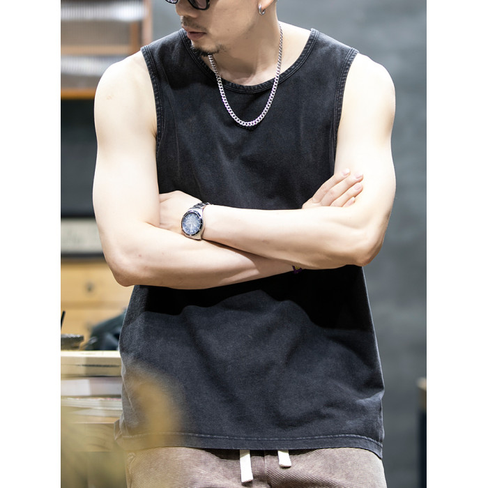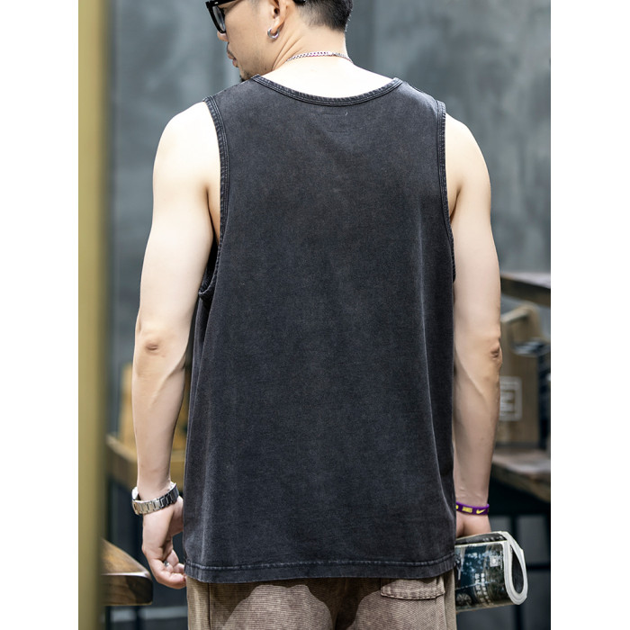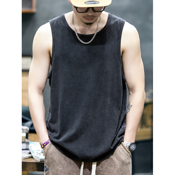 230g純棉男士背心夏季美式復古水洗無袖t恤男運動健身坎肩汗衫潮