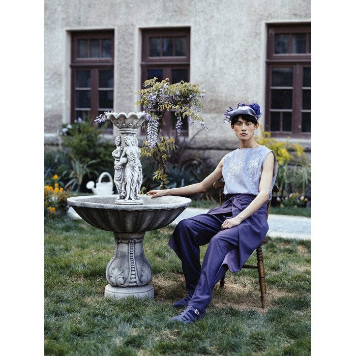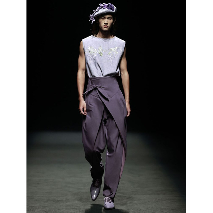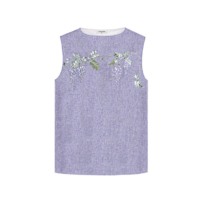 蔓野 紫藤刺綉一字領寬松夏季無袖T恤背心 山穀少年原創設計男裝