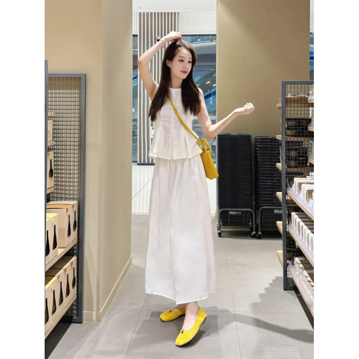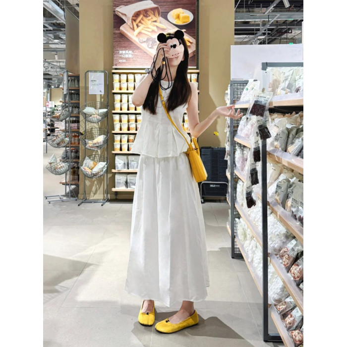 2025夏季新款巨好看的白色連衣裙子女今年流行爆款絕美漂亮小套裝