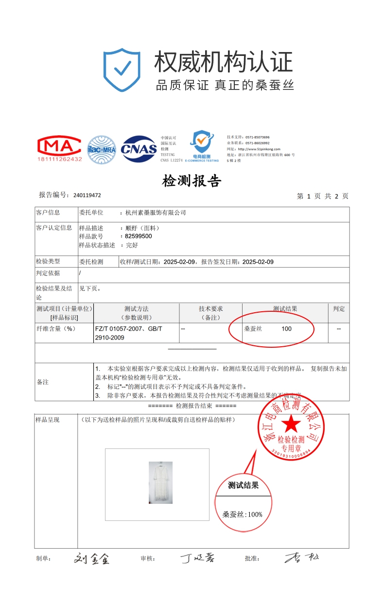 面料 | 桑蠶絲 |