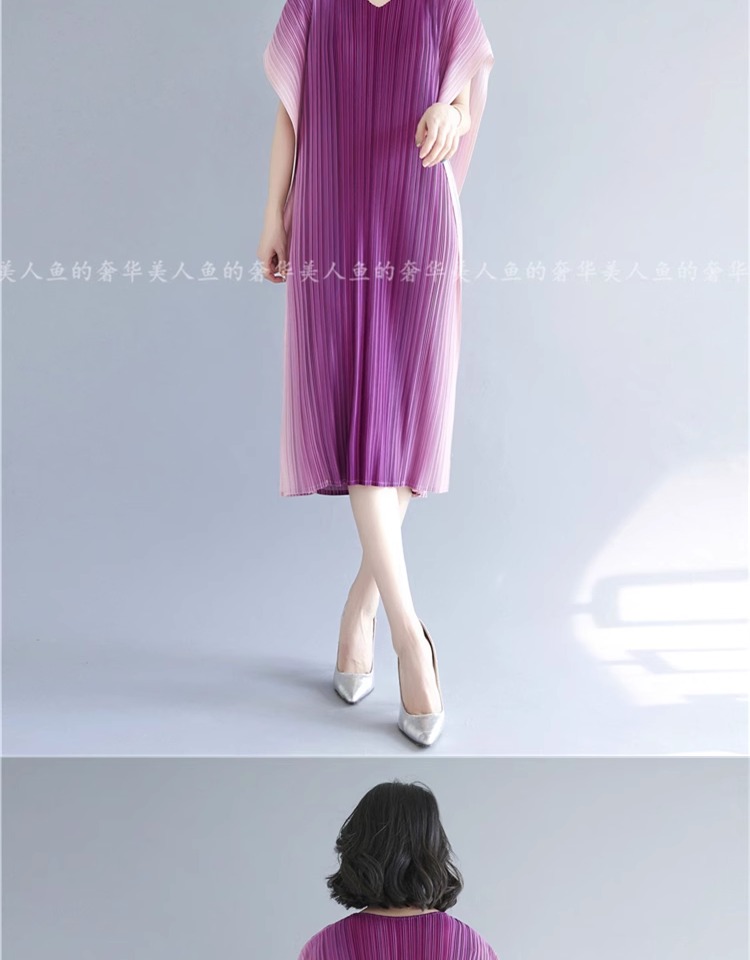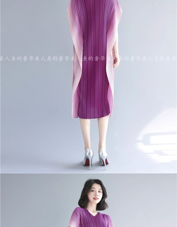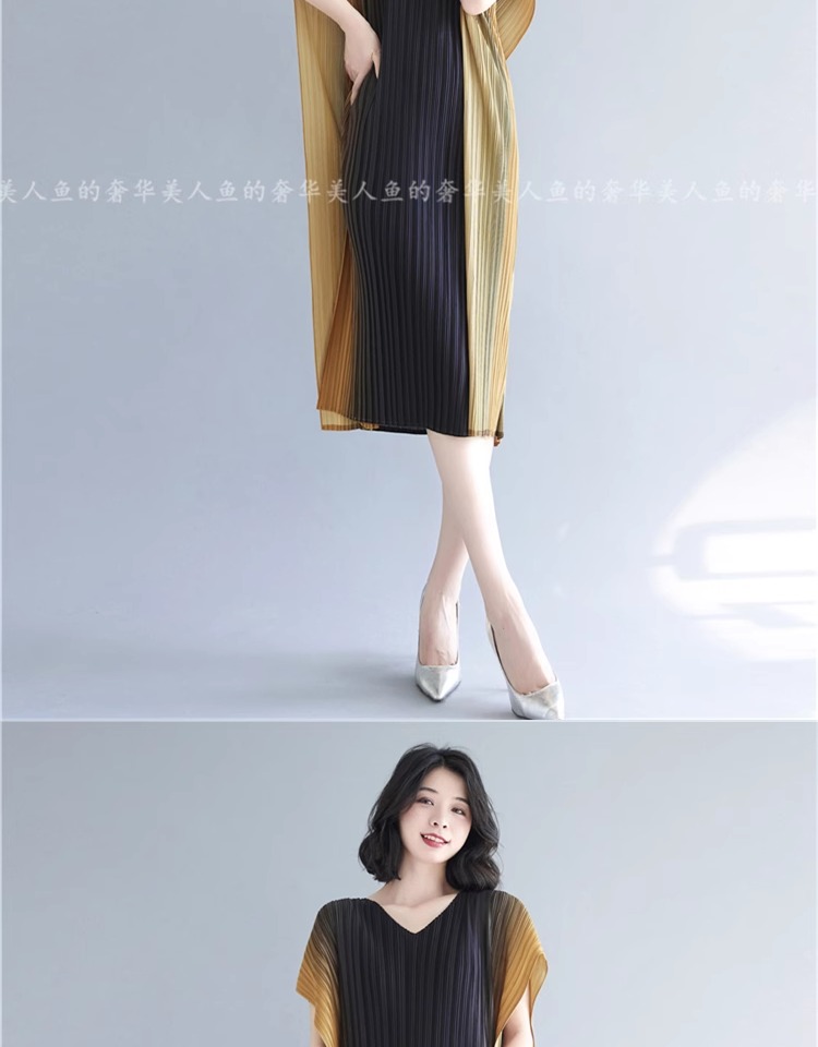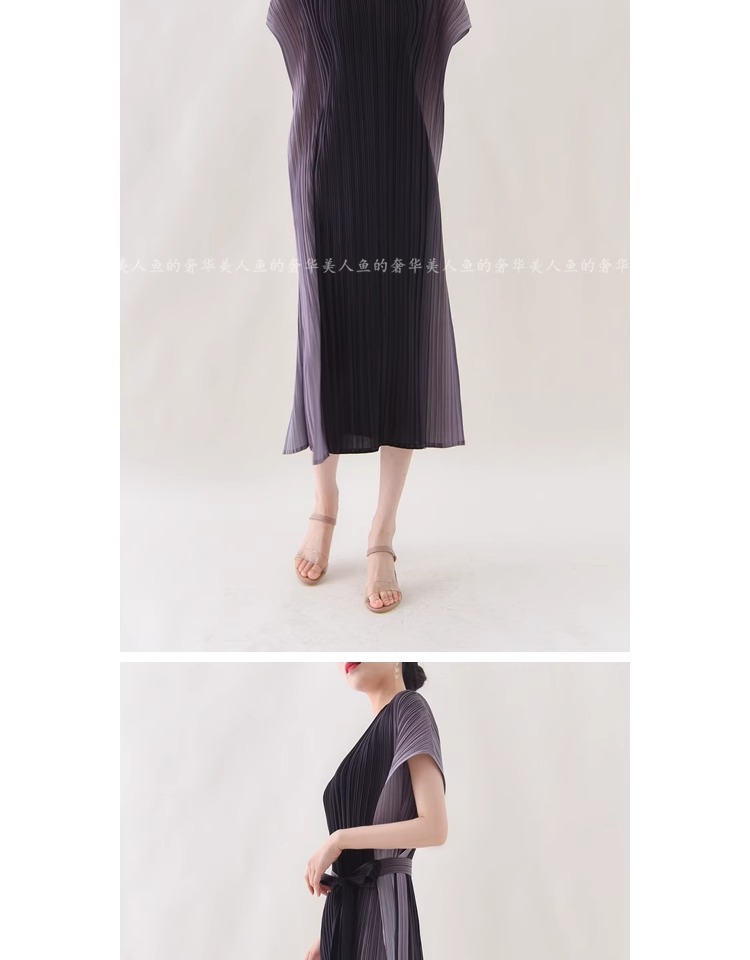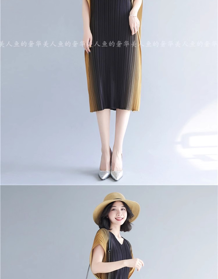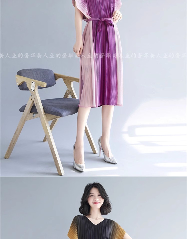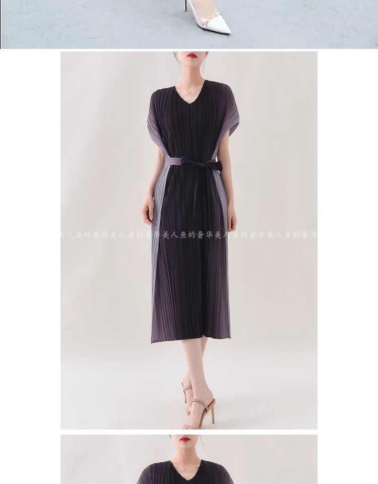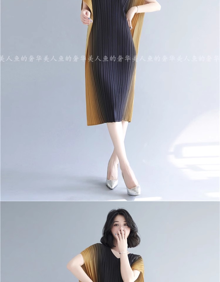 三宅褶皺2025新款夏季大碼減齡顯瘦裙子遮肚子氣質高級感連衣裙女