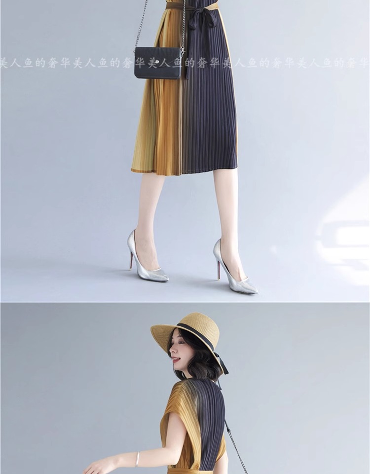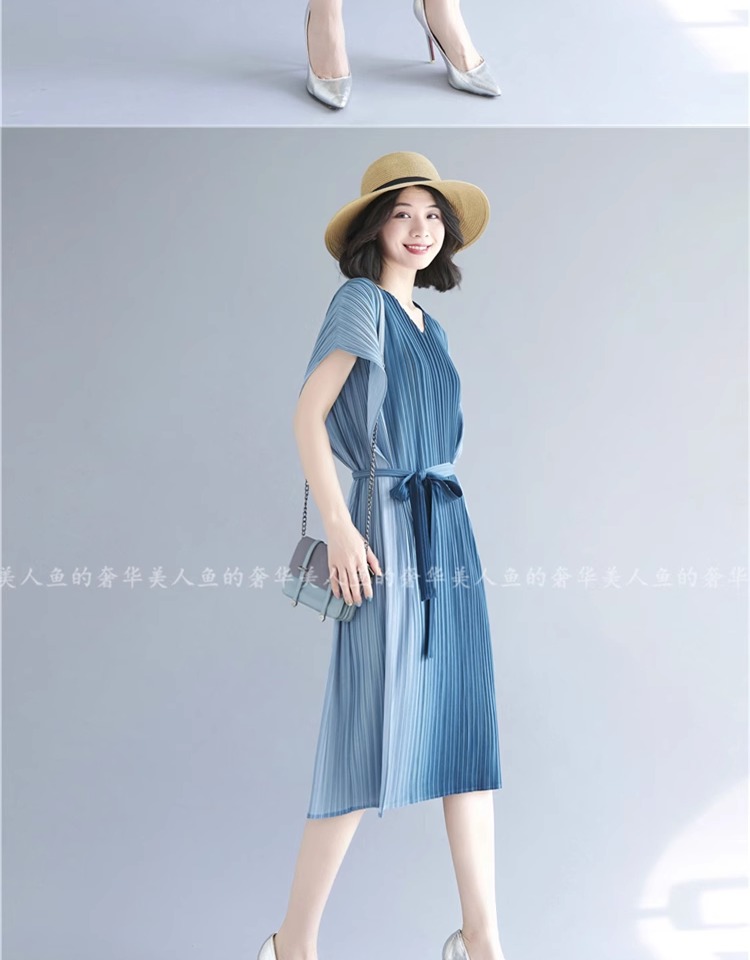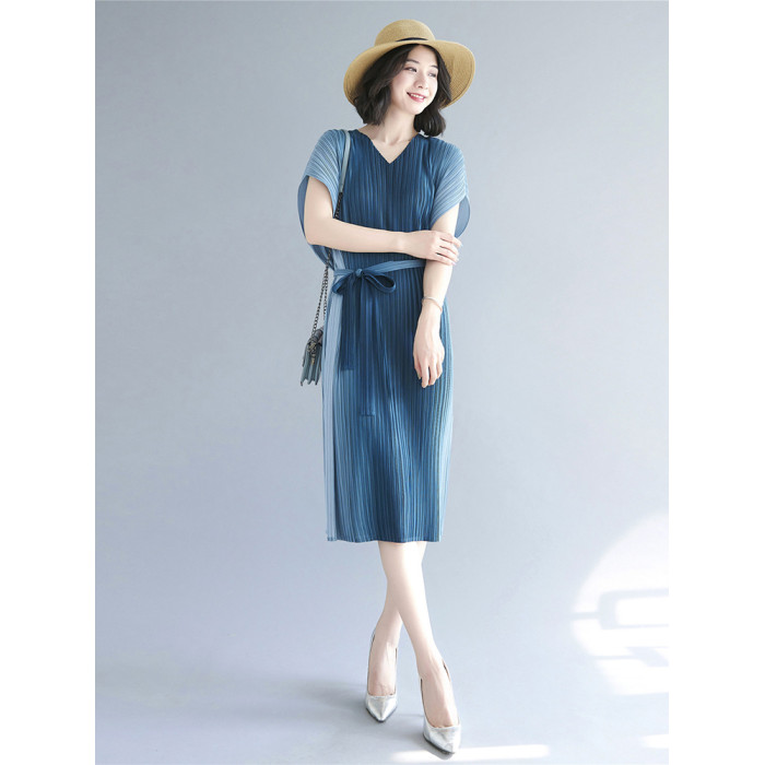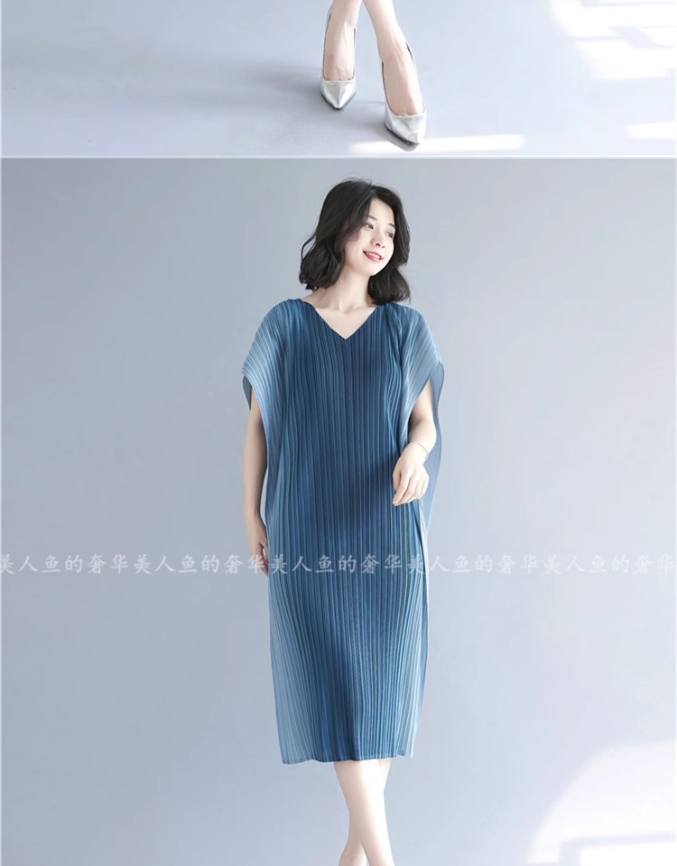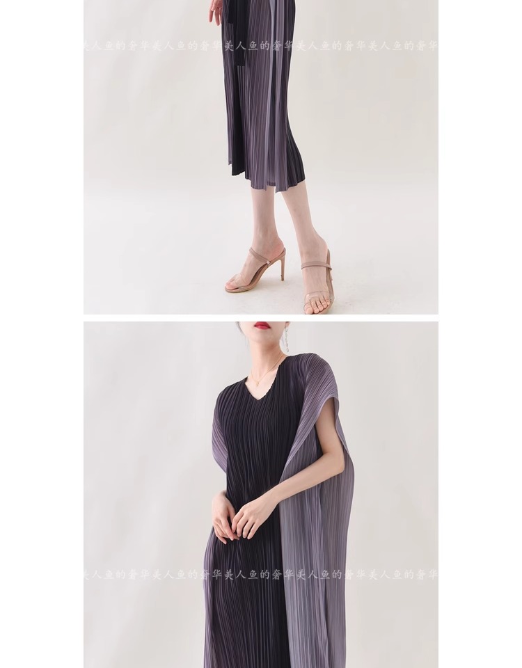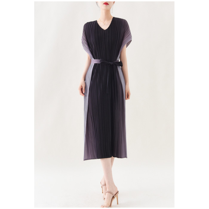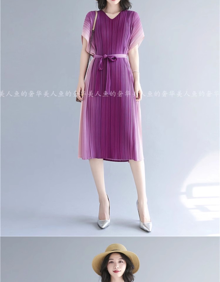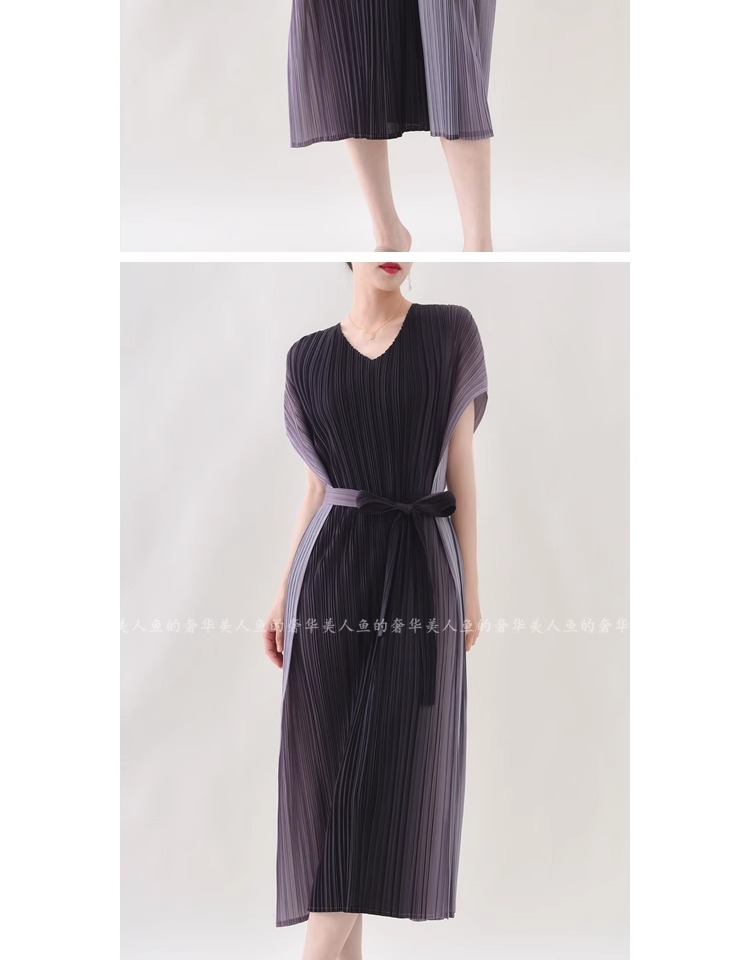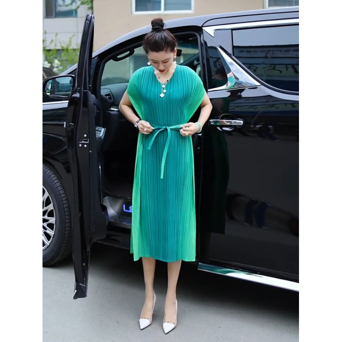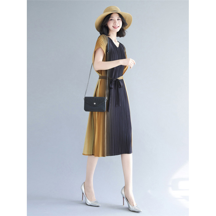 三宅褶皺2025新款夏季大碼減齡顯瘦裙子遮肚子氣質高級感連衣裙女