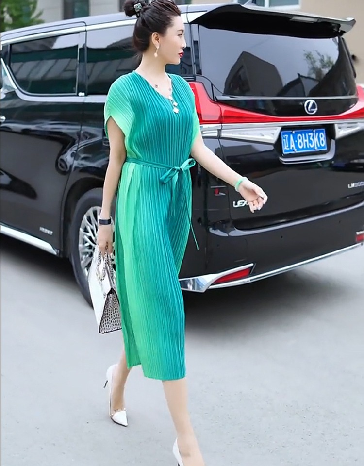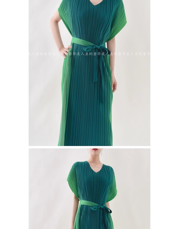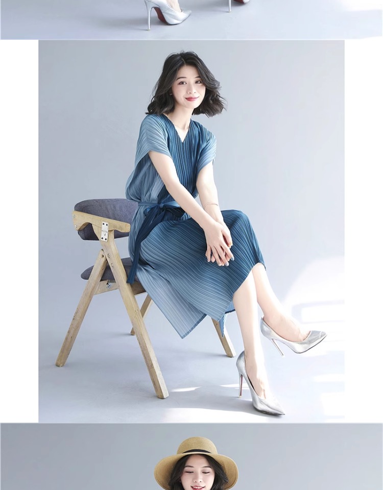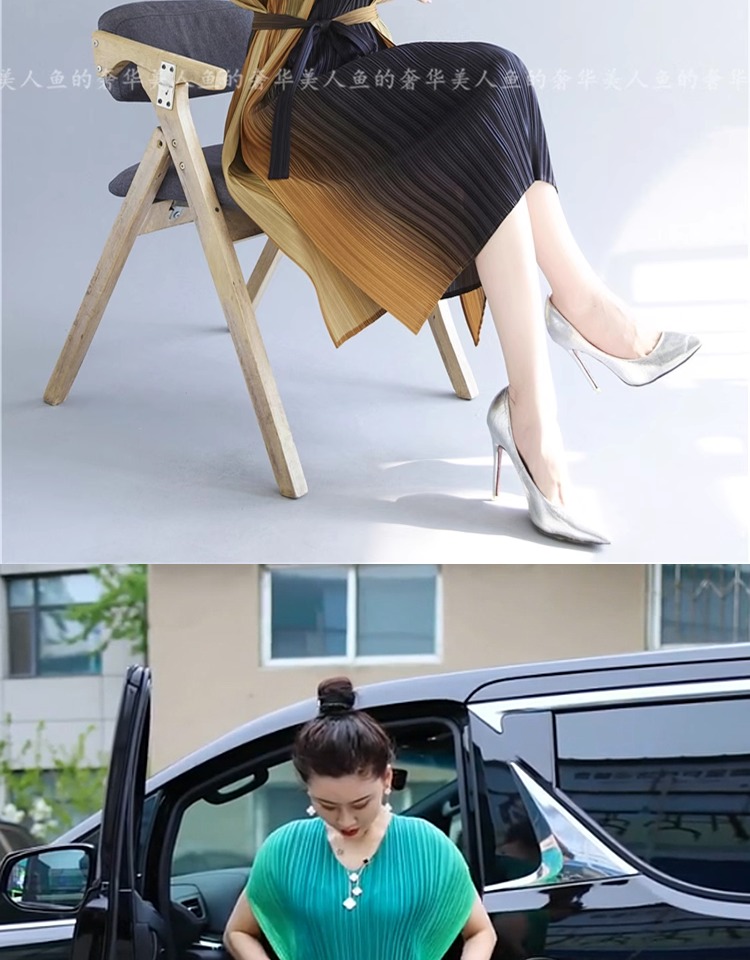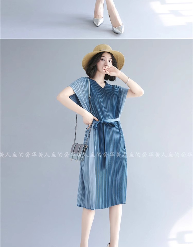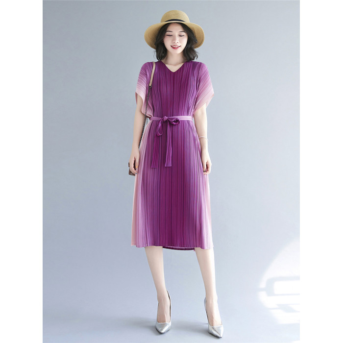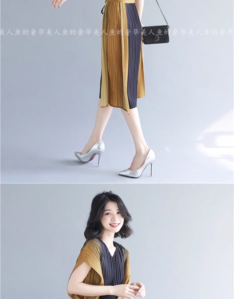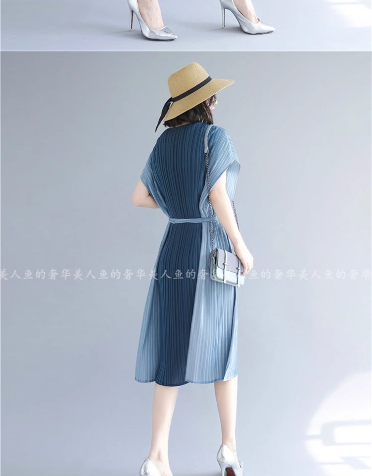 三宅褶皺2025新款夏季大碼減齡顯瘦裙子遮肚子氣質高級感連衣裙女