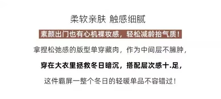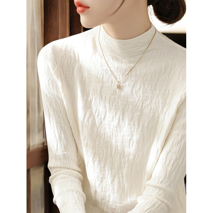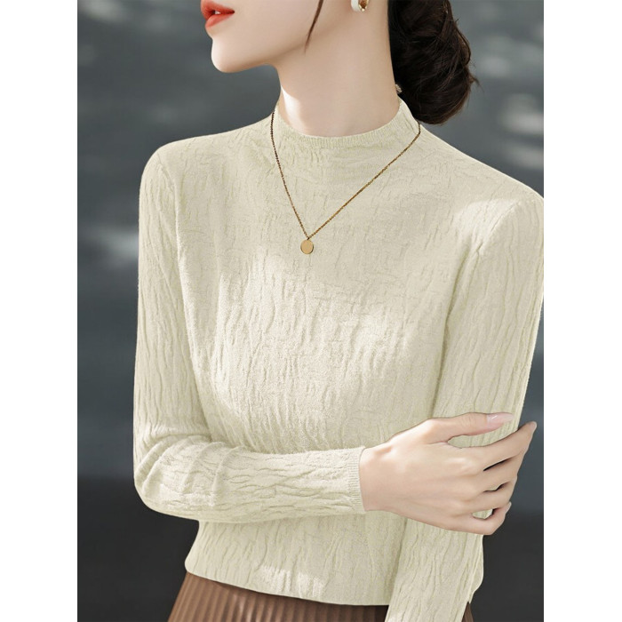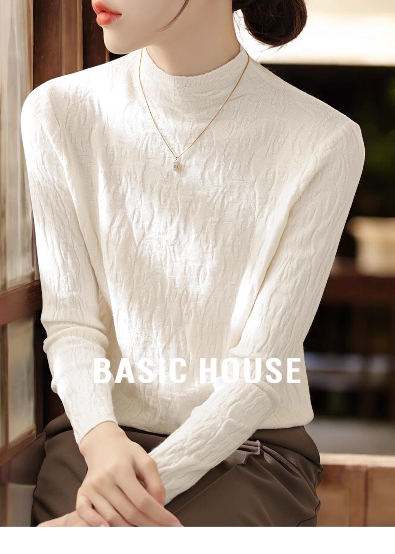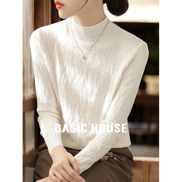 Basic House/百家好米白色半高領針織打底衫女秋季高級感內搭上衣
