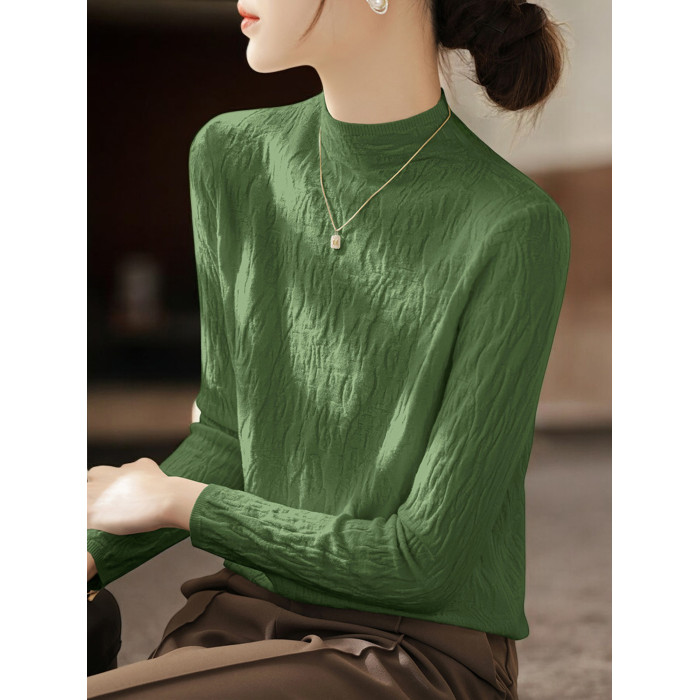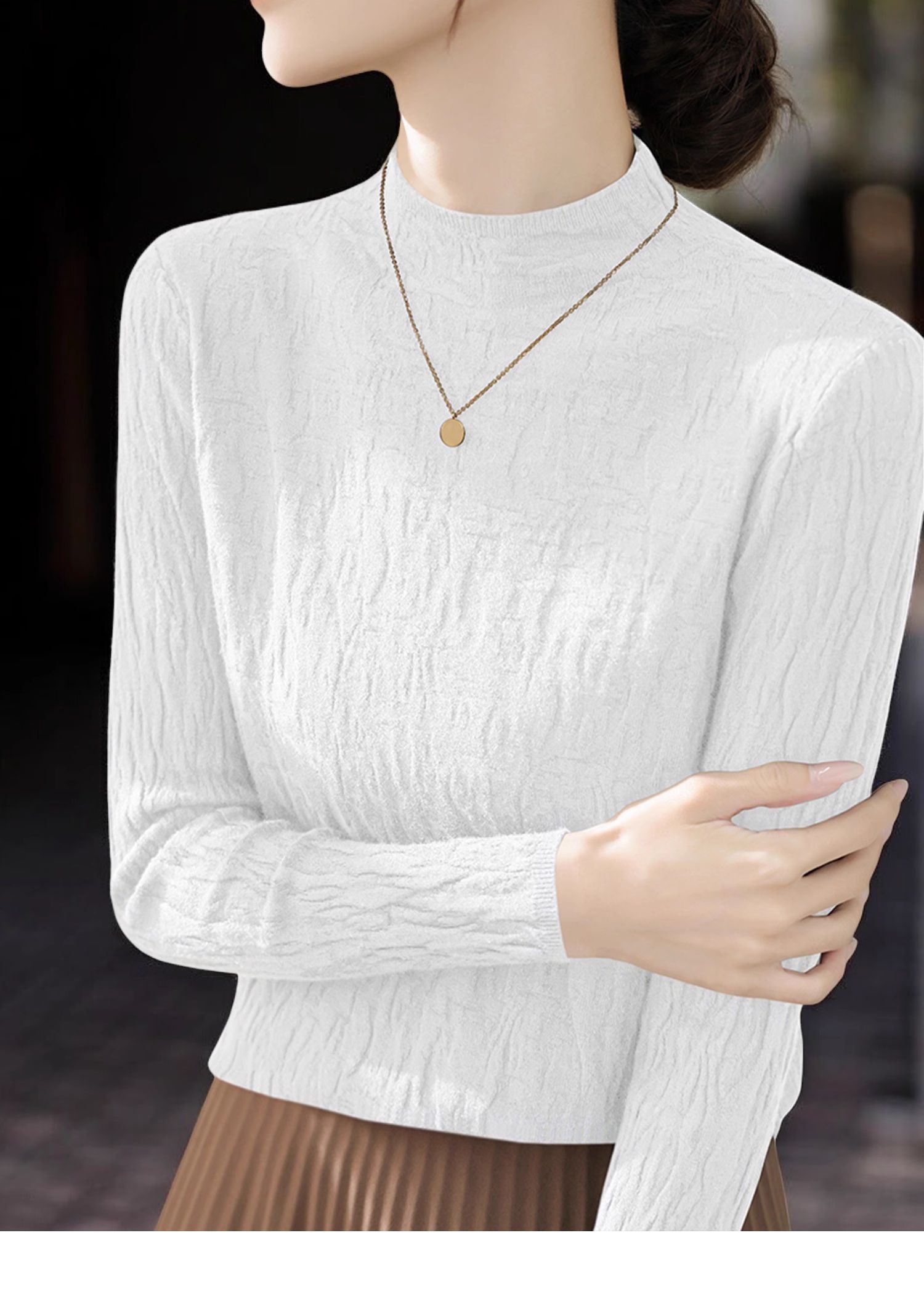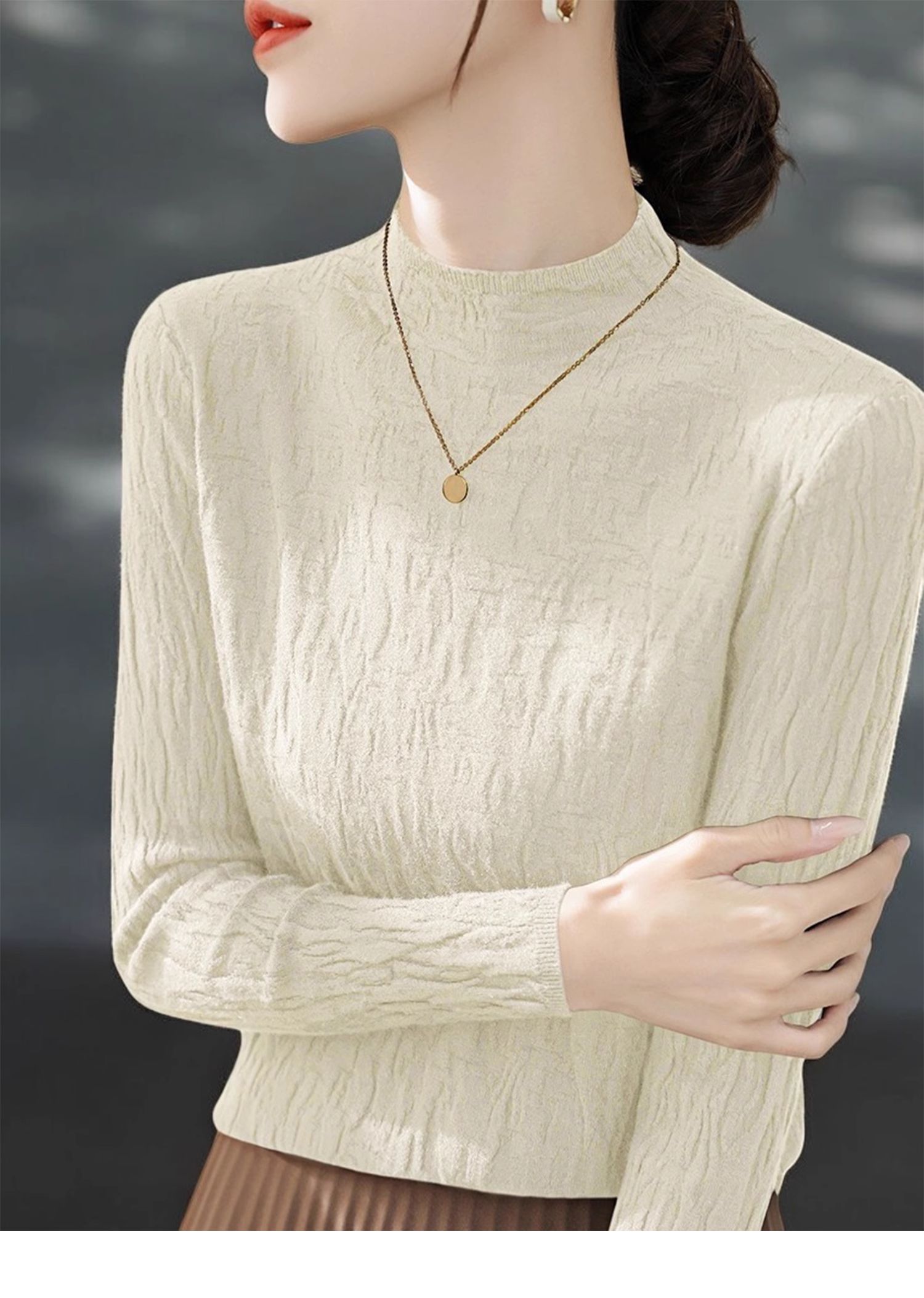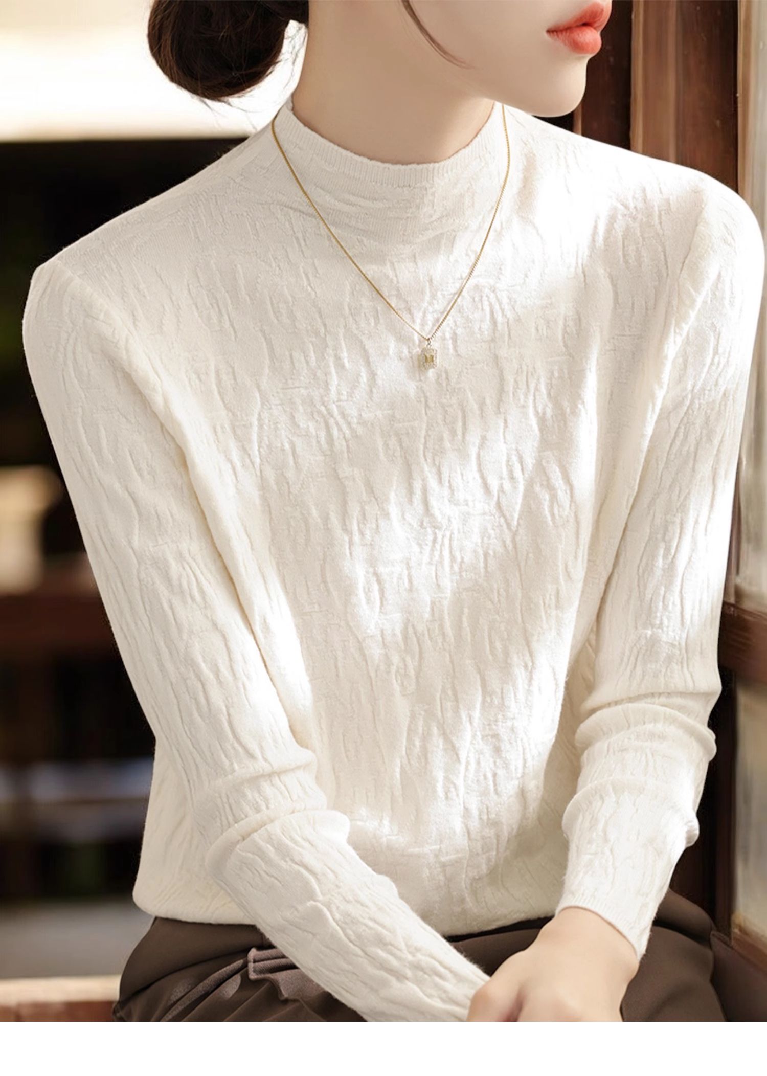 Basic House/百家好米白色半高領針織打底衫女秋季高級感內搭上衣