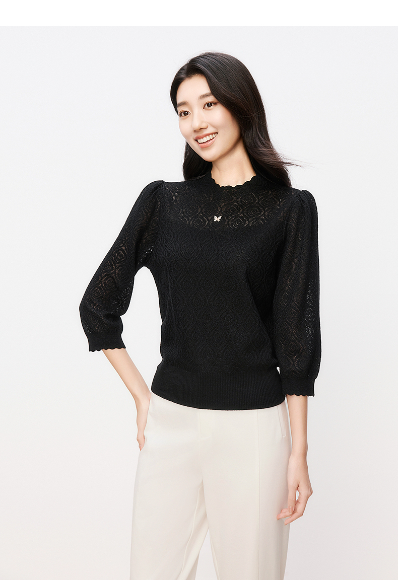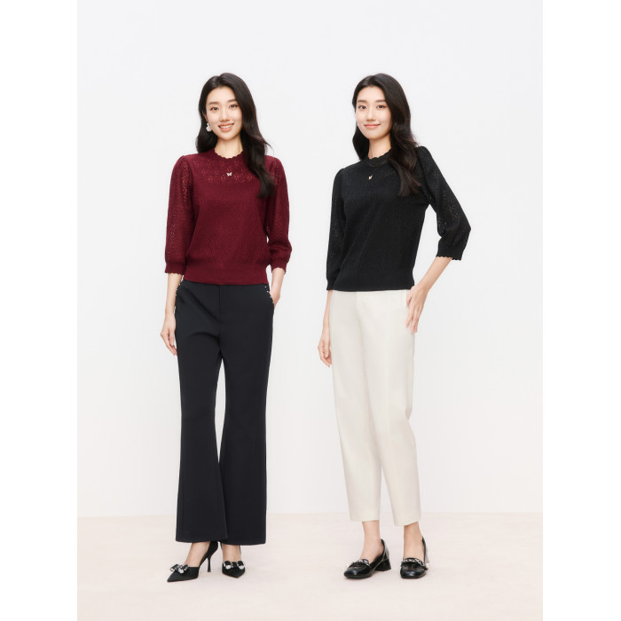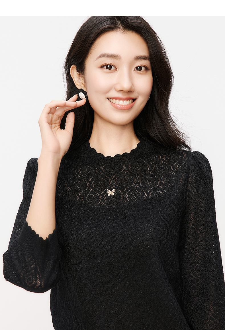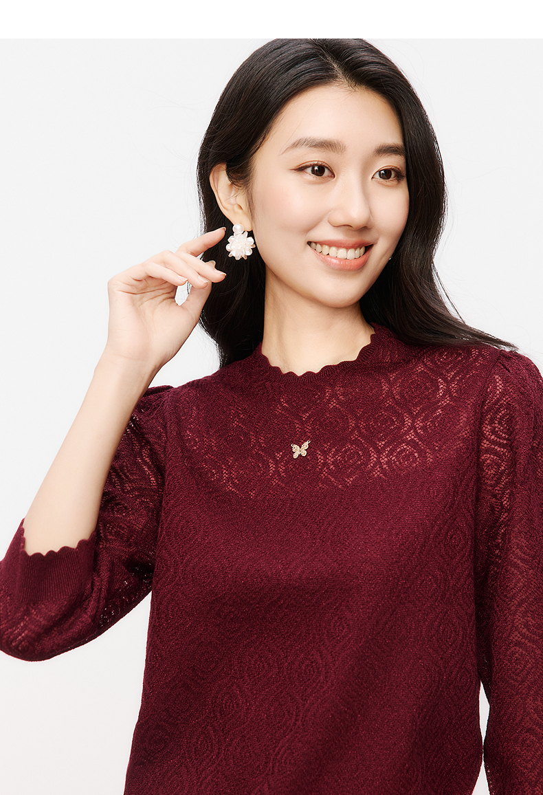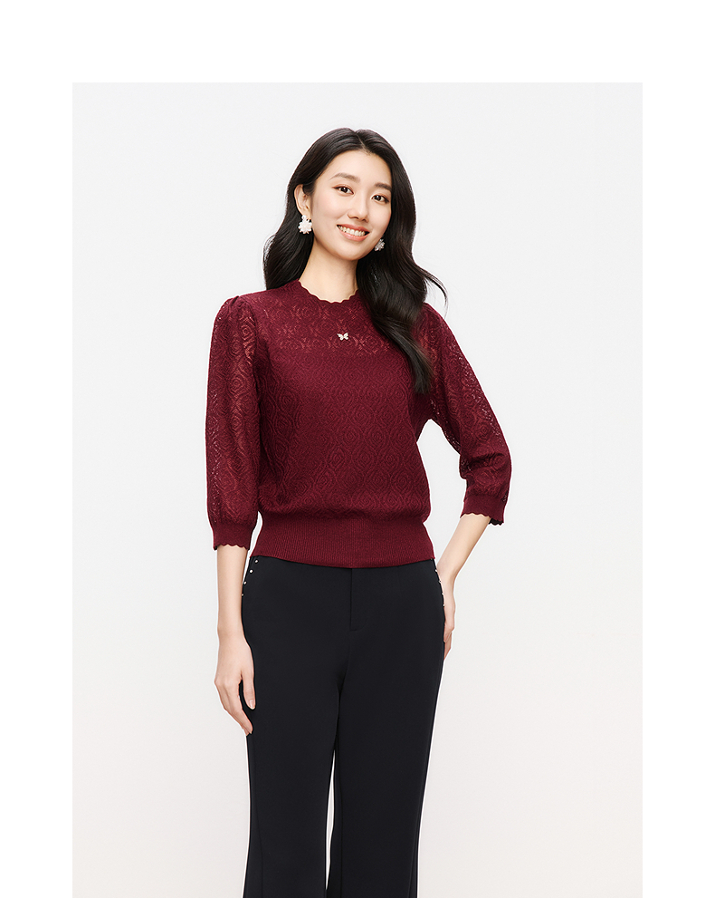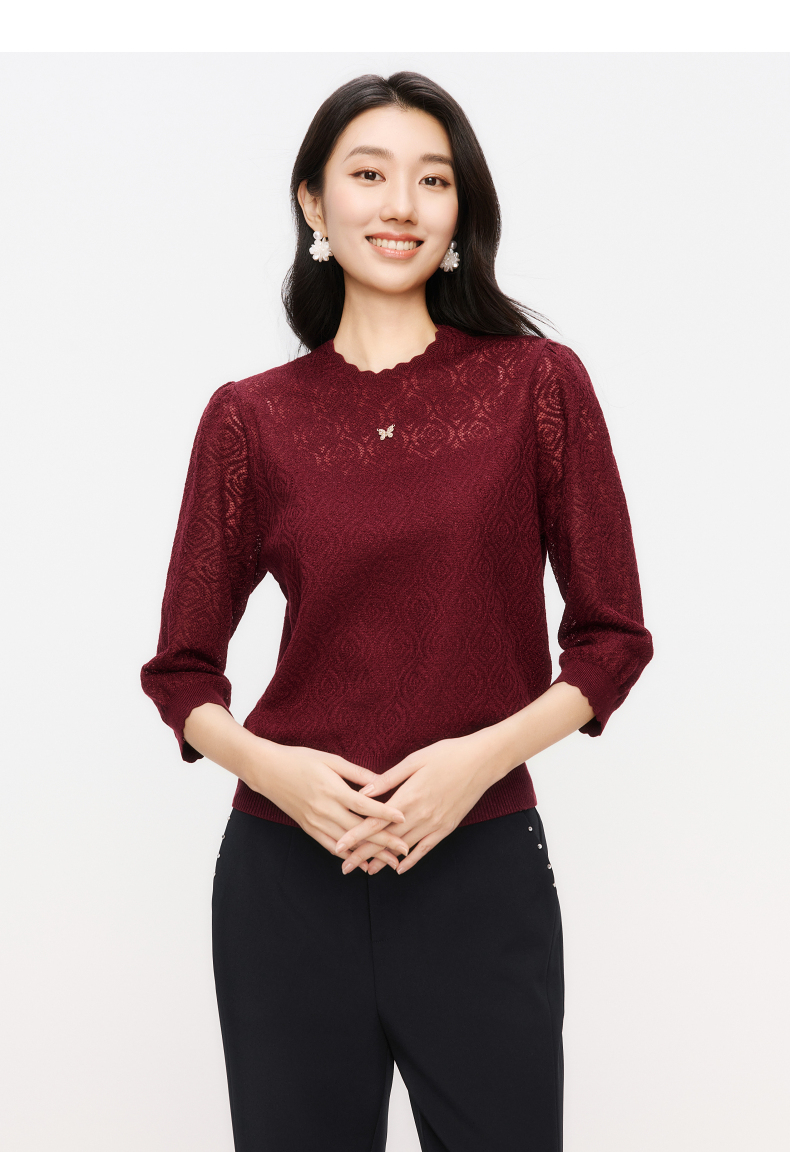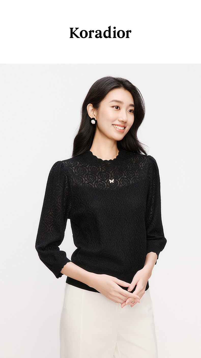 珂萊蒂爾2025春季新款純色提花羊毛衫女通勤針織衫打底衫毛衣薄款