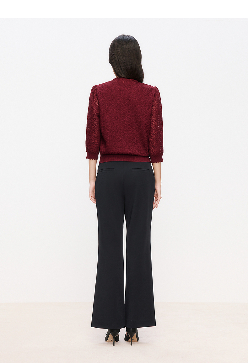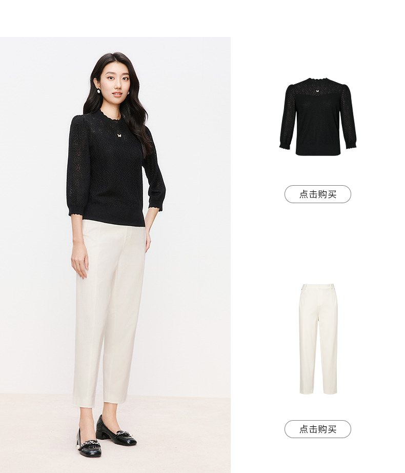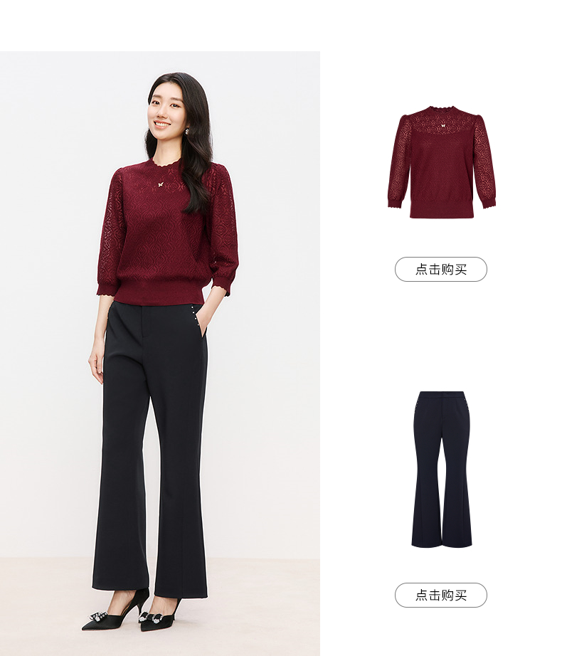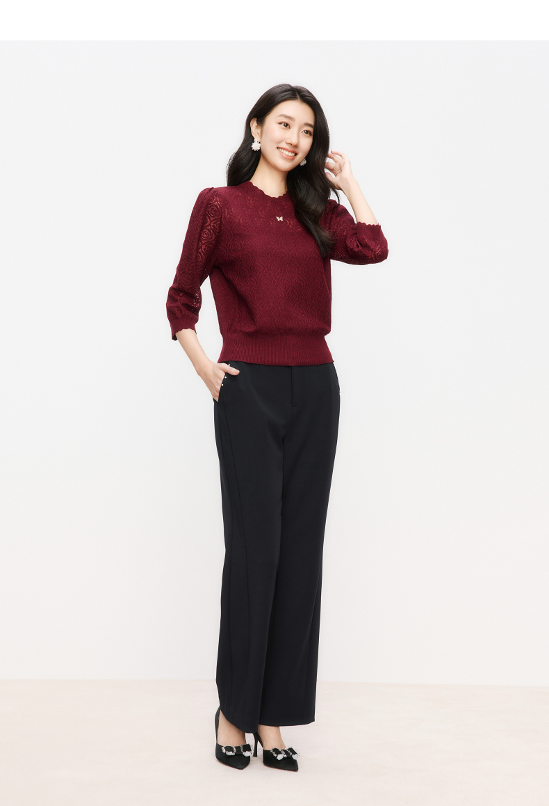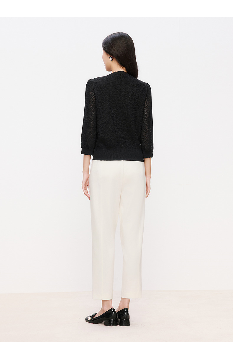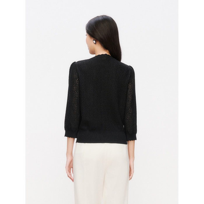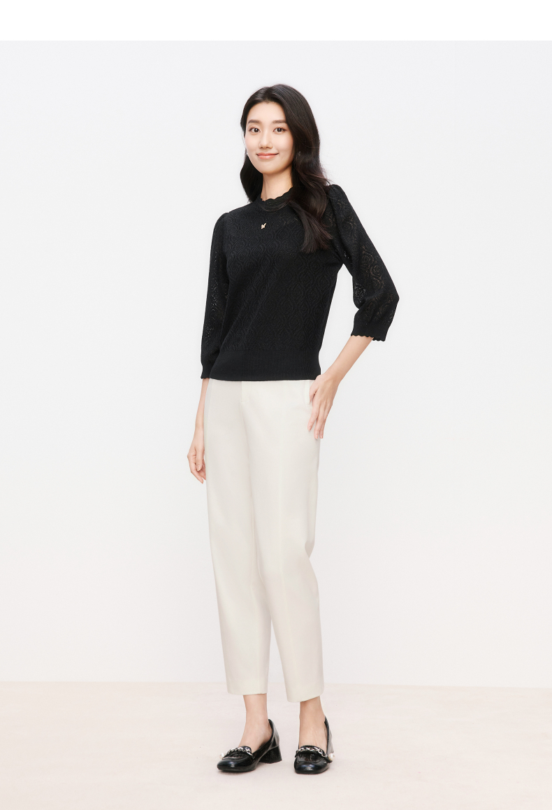 珂萊蒂爾2025春季新款純色提花羊毛衫女通勤針織衫打底衫毛衣薄款