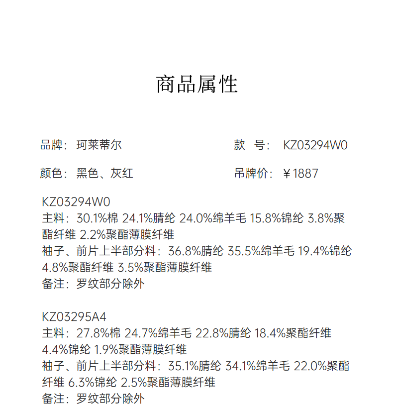 材質成分 棉30.1% 聚丙烯腈纖維(腈綸)24.1% 羊毛24% 聚醯胺纖維(錦綸)15.8% 其他6%
