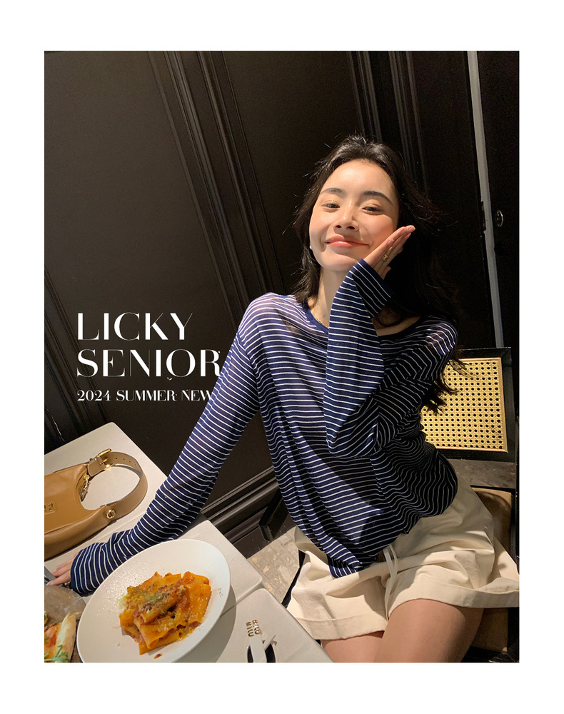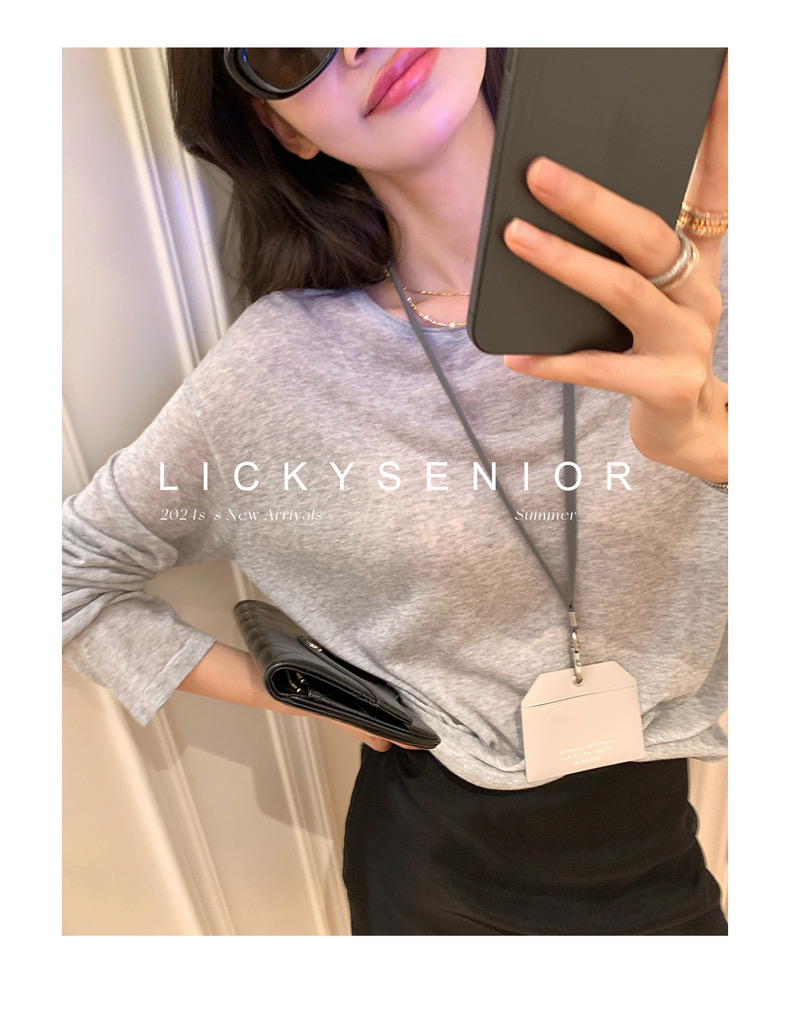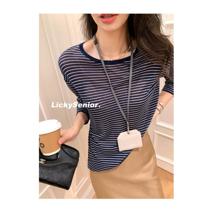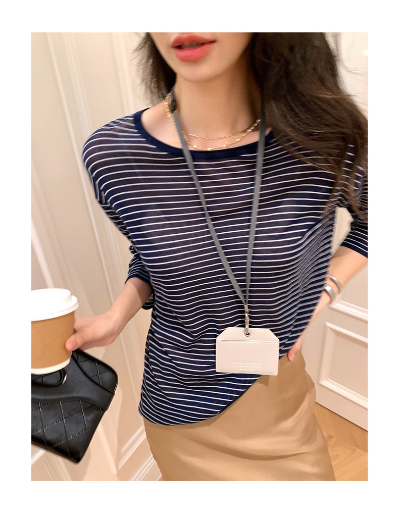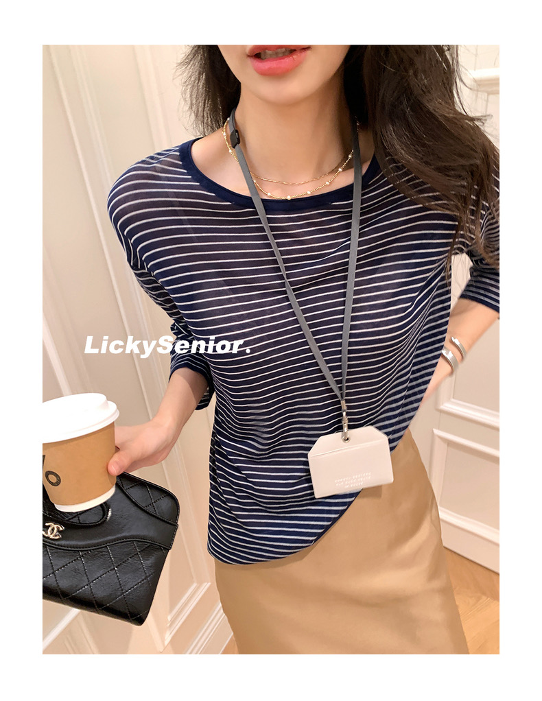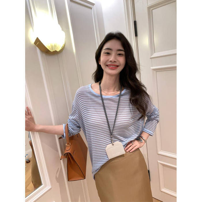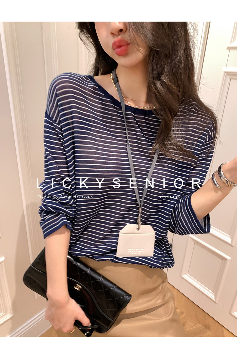 薄款圓領微透超細天絲針織打底衫女寬松紫色防曬衫長袖顯瘦罩衫