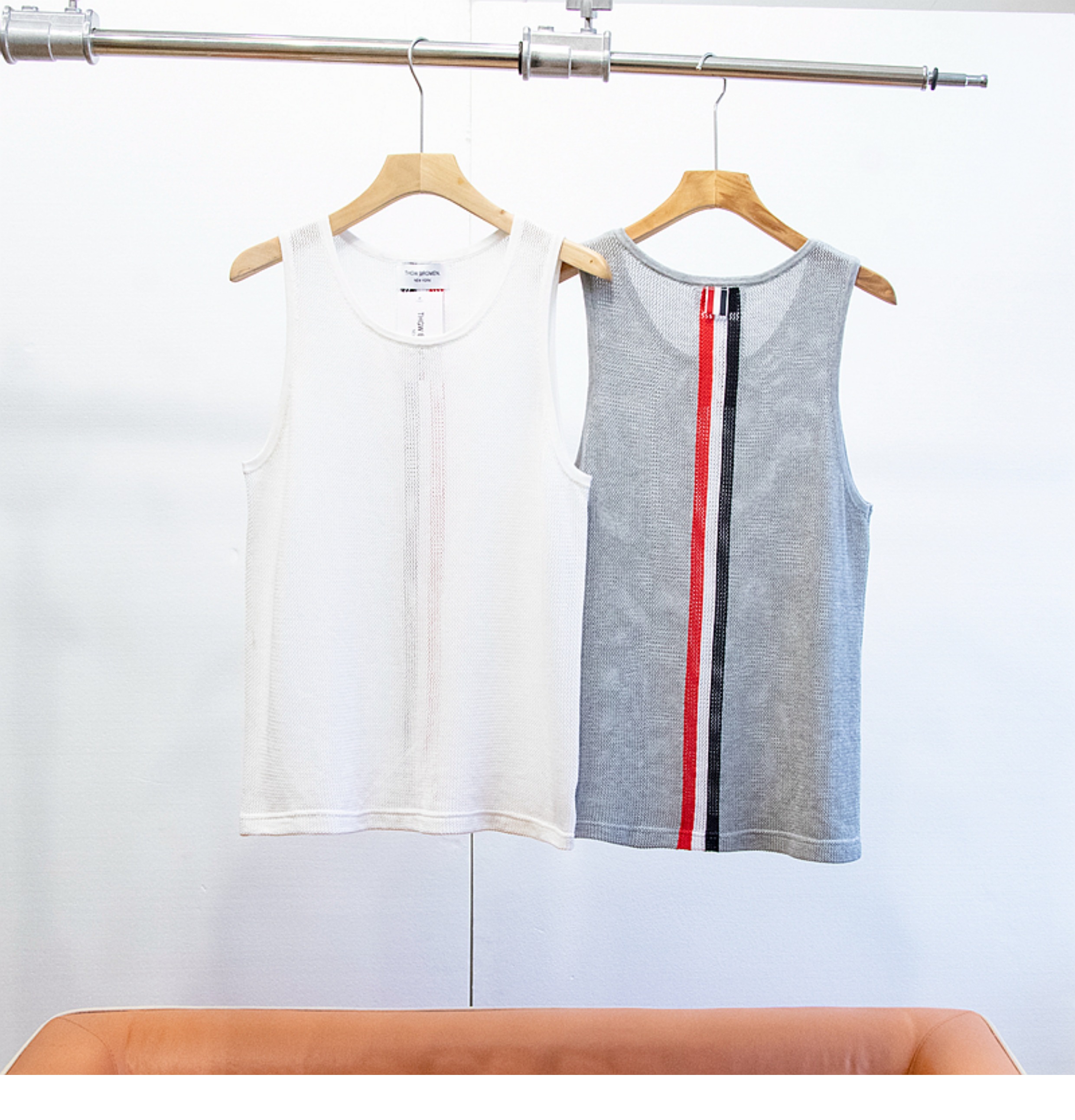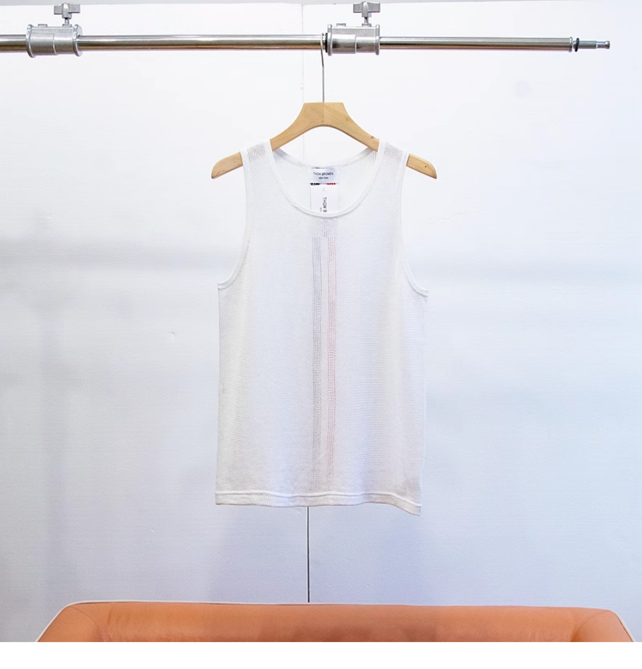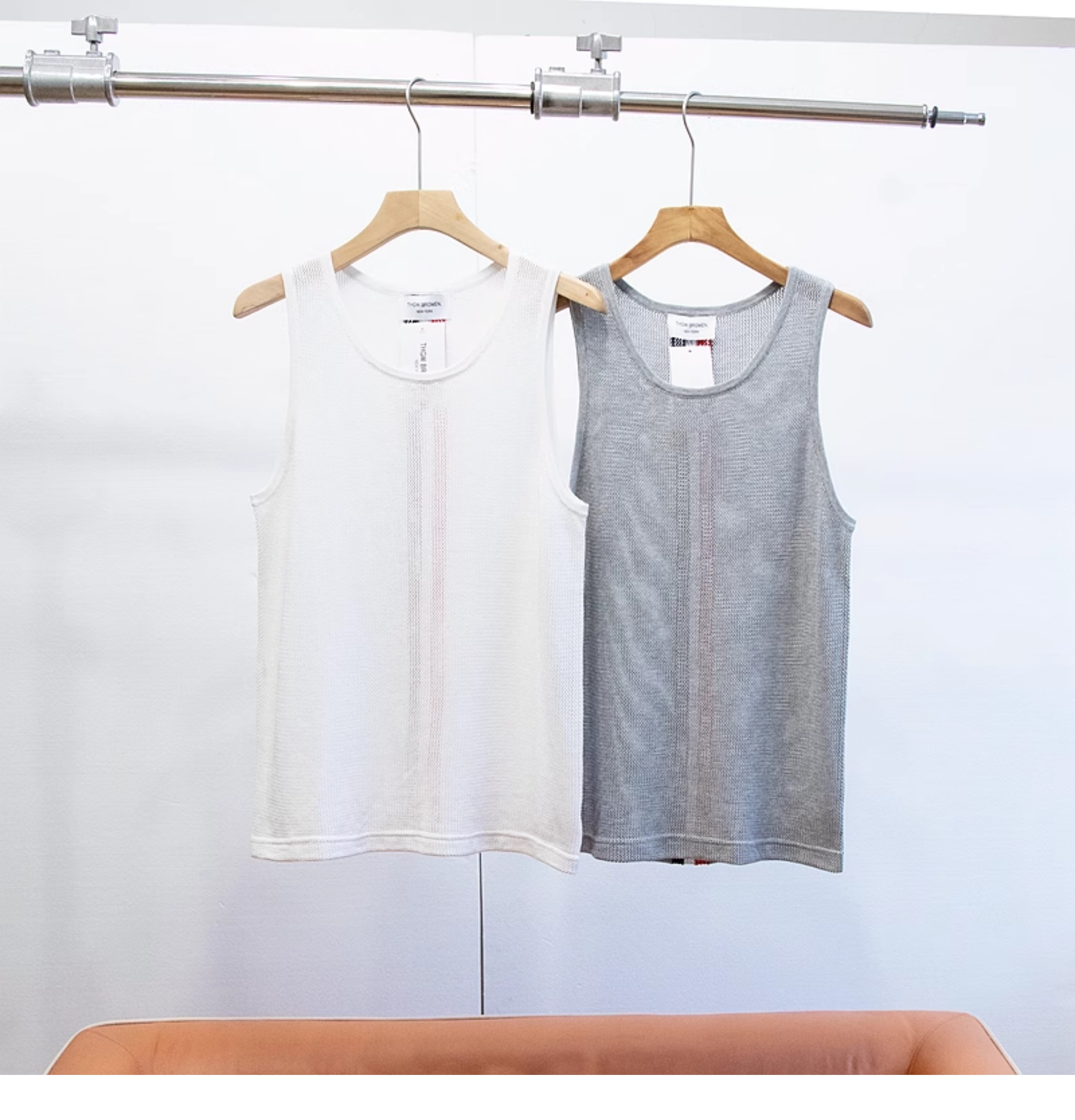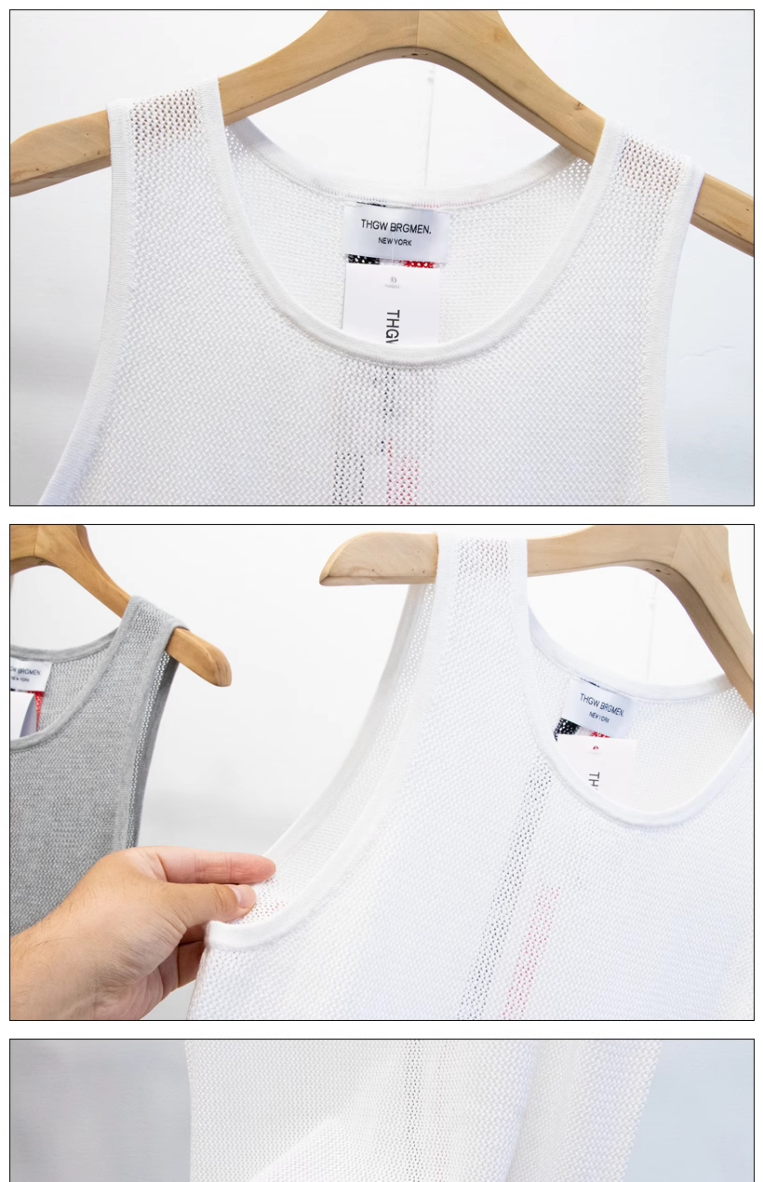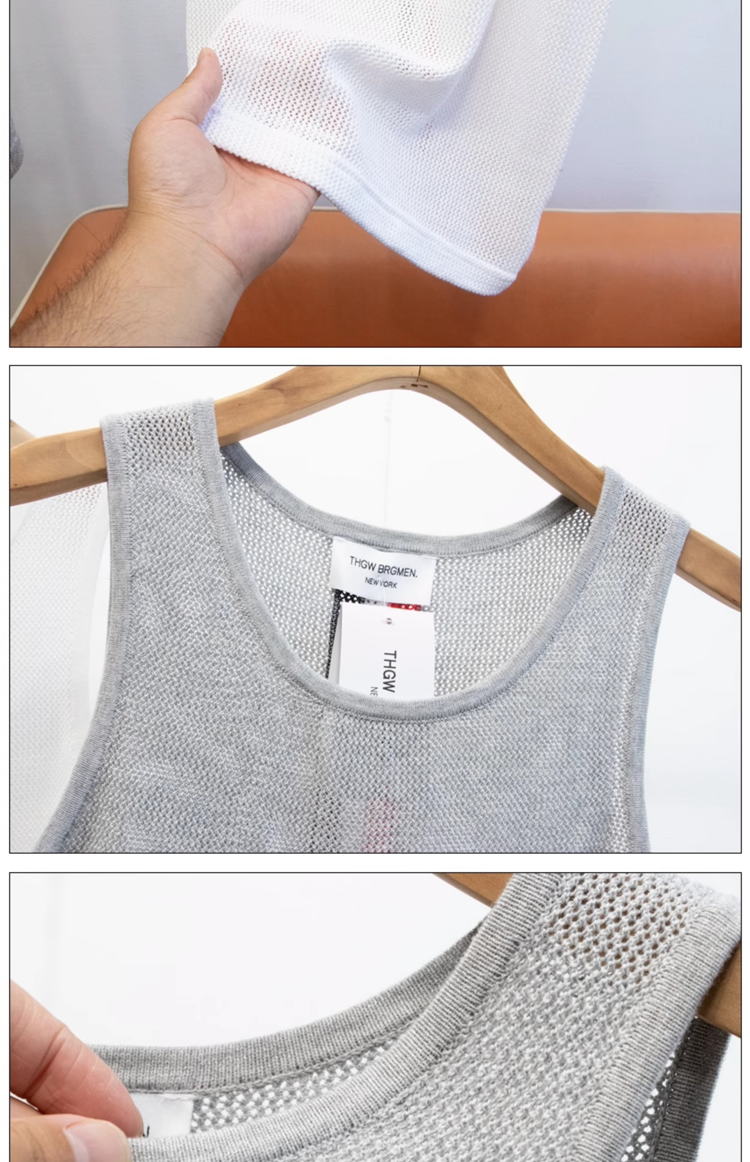 潮款TB背心提花鏤空網眼透氣男女休閒夏季無袖圓領T恤THGWBRGMEN