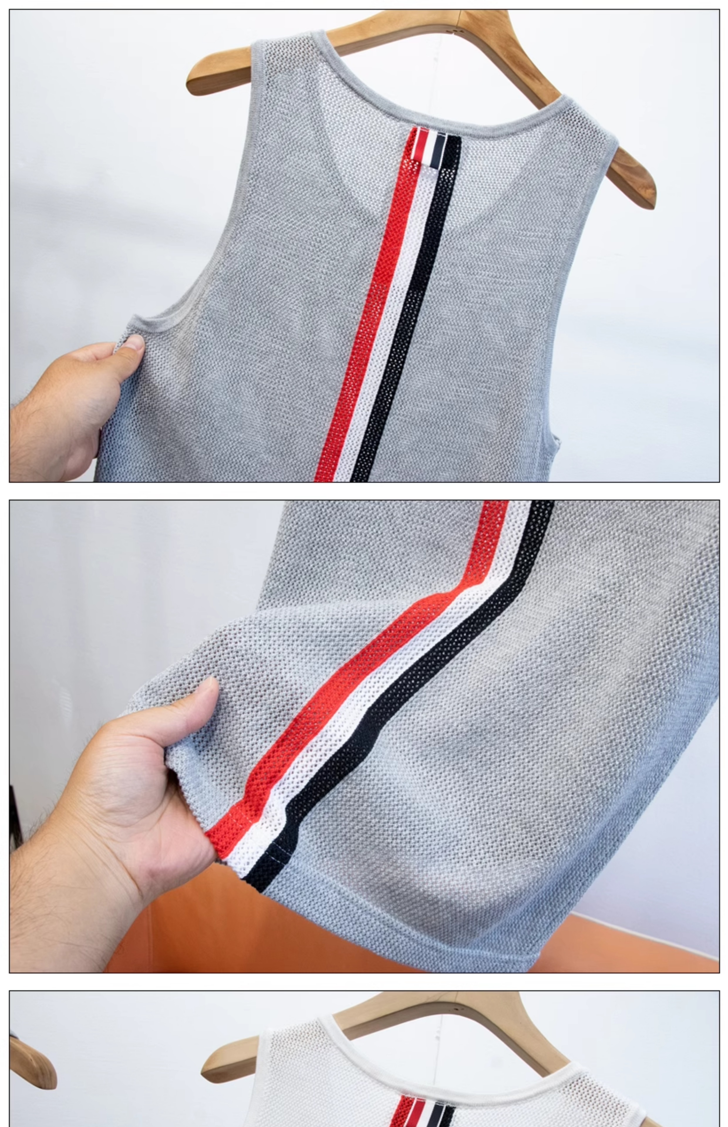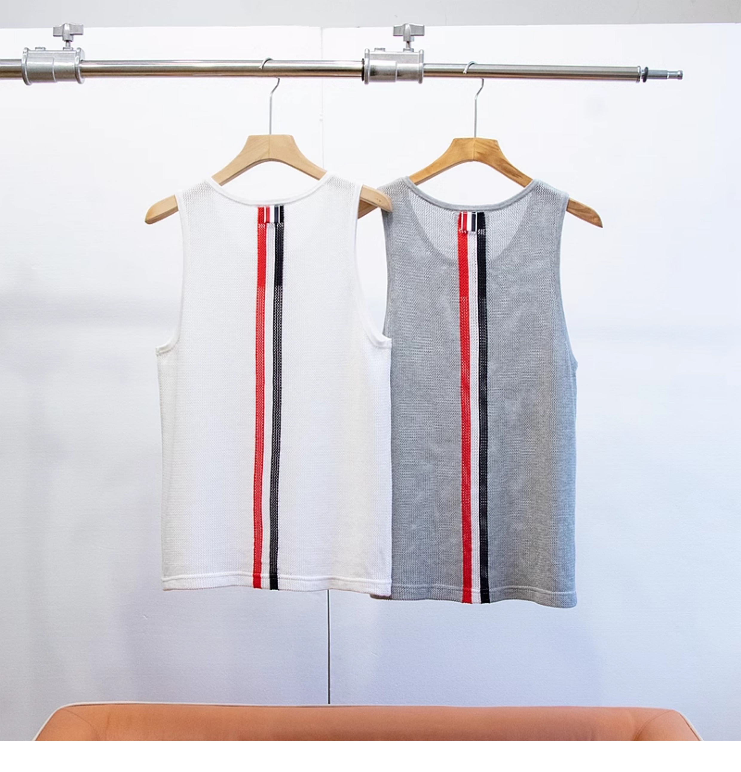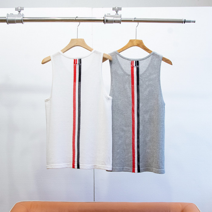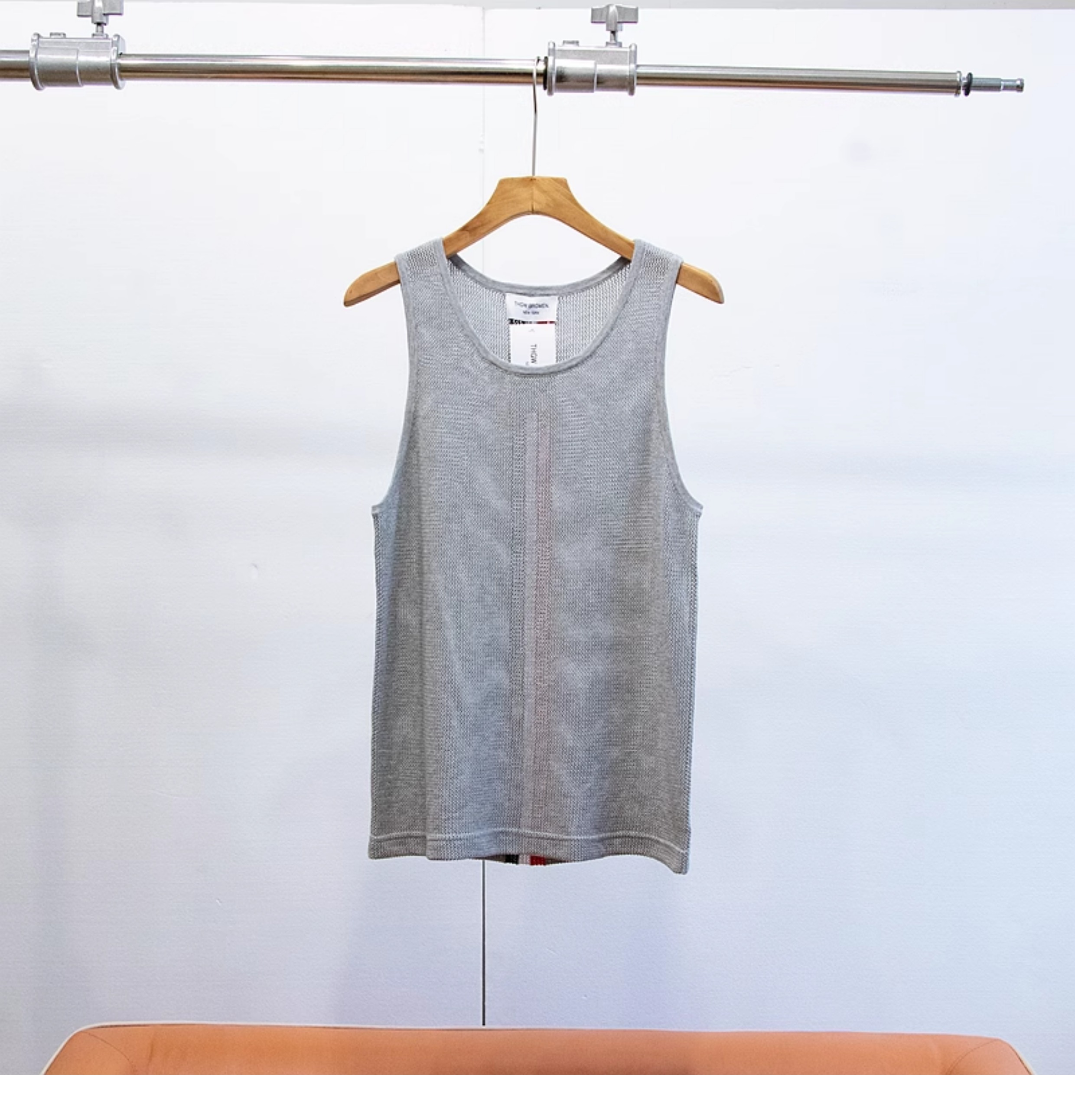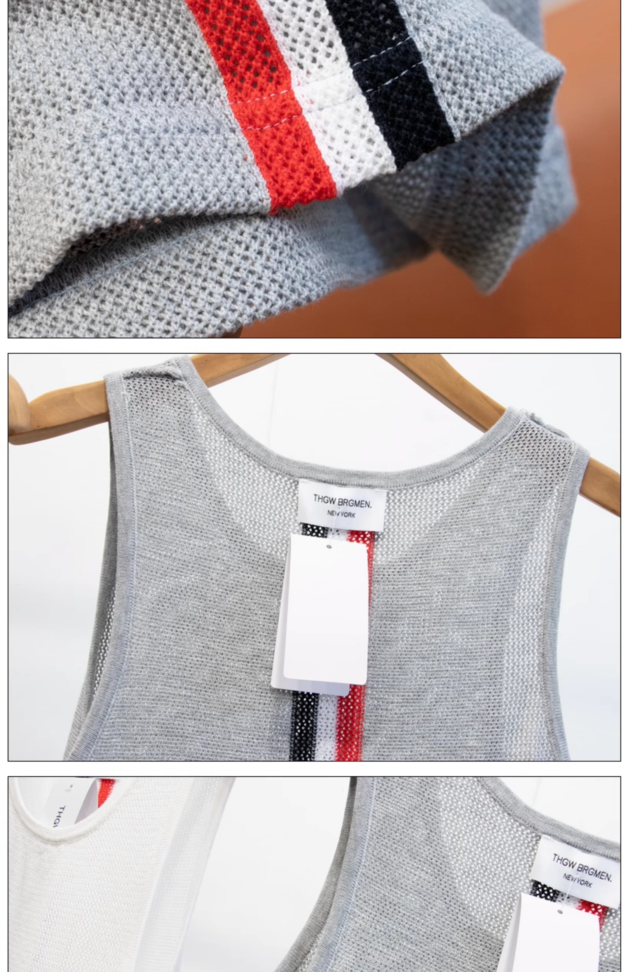 潮款TB背心提花鏤空網眼透氣男女休閒夏季無袖圓領T恤THGWBRGMEN
