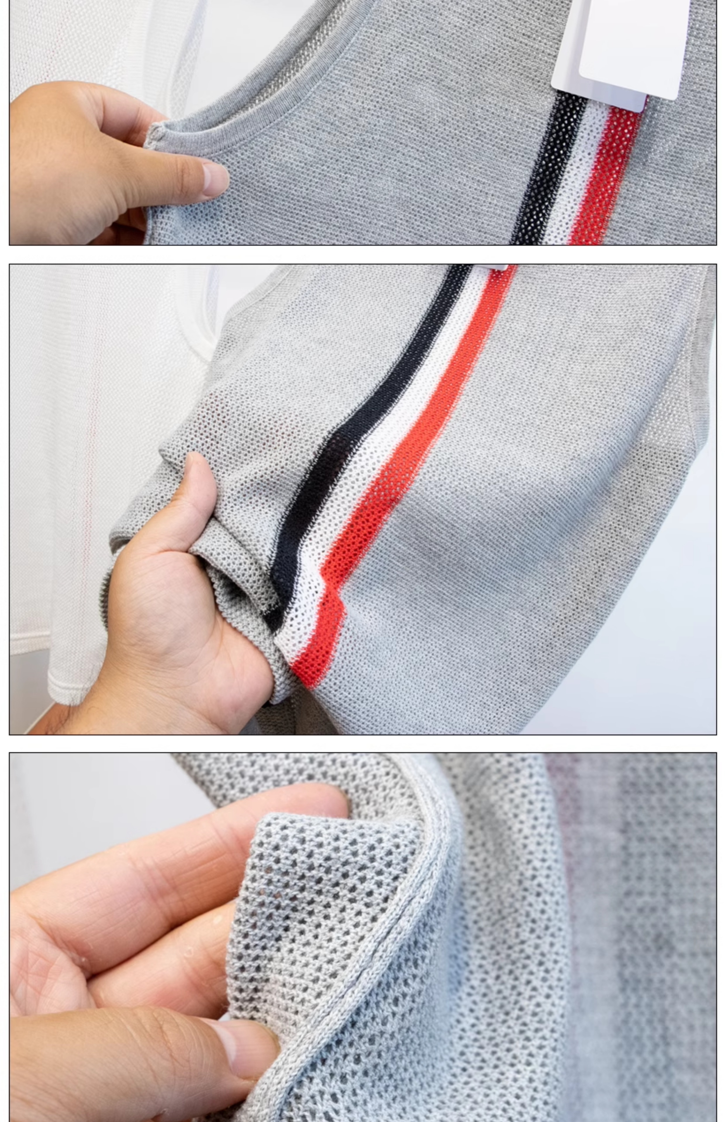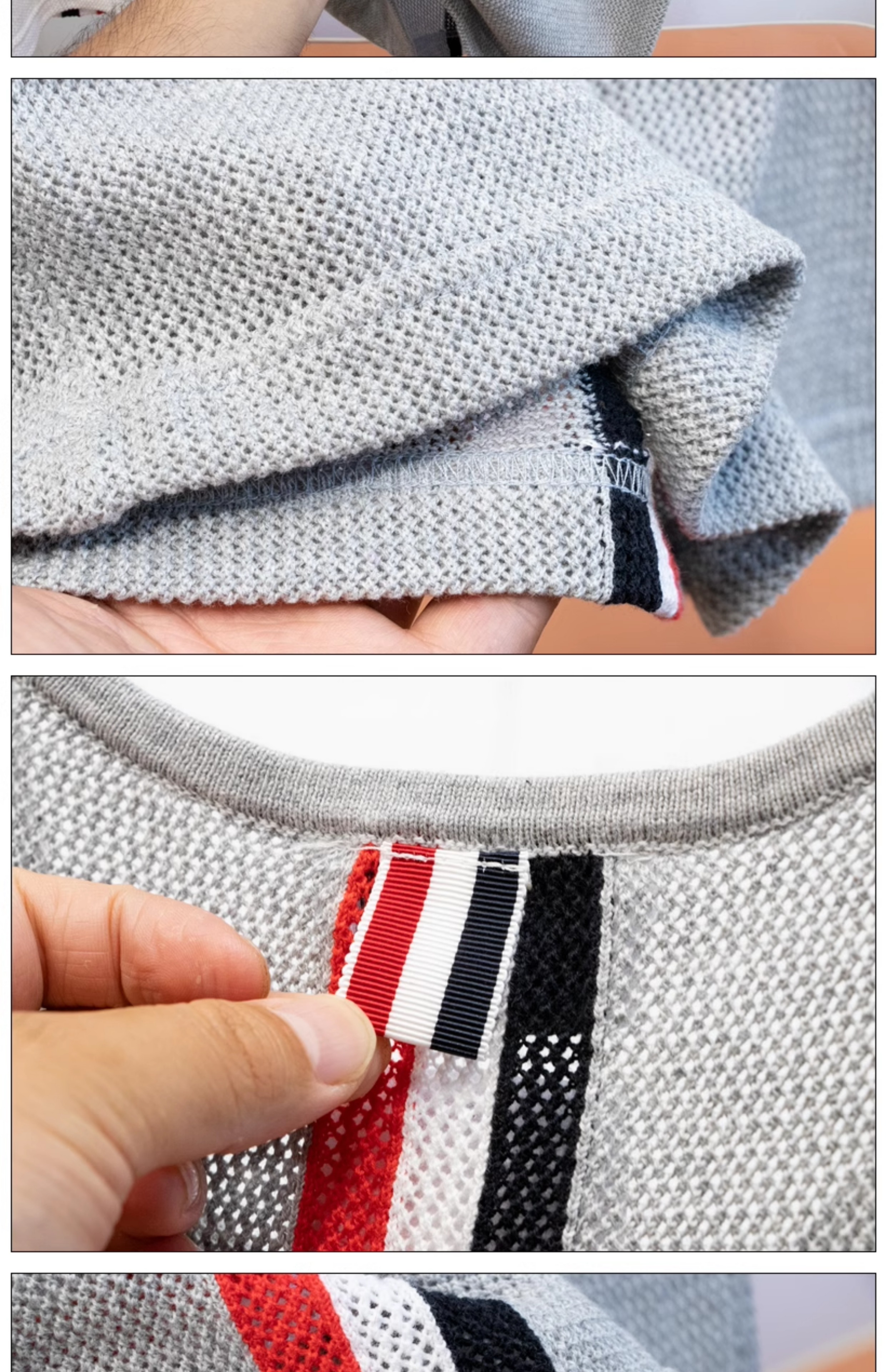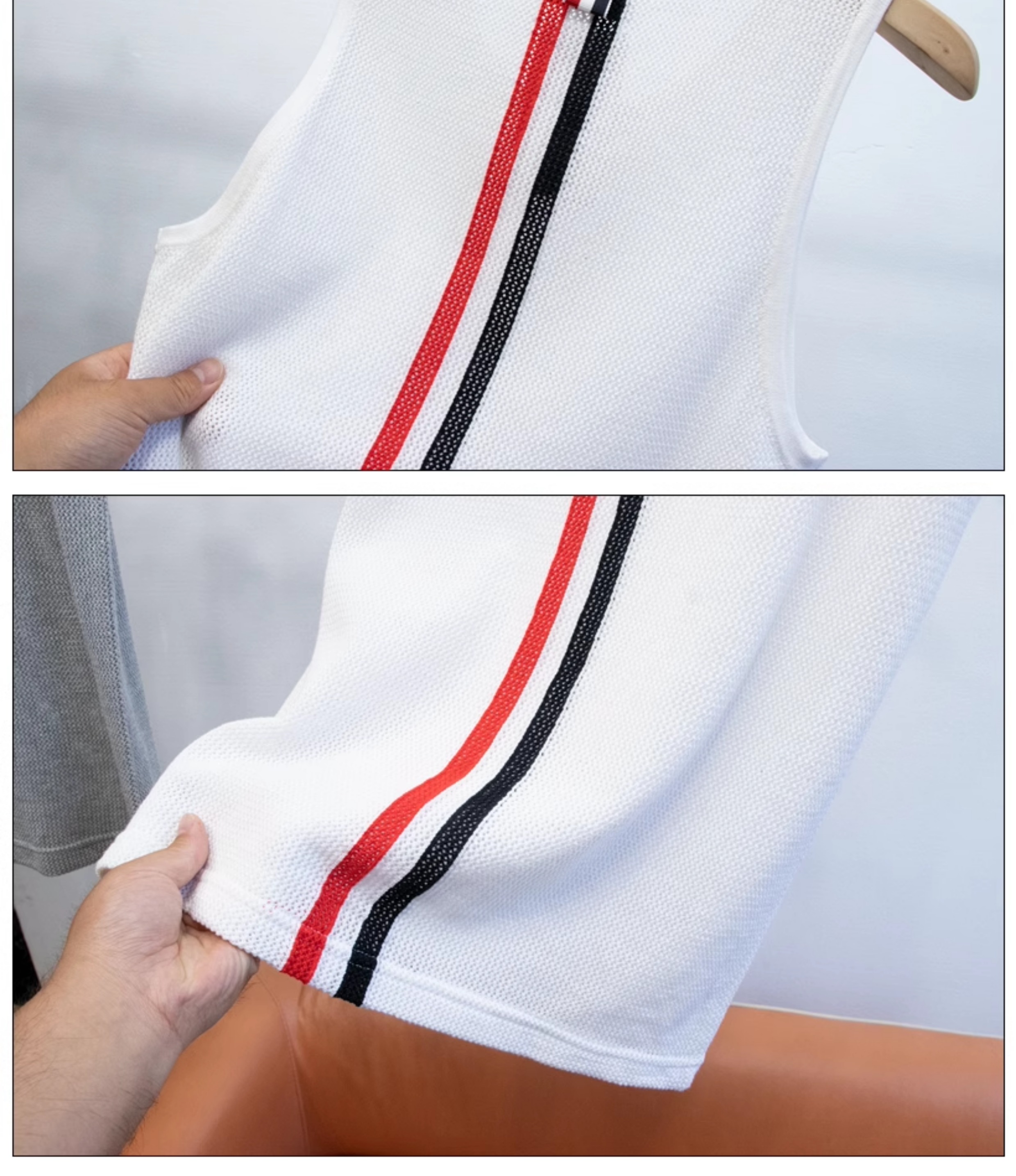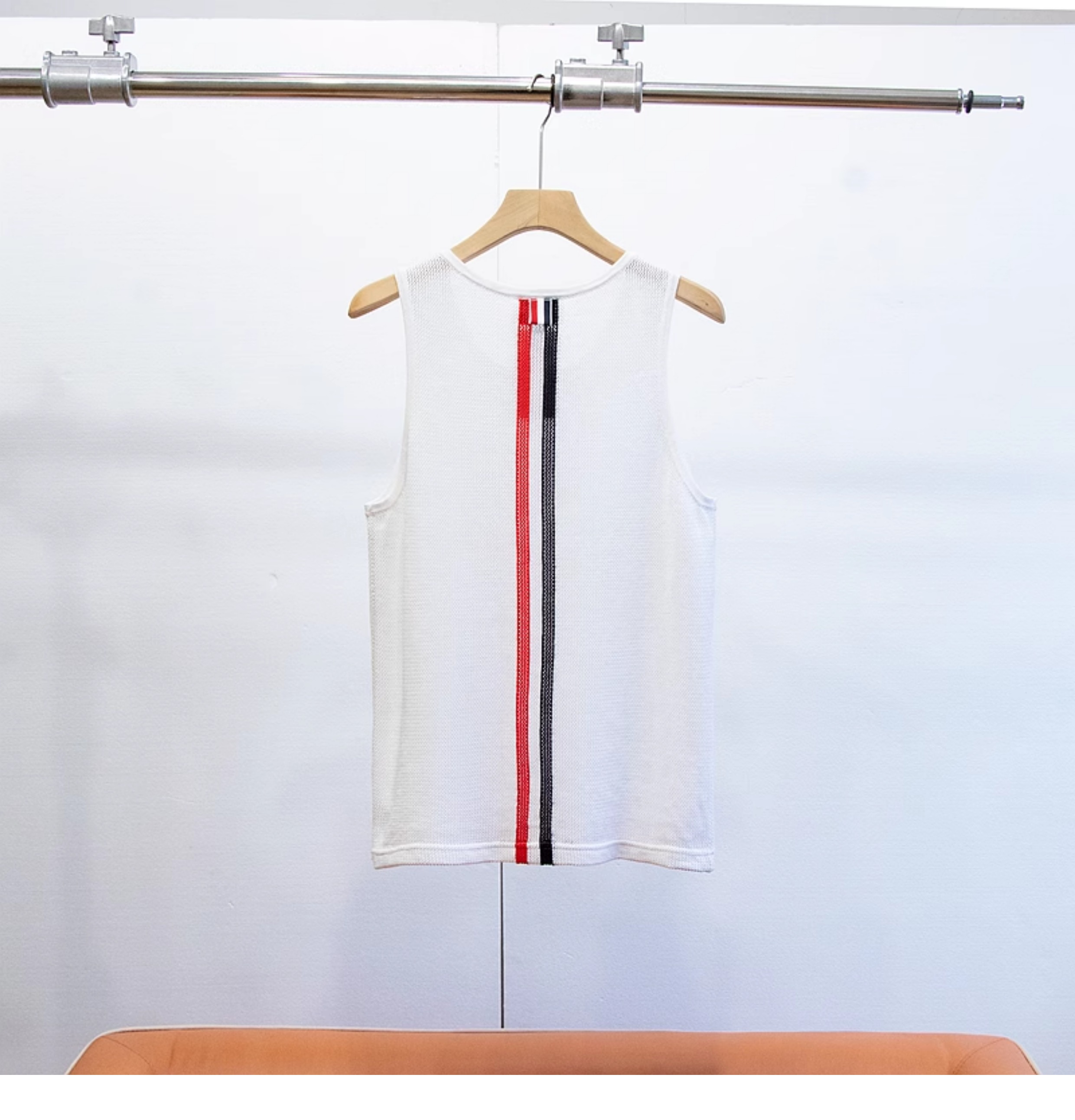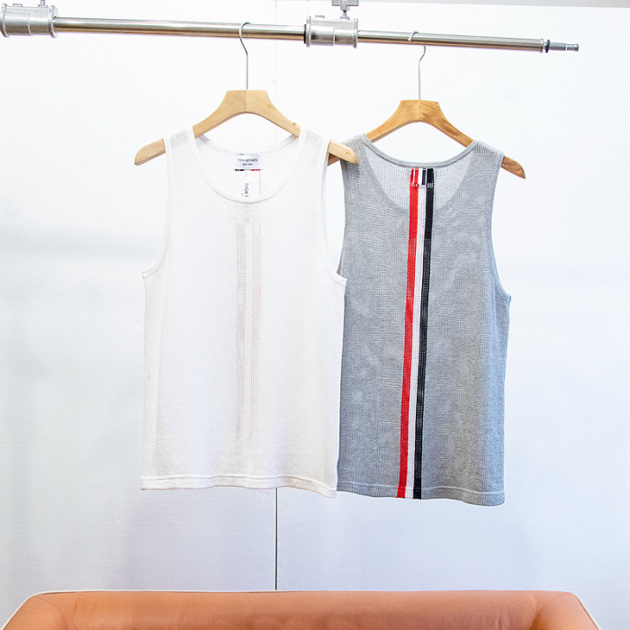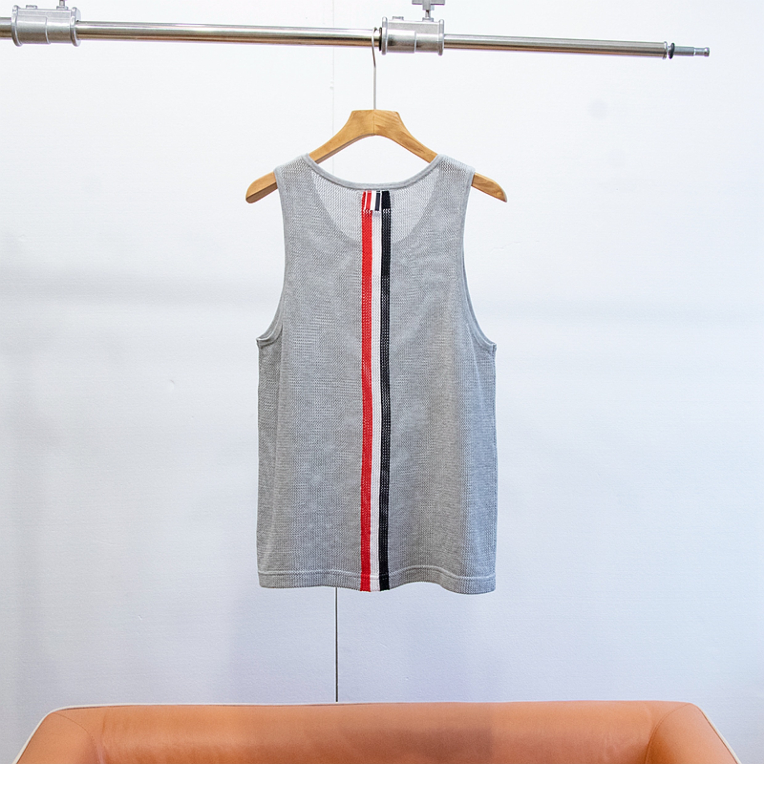 潮款TB背心提花鏤空網眼透氣男女休閒夏季無袖圓領T恤THGWBRGMEN