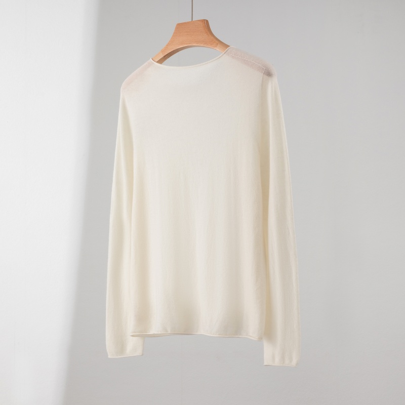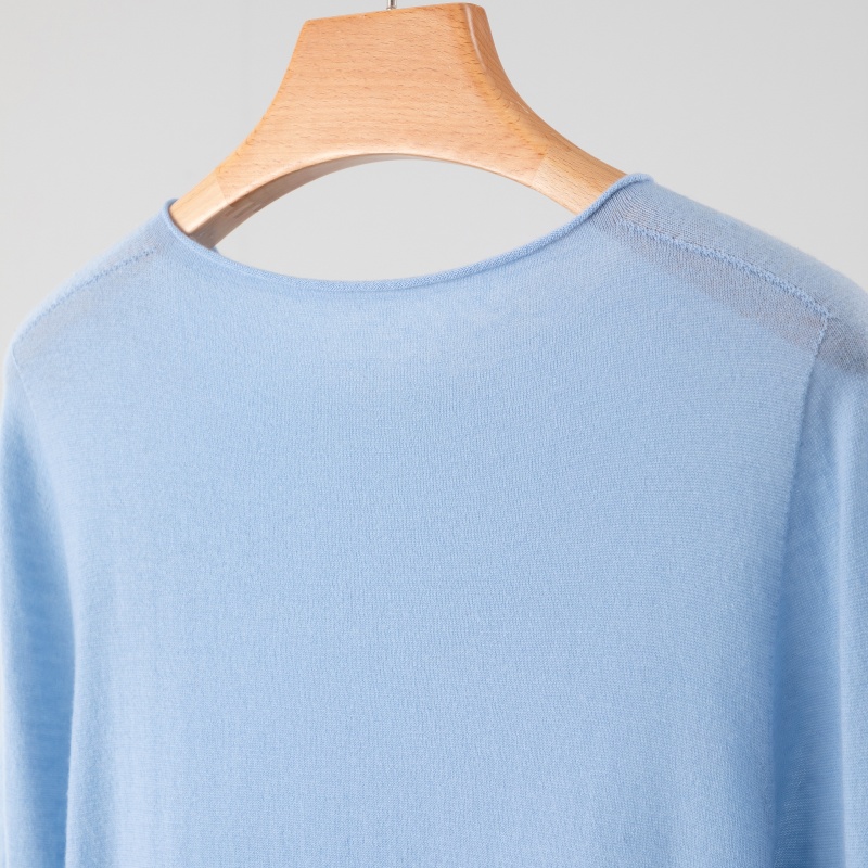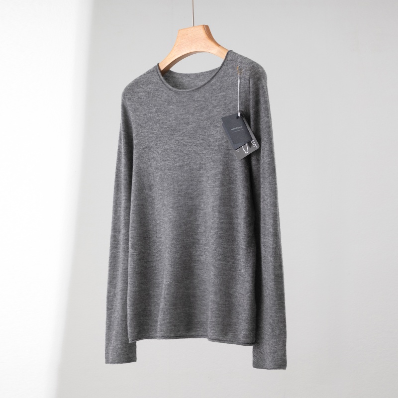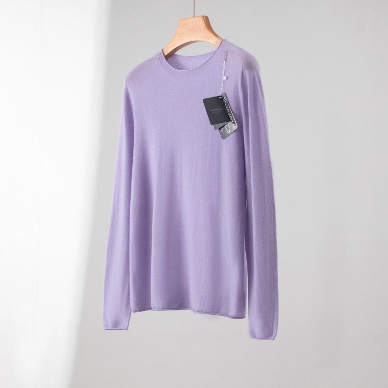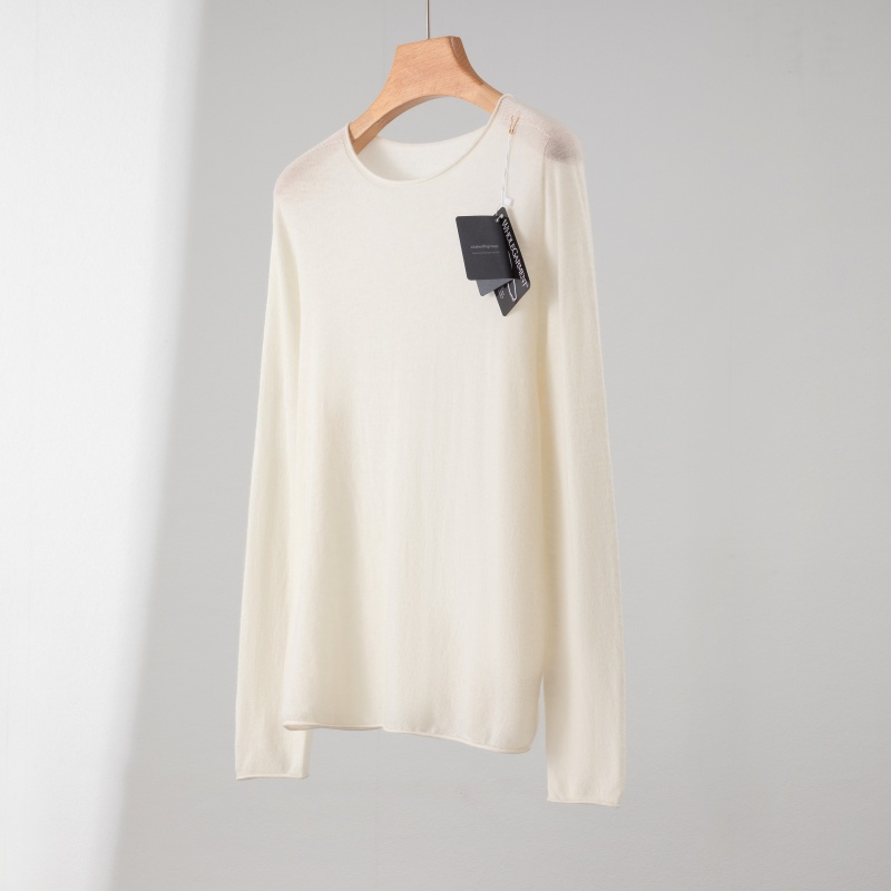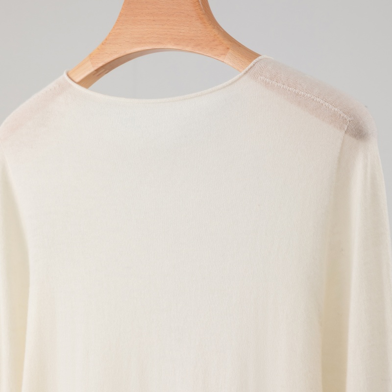 一線成衣敭子紗精紡100羊毛圓領針織打底衫女寬松休閒簡約薄毛衣