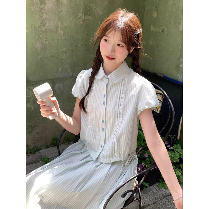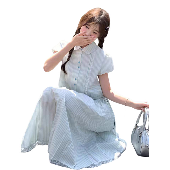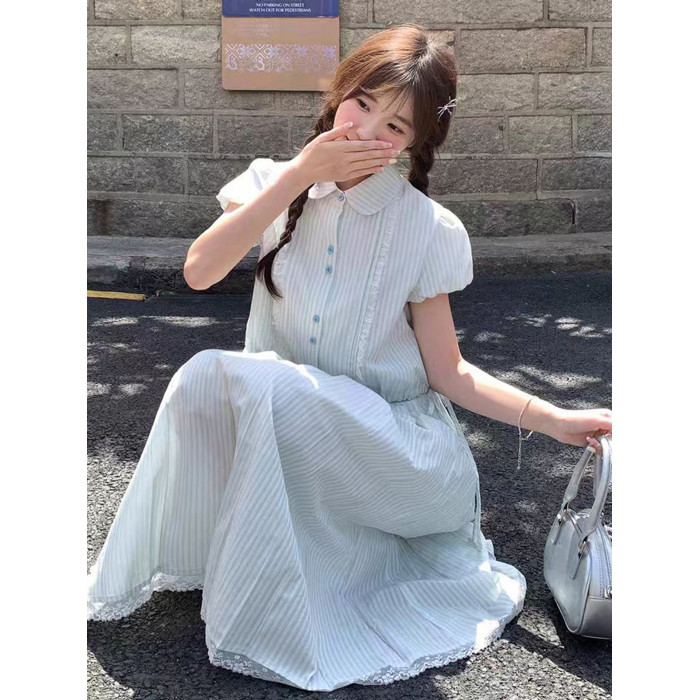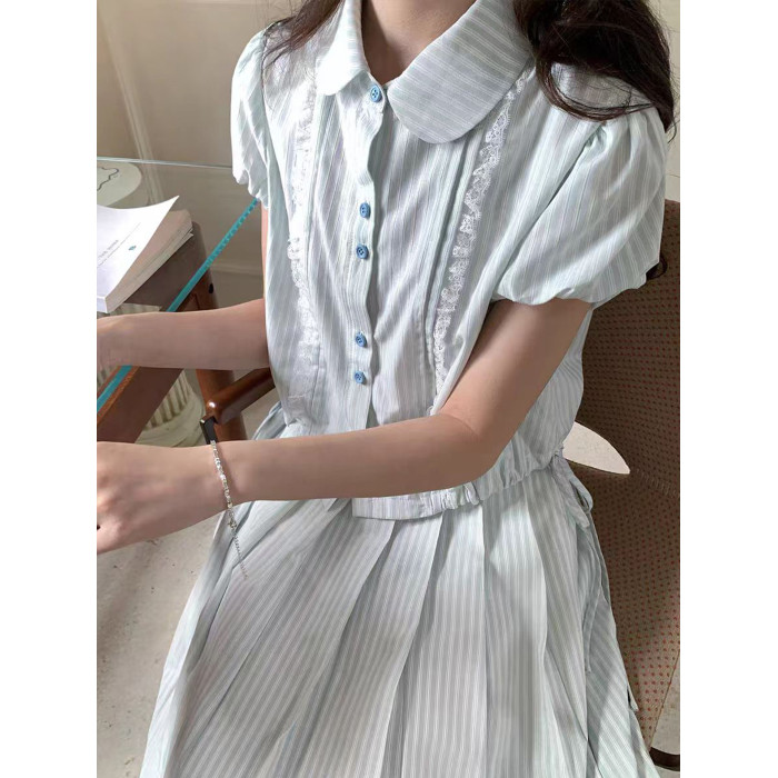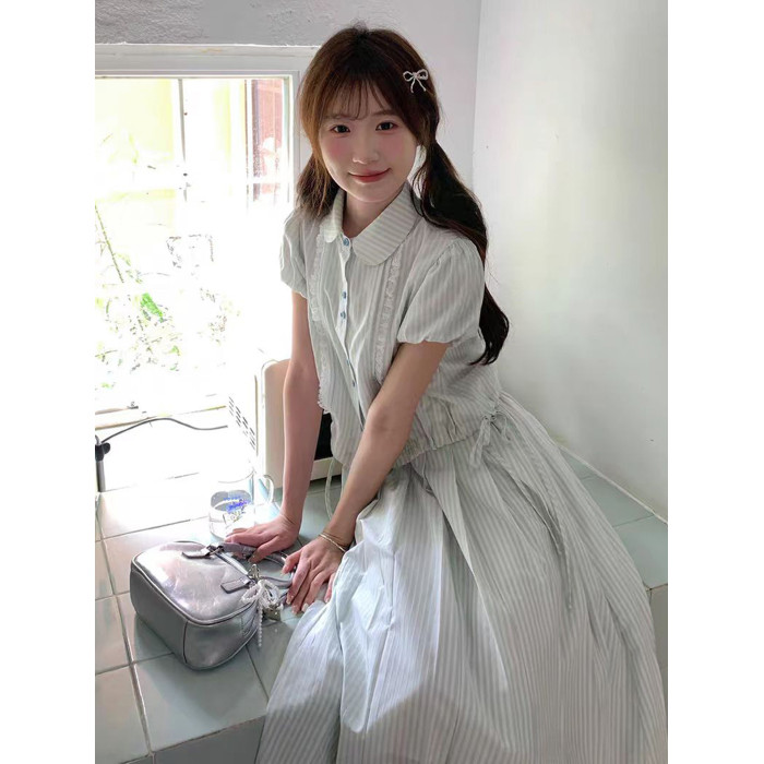 娃娃領條紋襯衫連衣裙子女夏季2025新款夏日巨好看穿搭配一整套裝