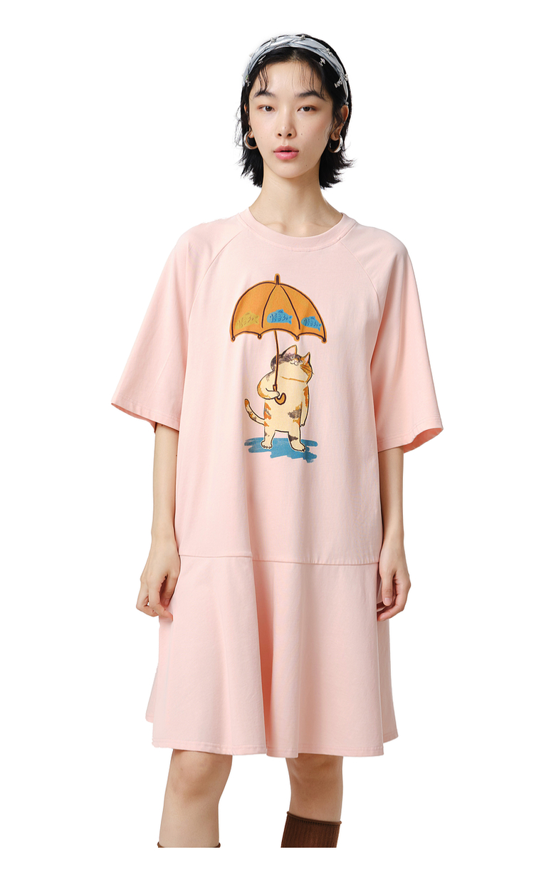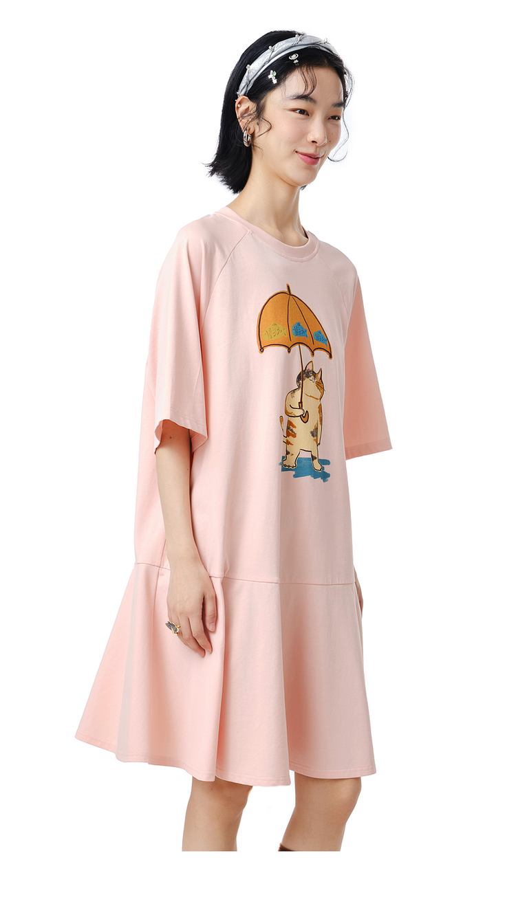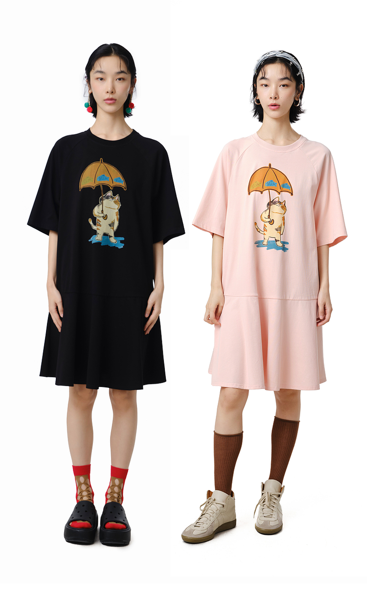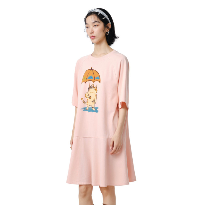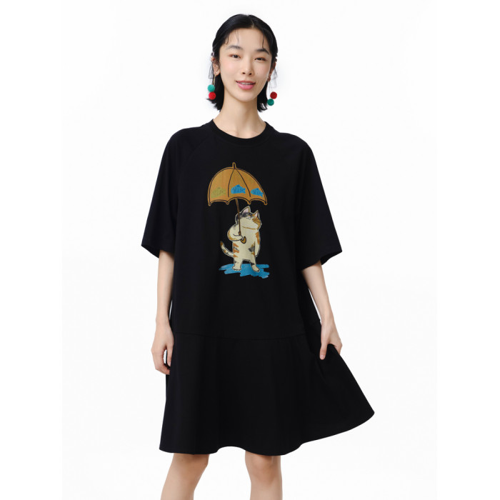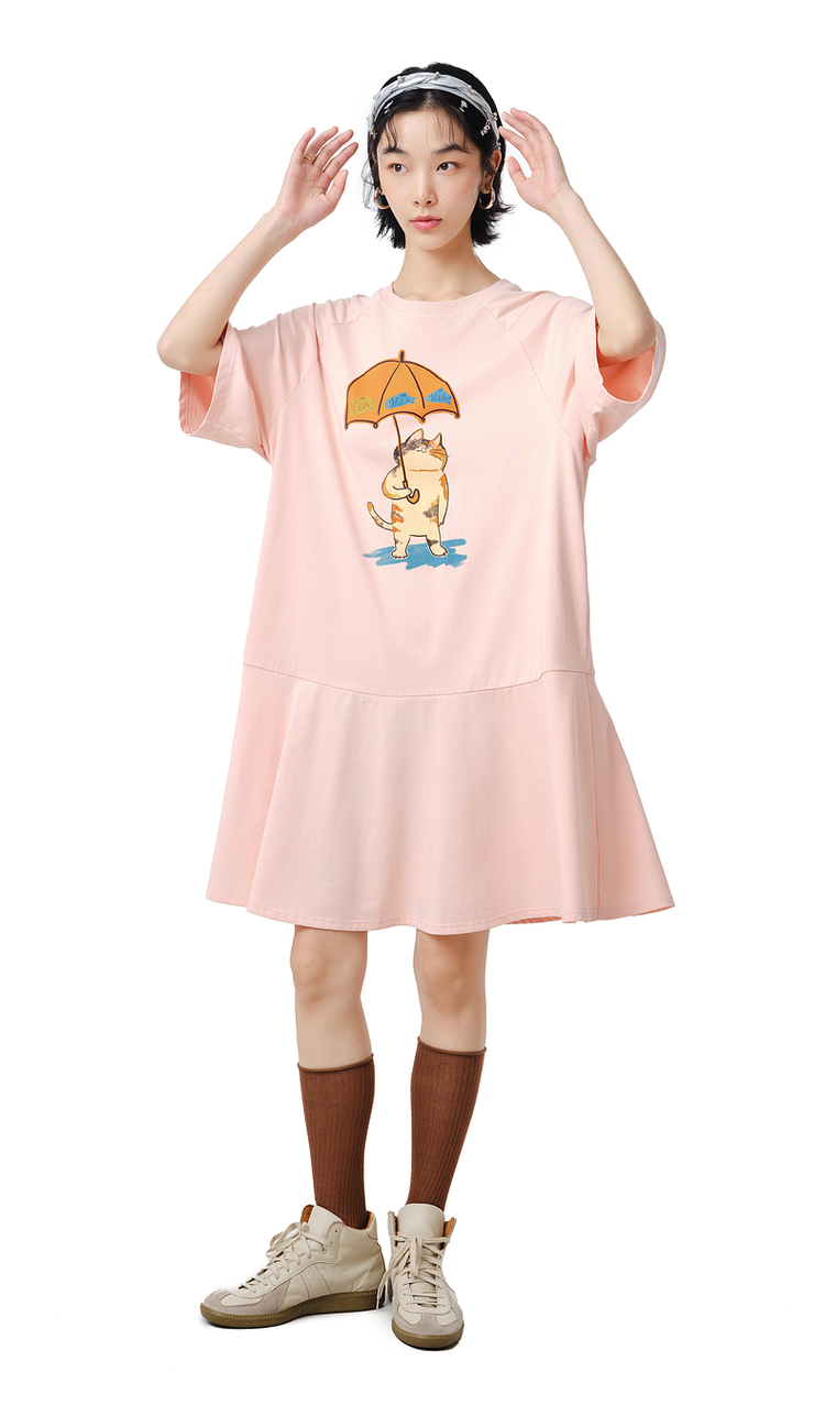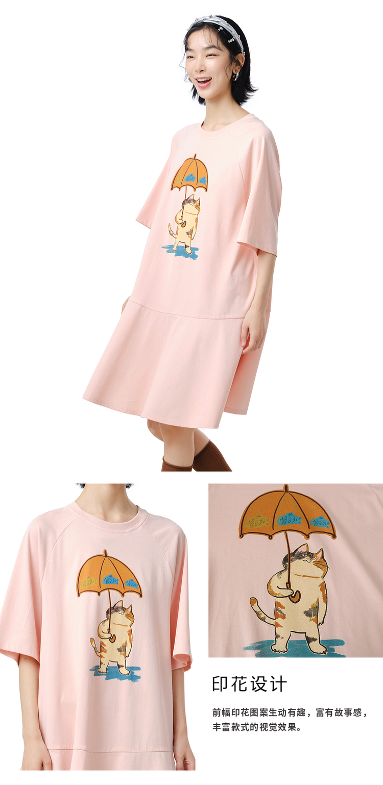 MOVEUP幻走2025夏季新款.FUN系列純棉插肩袖魚尾裙擺針織連衣裙