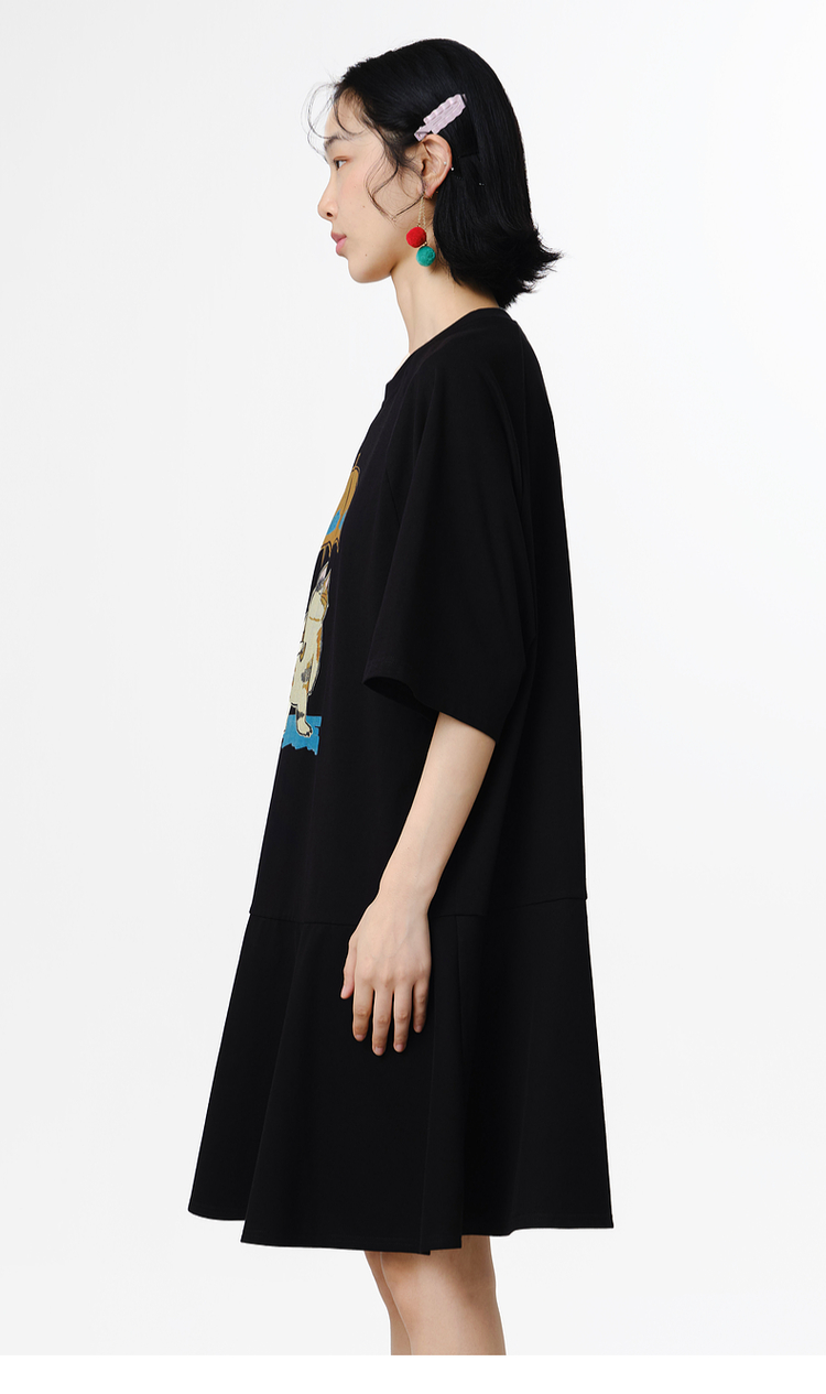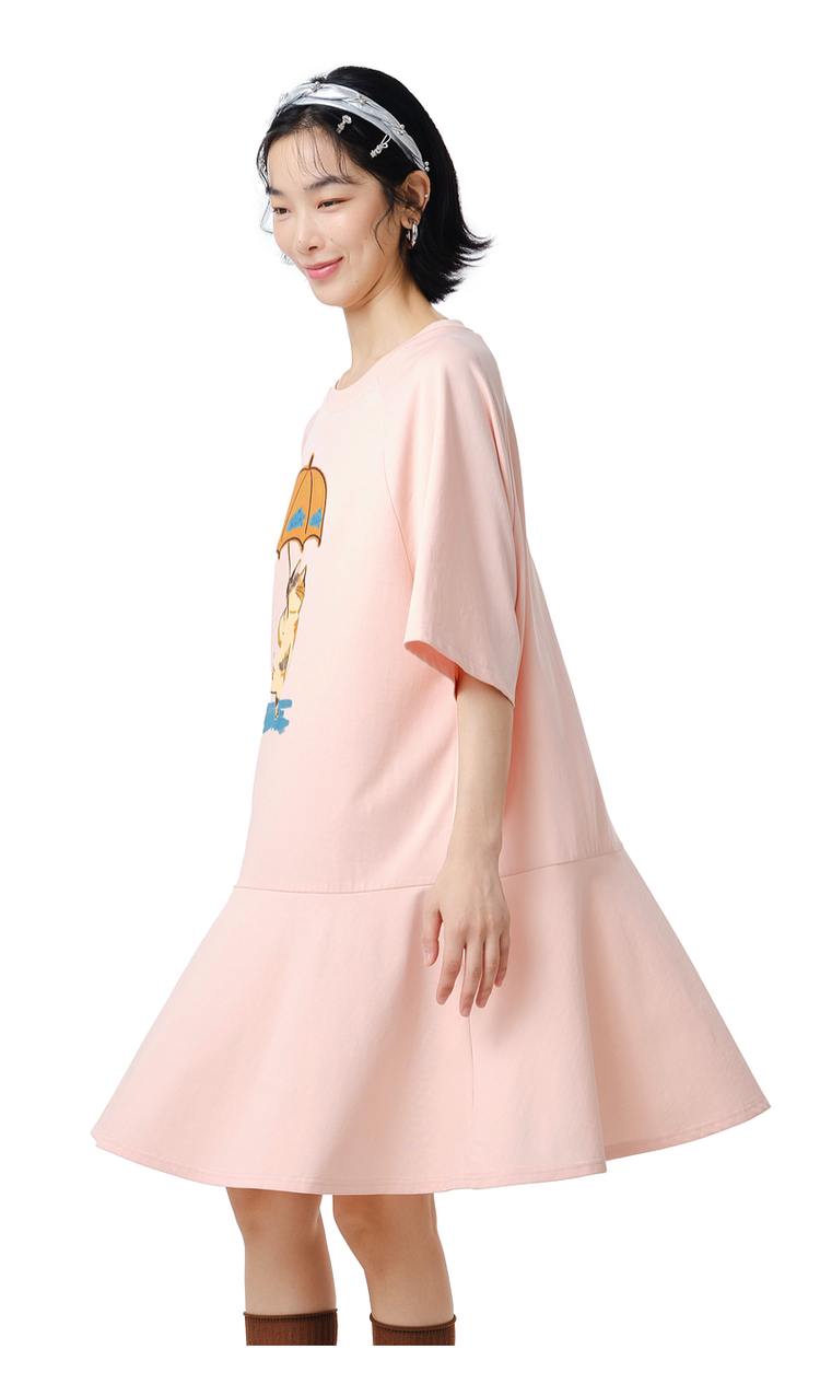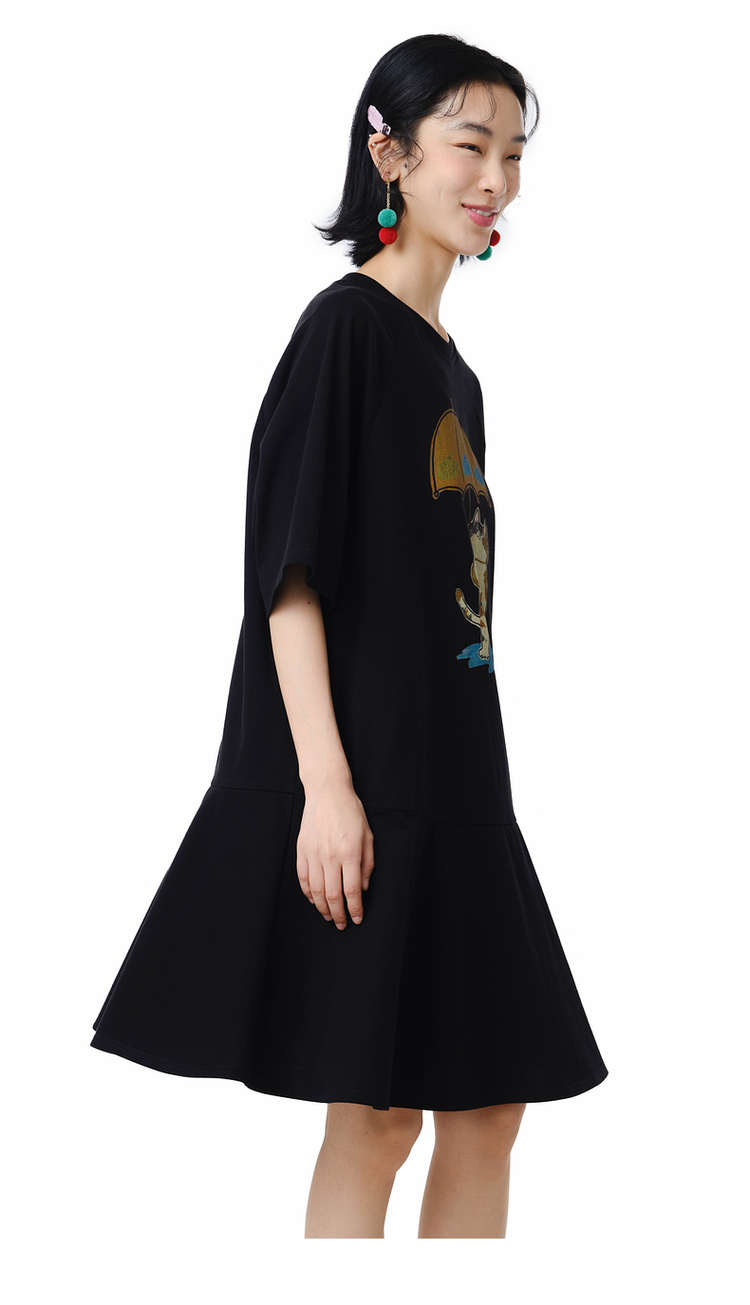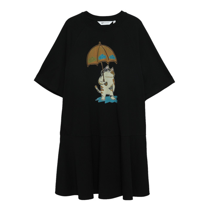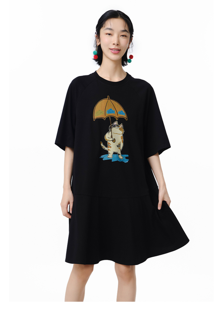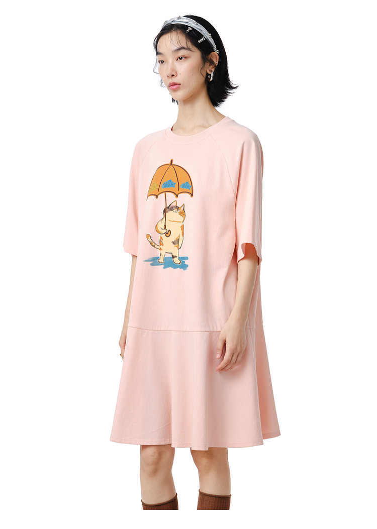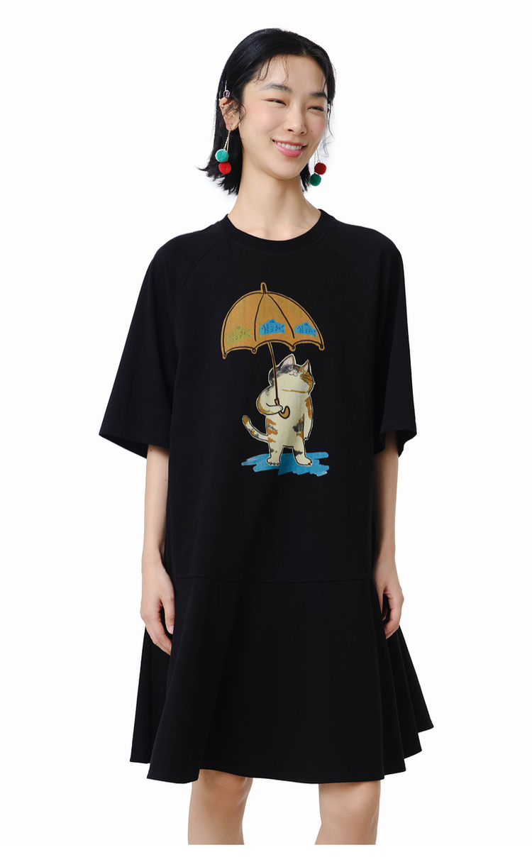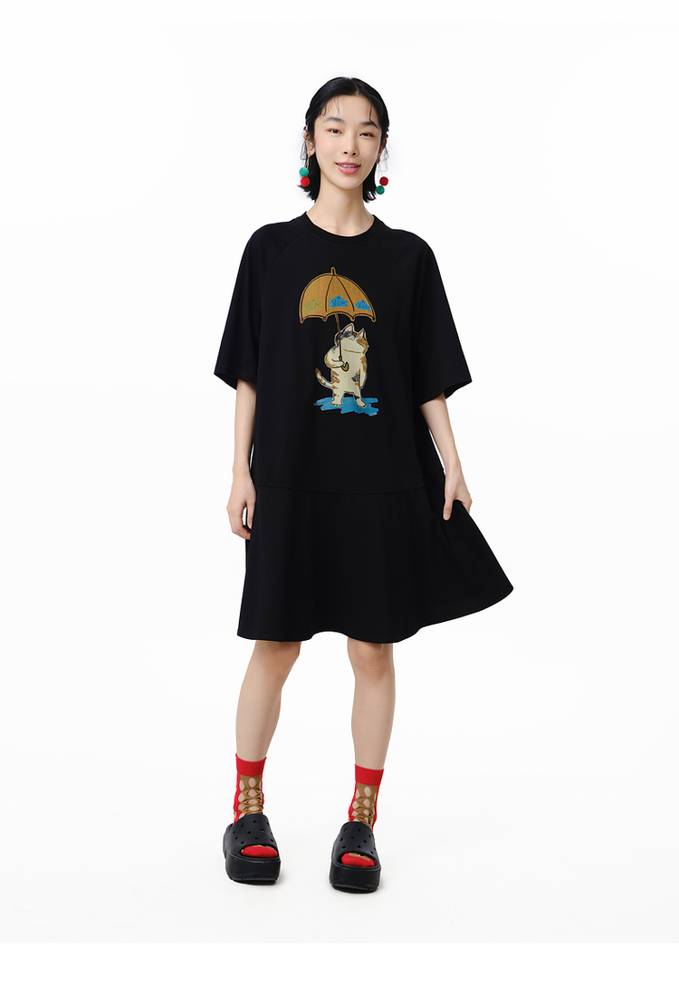 MOVEUP幻走2025夏季新款.FUN系列純棉插肩袖魚尾裙擺針織連衣裙