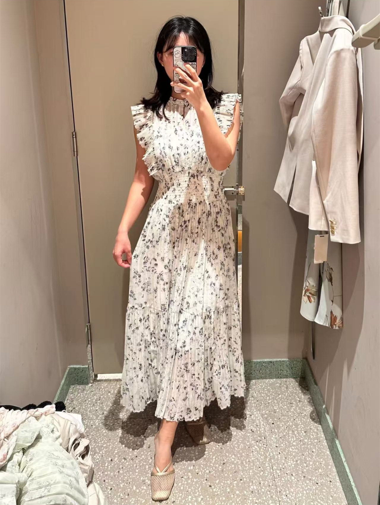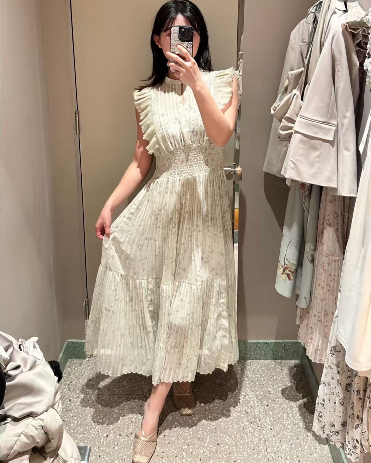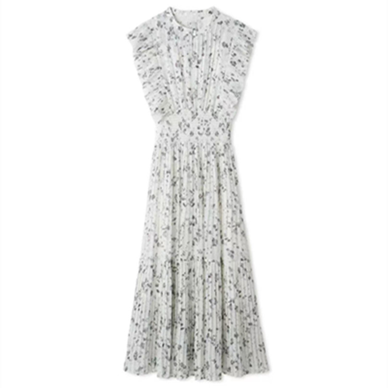 日系S家2025夏季樹莓貝貝同款印花碎花飛飛袖百褶連衣裙女兩件套