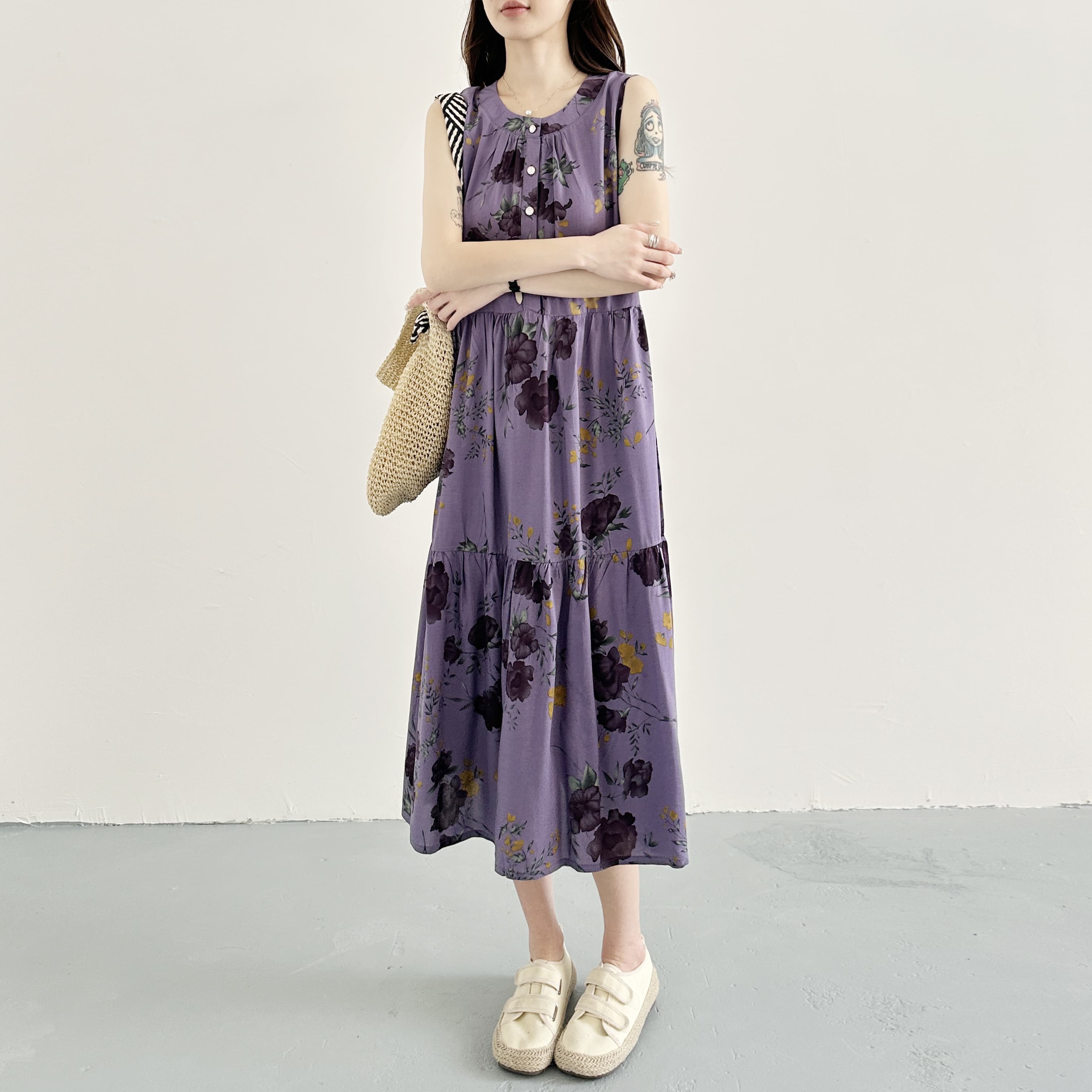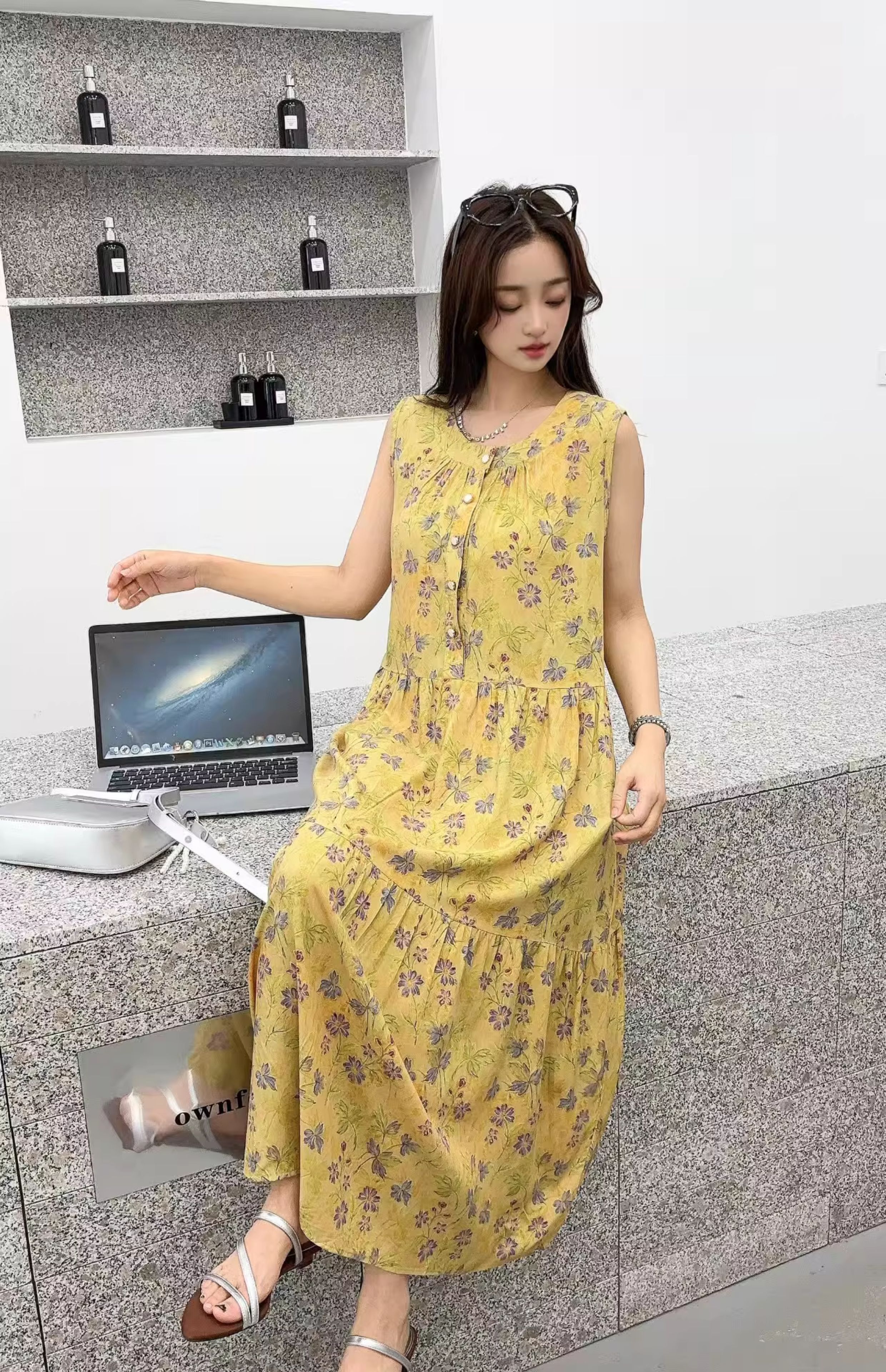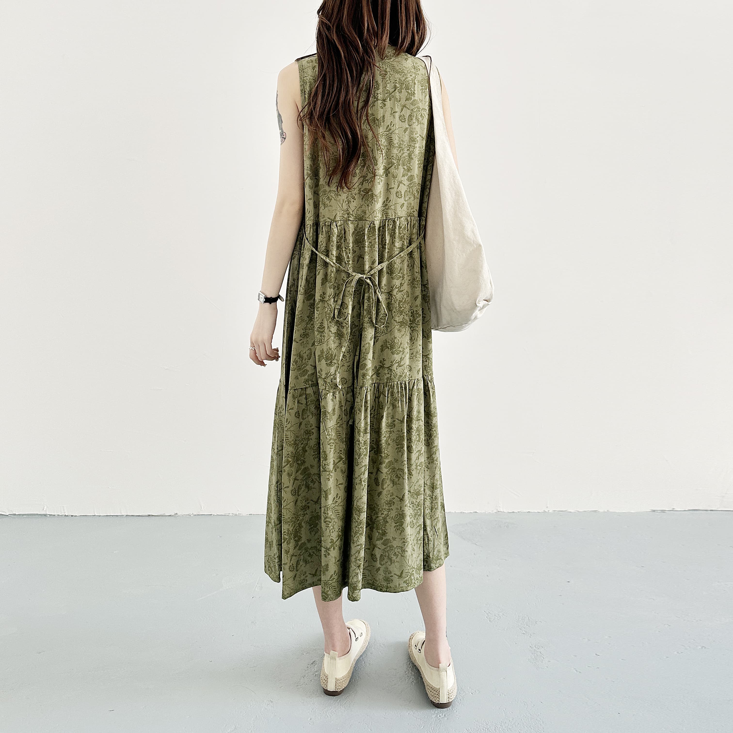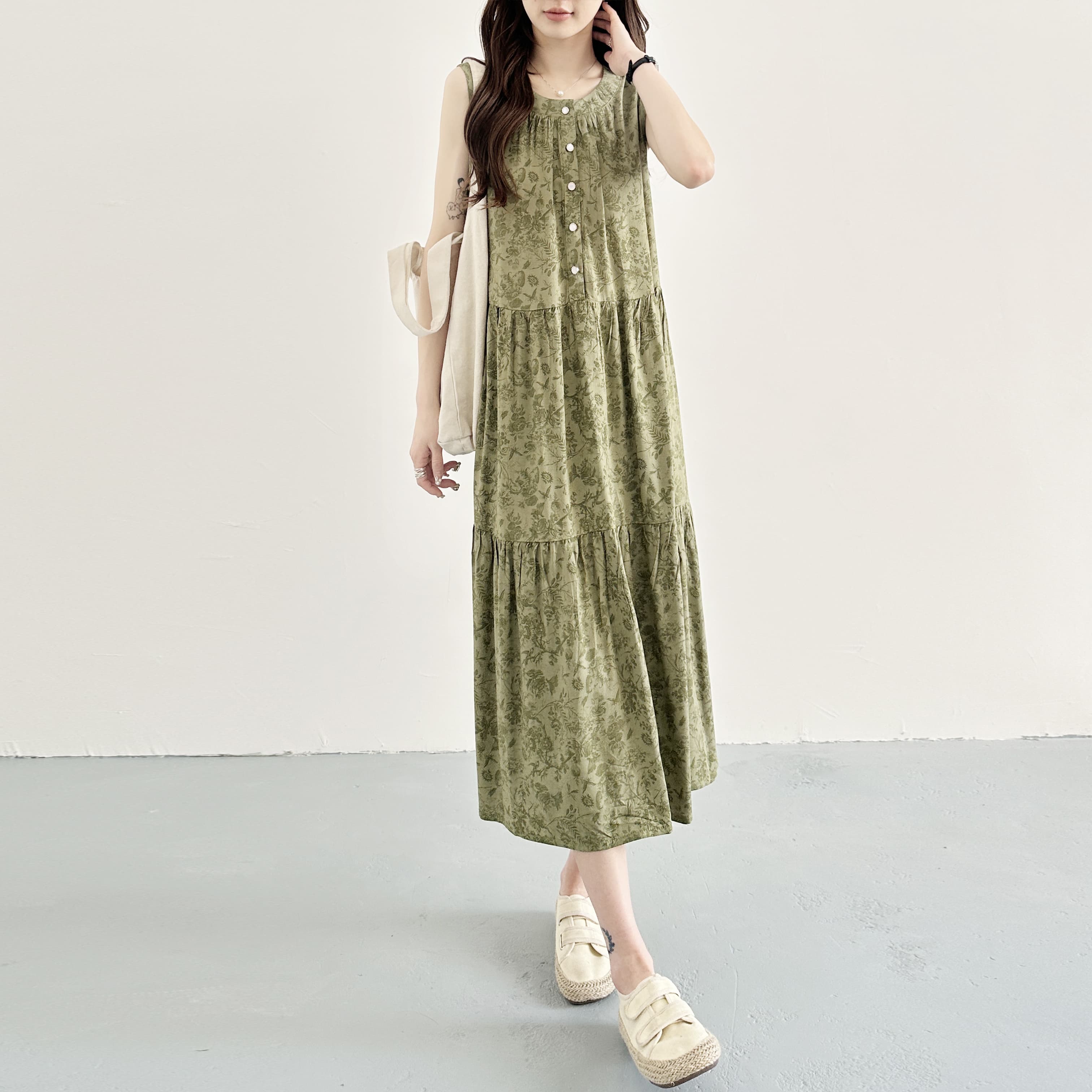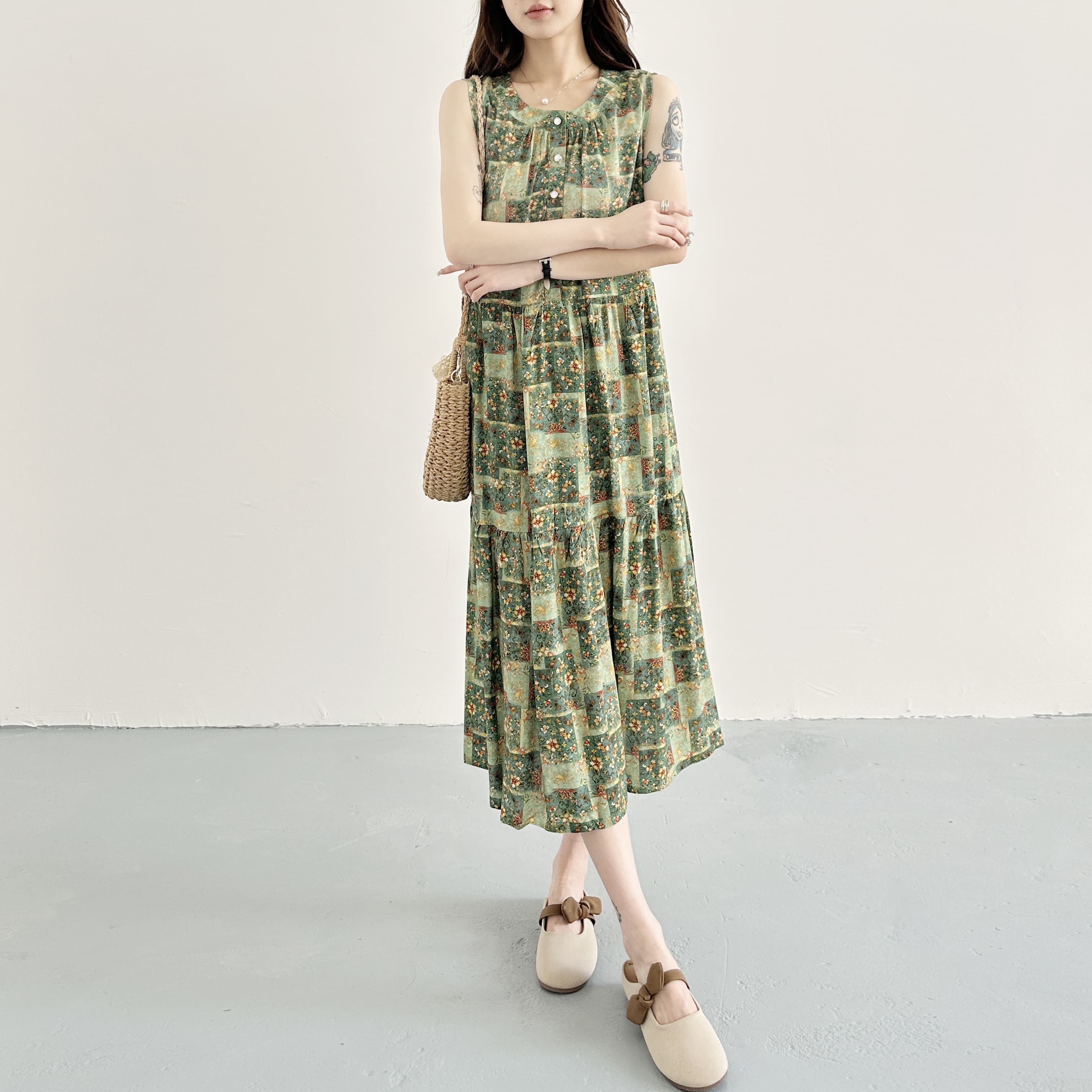 2025年夏季新款棉綢無袖連衣裙女人造棉寬松顯瘦百搭休閒背心長裙
